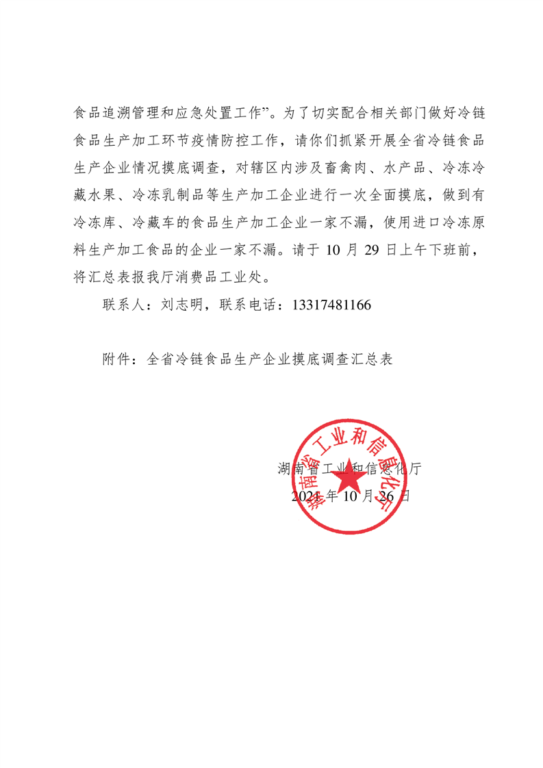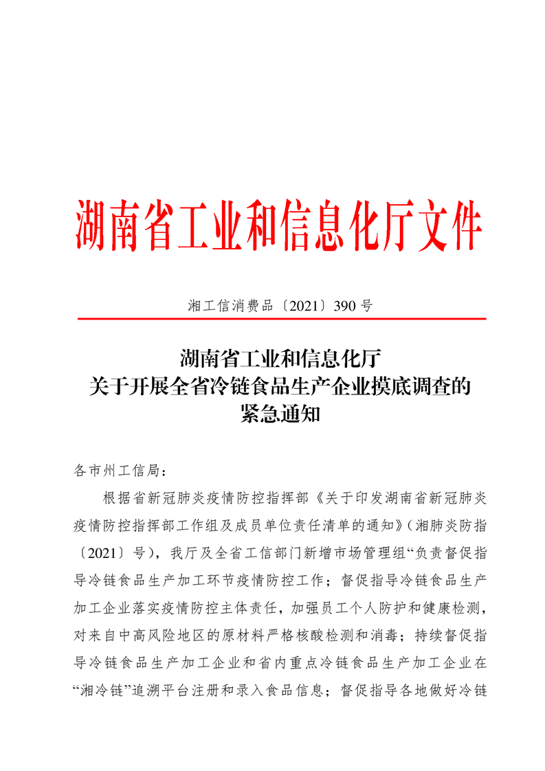 关于开展全省冷链食品生产企业摸底调查的紧急通知