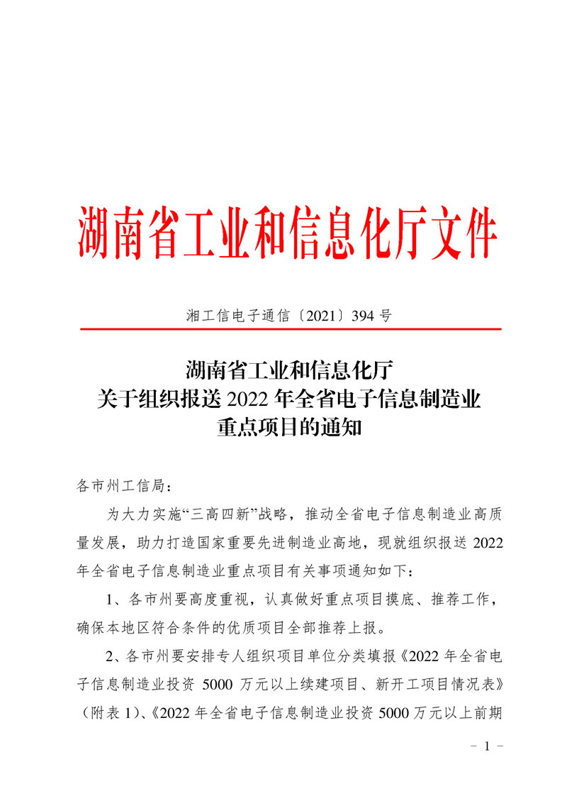 关于组织报送2022年全省电子信息制造业重点项目的通知