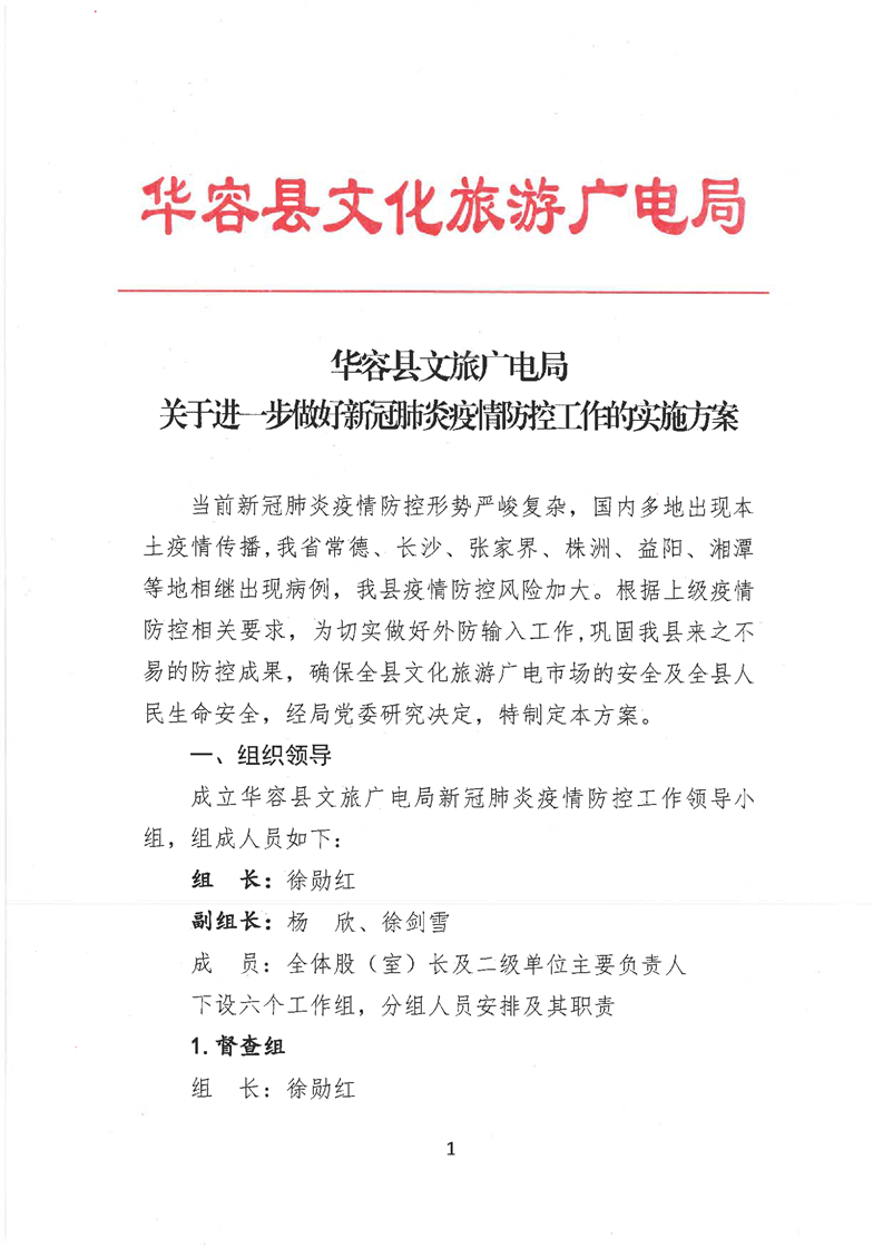 华容县文旅广电局关于进一步做好新冠肺炎疫情防控工作的实施方案