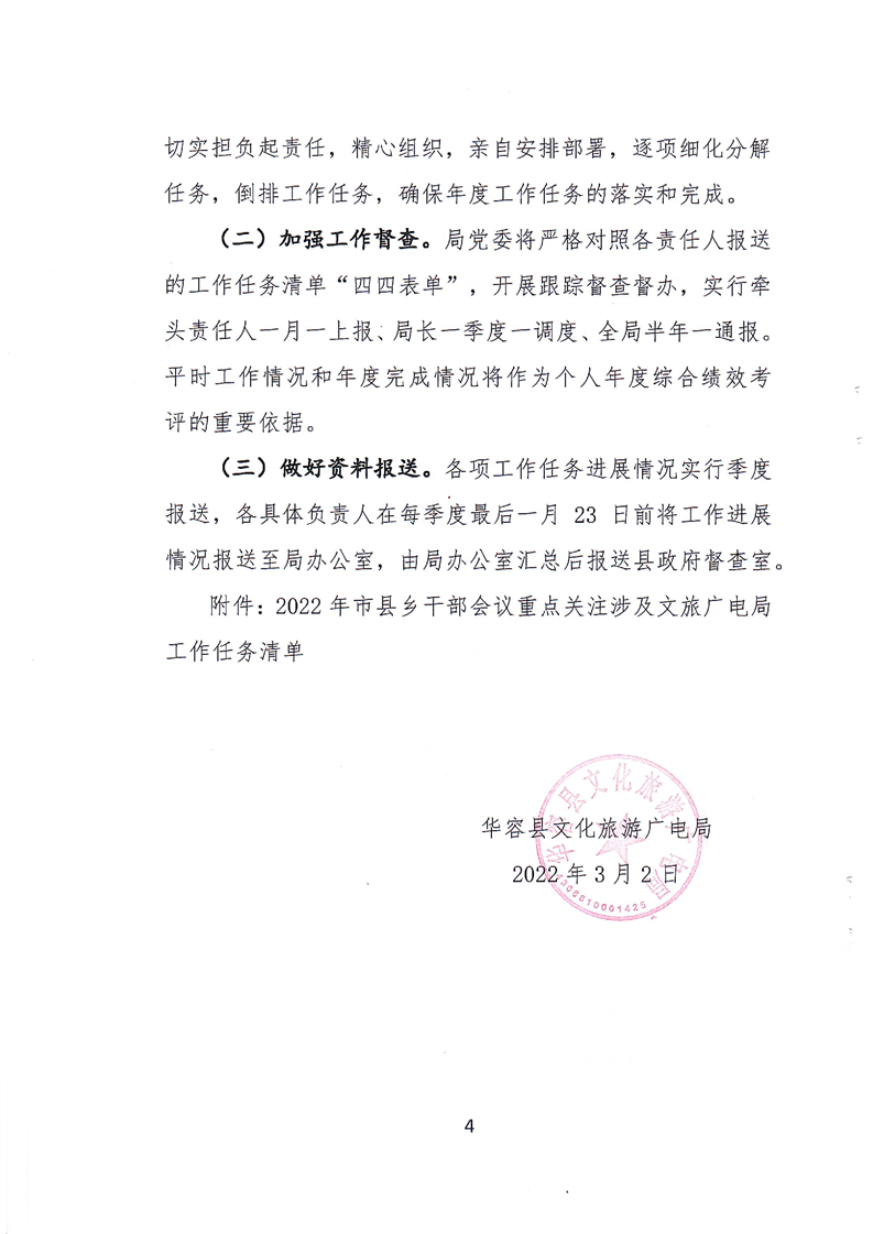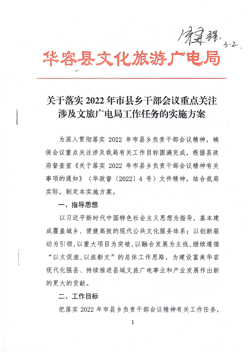 关于落实2022年市县乡干部会议重点工作涉及文旅广电局工作任务的实施方案