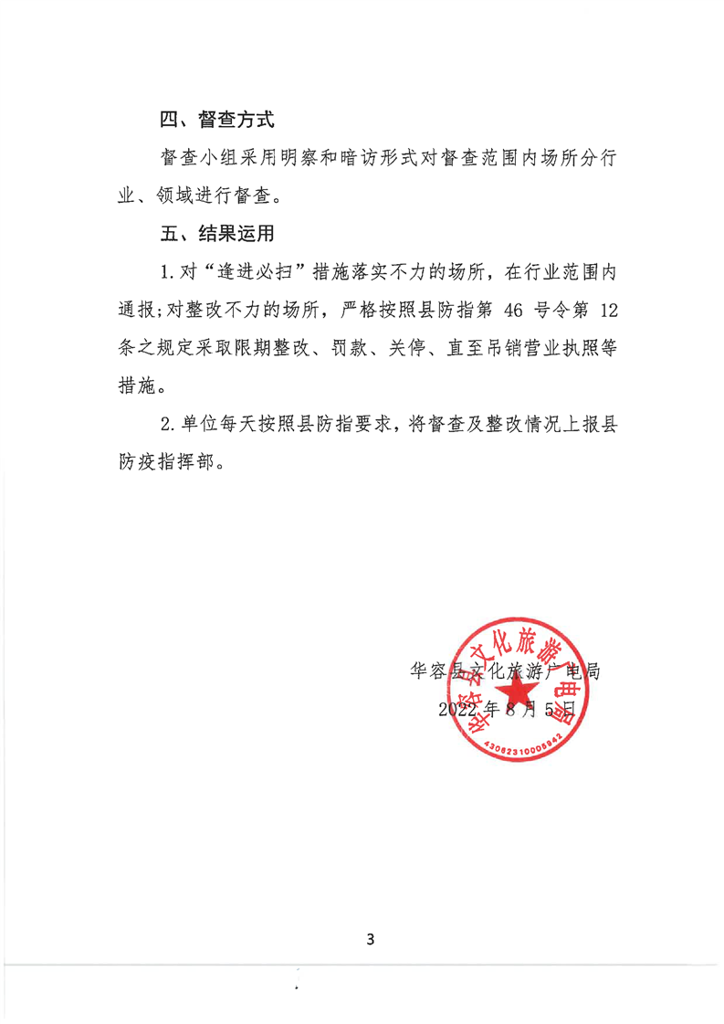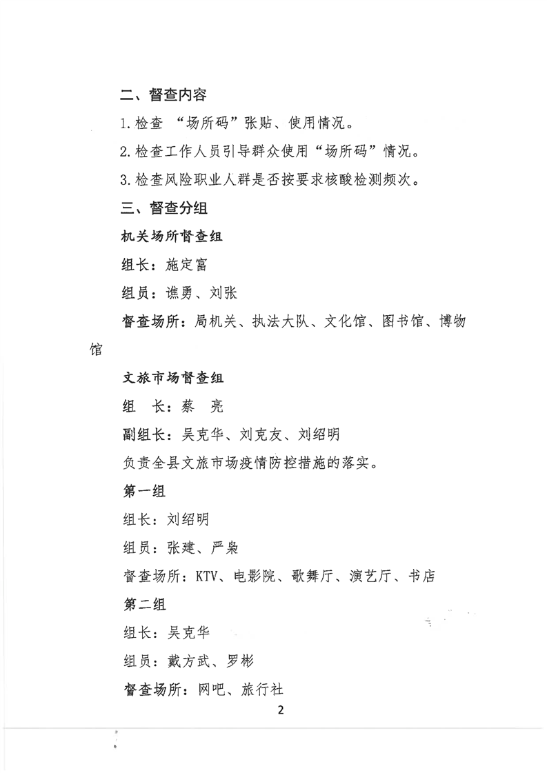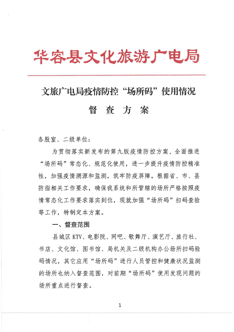 华容县文旅广电局疫情防控“场所码”使用情况督查方案