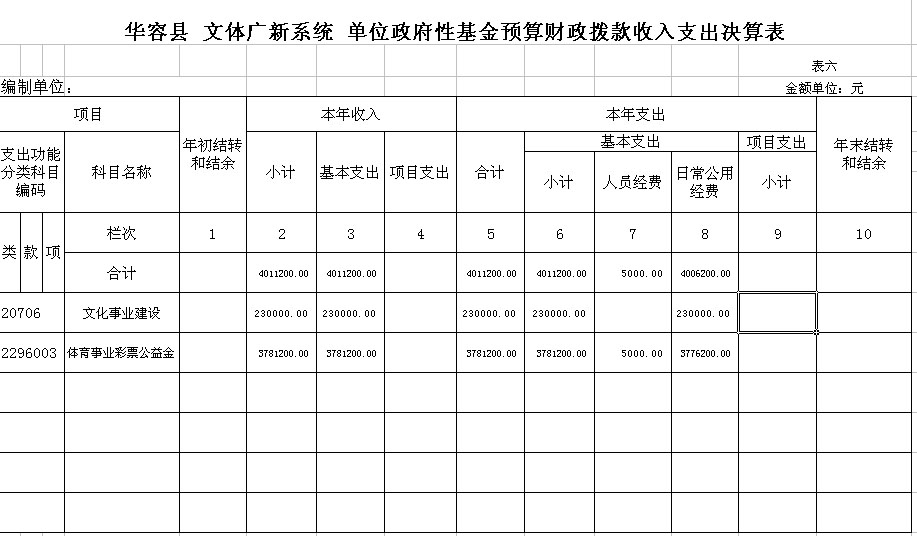 华容县 文体广新系统 单位政府性基金预算财政拨款收入支出决算表