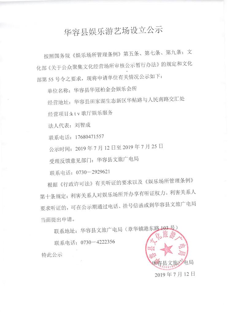 华容县娱乐游艺场设立公示1