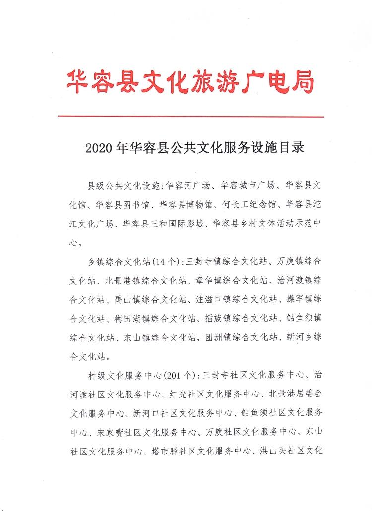 2020年华容县公共文化服务设施目录