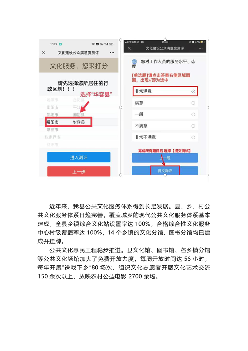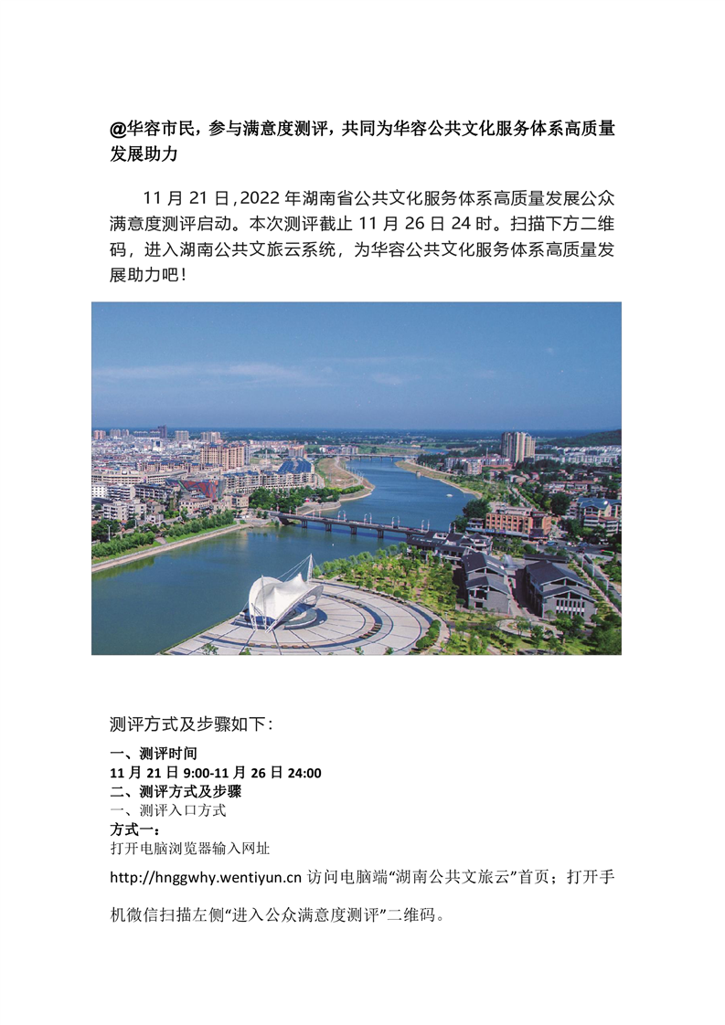 @华容市民,参与满意度测评,共同为华容公共文化服务体系高质量发展助力