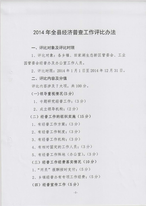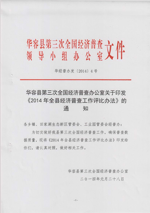 华容县第三次全国经济普查办公室关于印发《2014年全县经济普查工作评比办法》的 通知