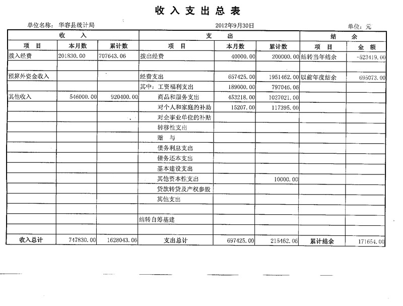 华容县统计局2013年三季度收入支出总表