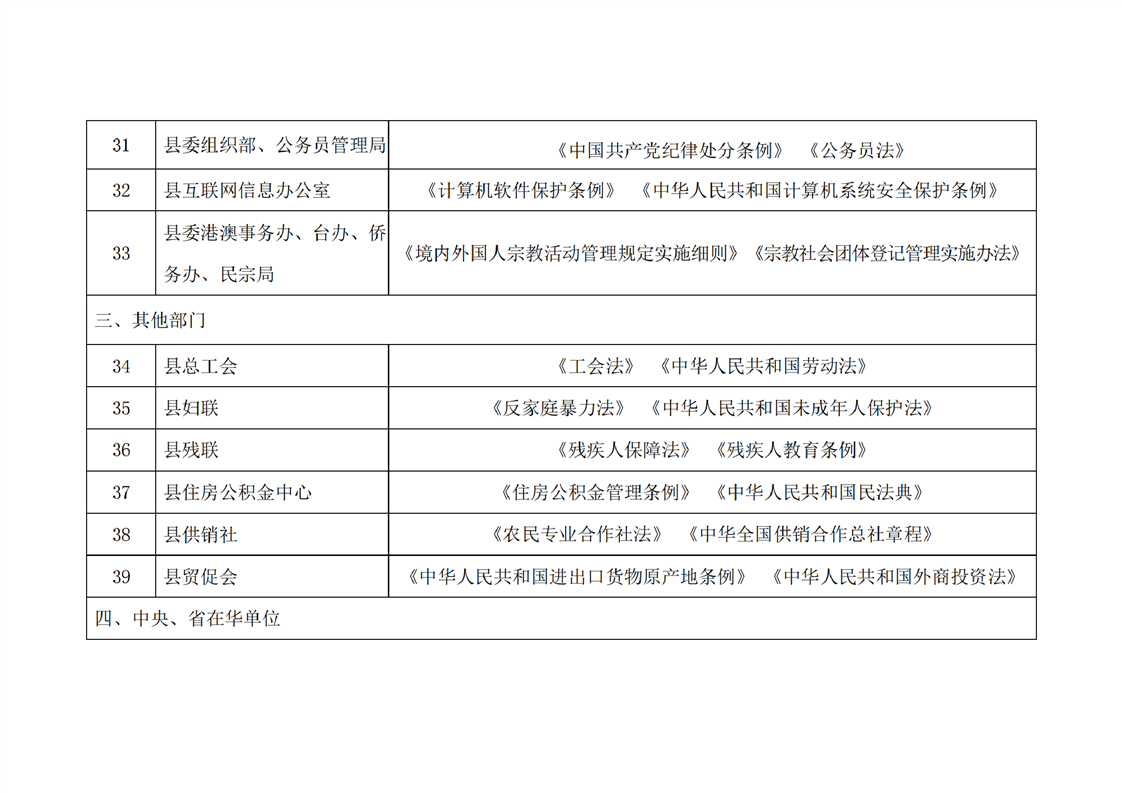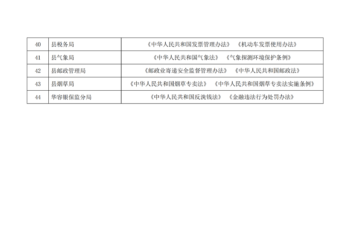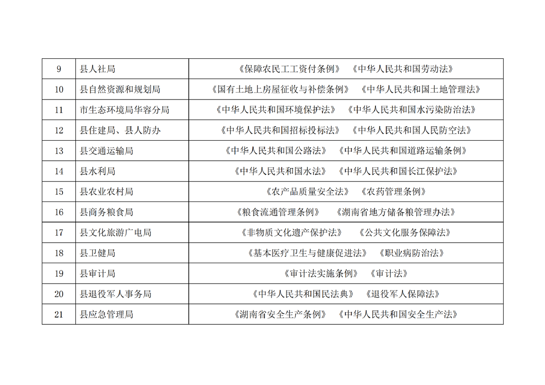 2022年华容县直国家机关“谁执法谁普法”责任单位重点普法清单