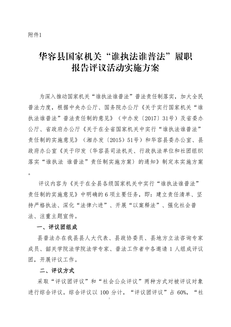 关于印发《华容县国家机关“谁执法谁普法”履职报告评议活动实施方案》的通知