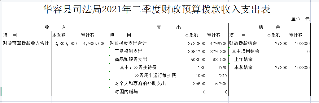 华容县司法局2021年二季度财政预算拨款收入支出表