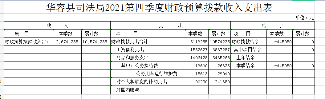 华容县司法局2021年第四季度财政预算拨款收入收支表