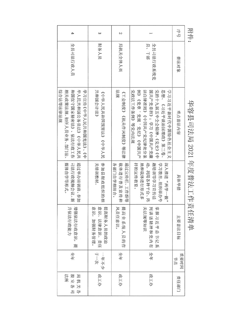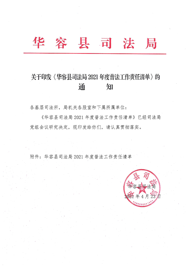 关于印发《华容县司法局2021年度普法工作责任清单》的通知