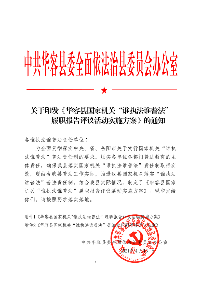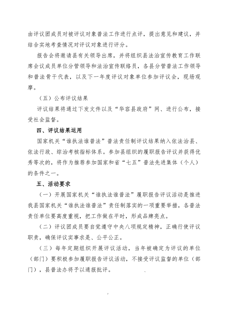关于印发《华容县国家机关“谁执法谁普法”履职报告评议活动实施方案》的通知