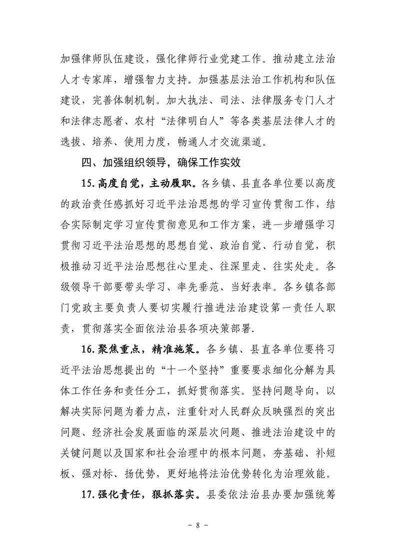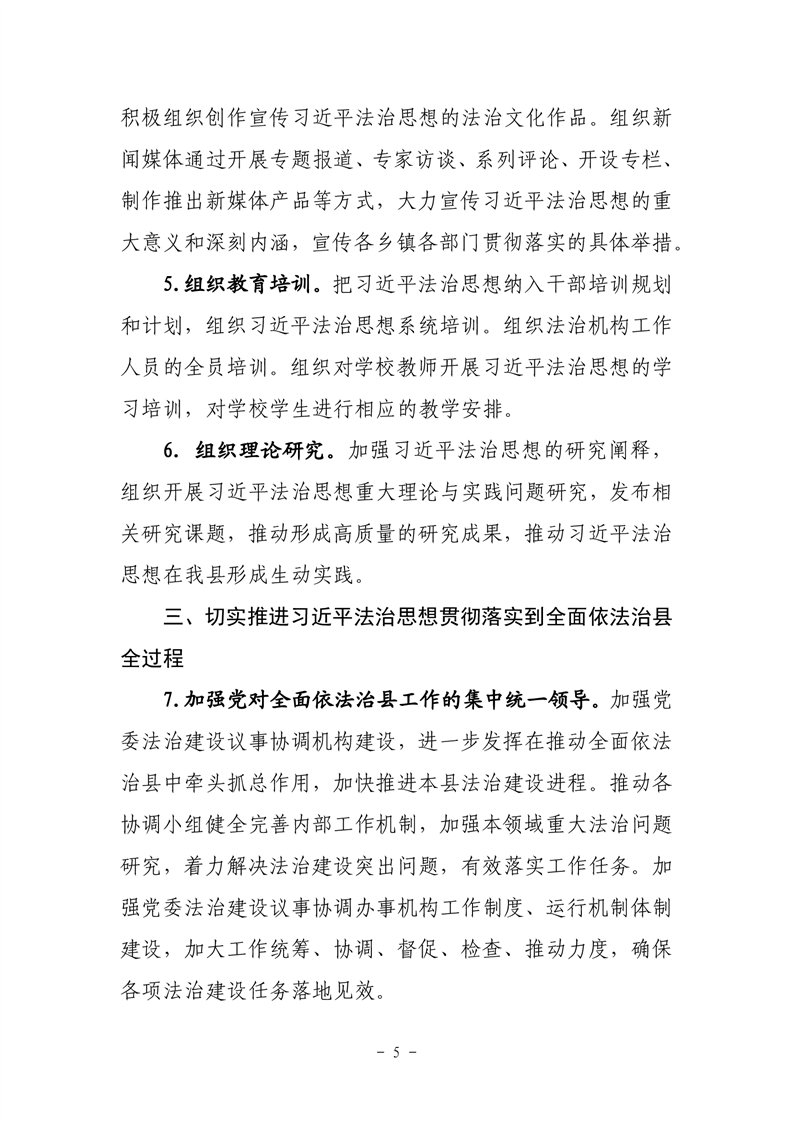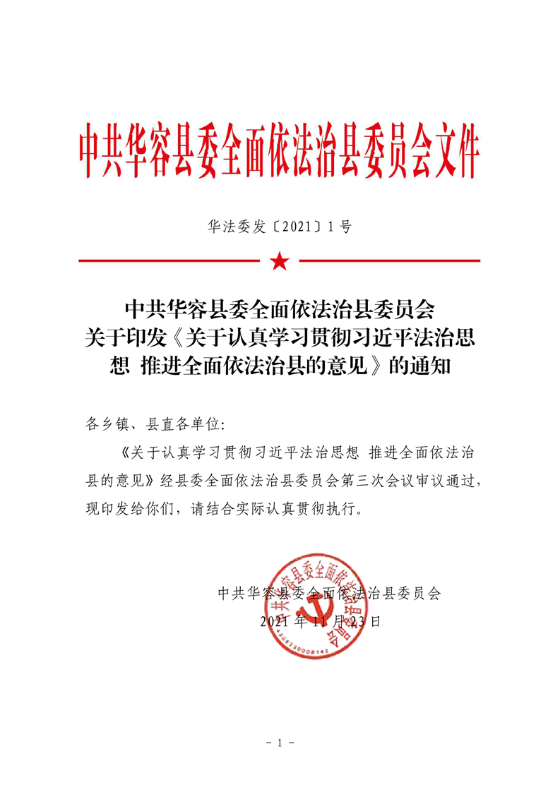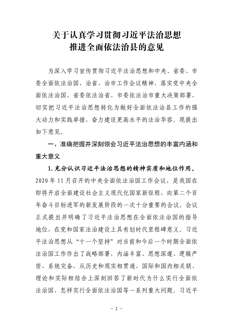 关于印发《关于认真学习贯彻习近平法治思想 推进全面依法治县的意见》的通知
