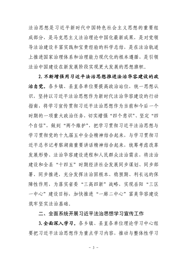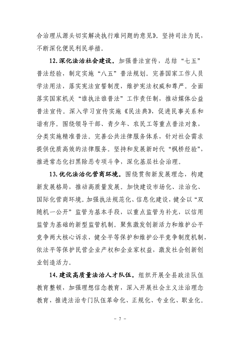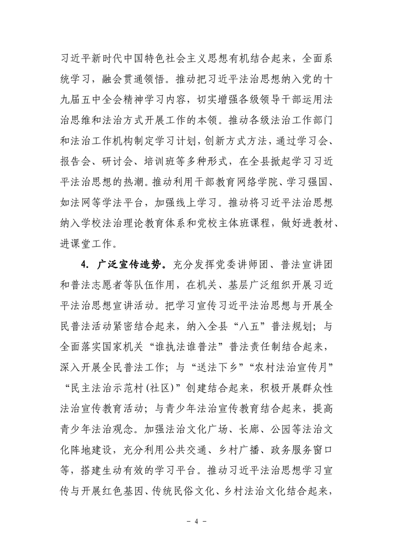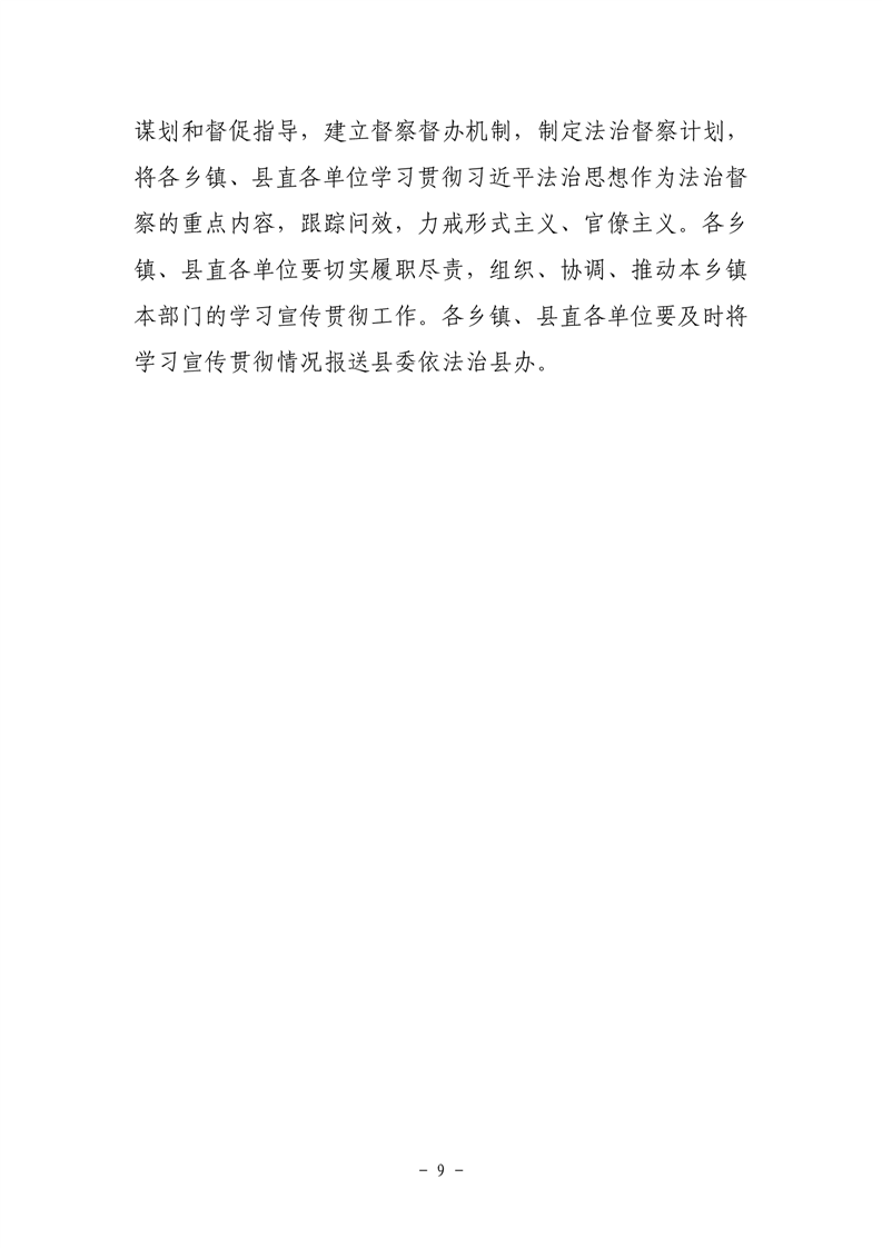 关于印发《关于认真学习贯彻习近平法治思想 推进全面依法治县的意见》的通知