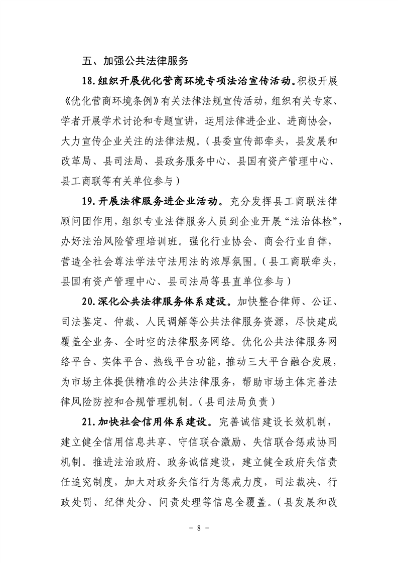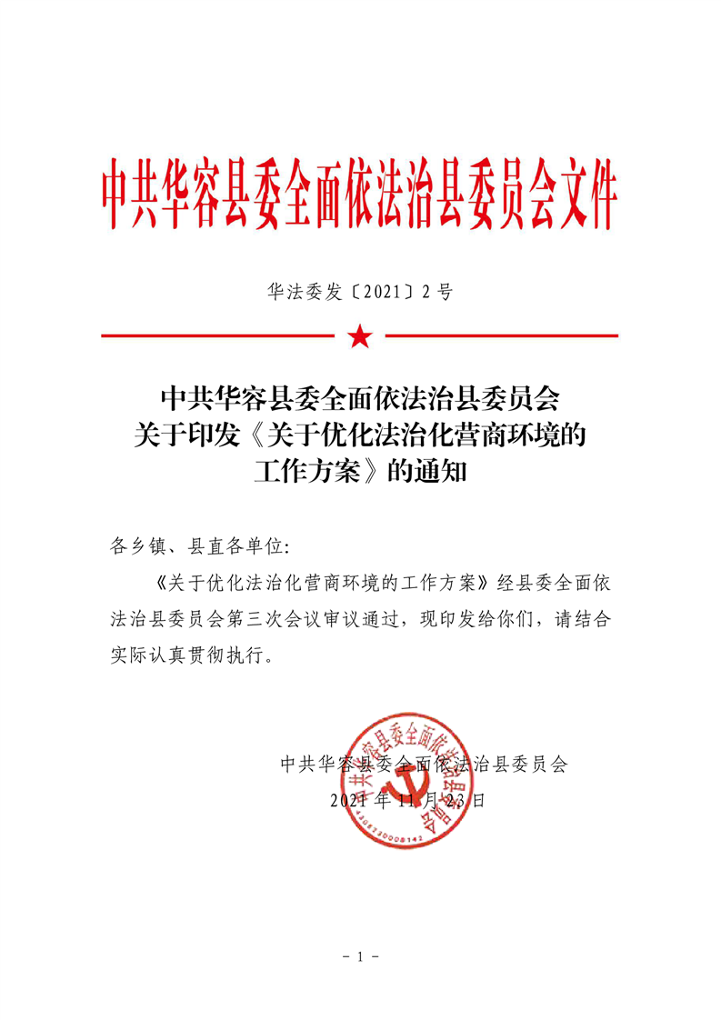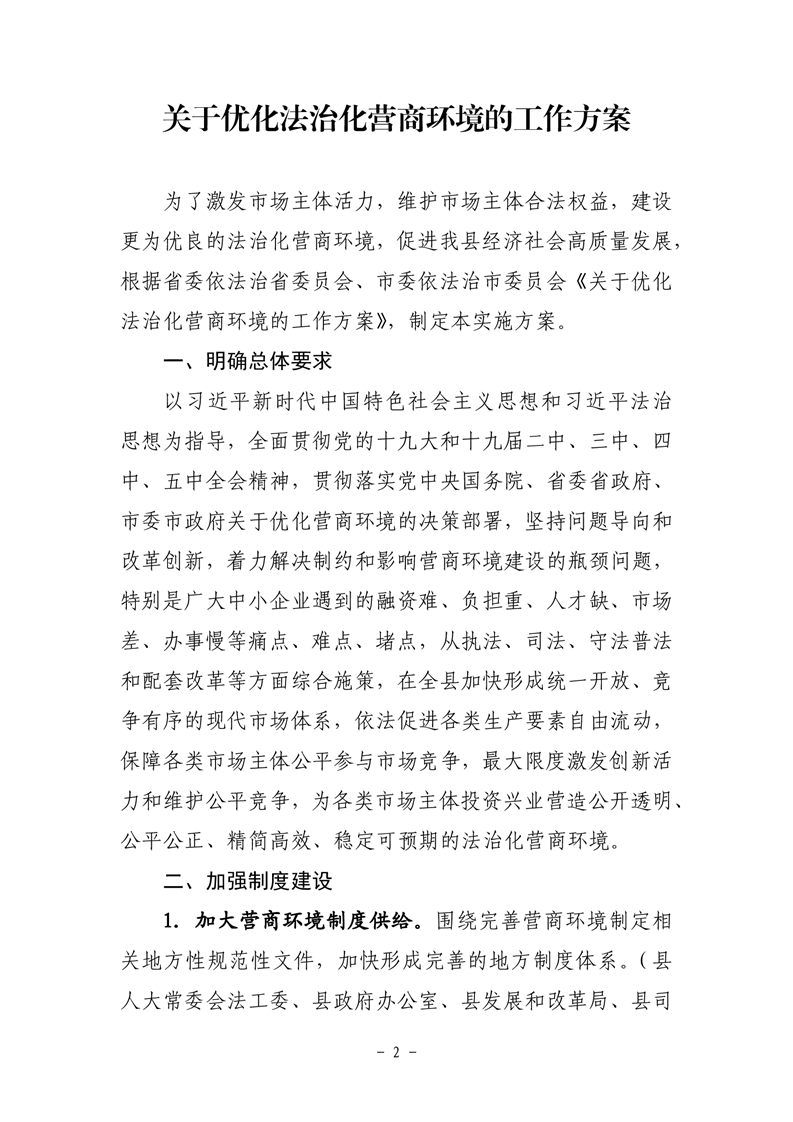 关于印发《关于优化法治化营商环境的工作方案》的通知