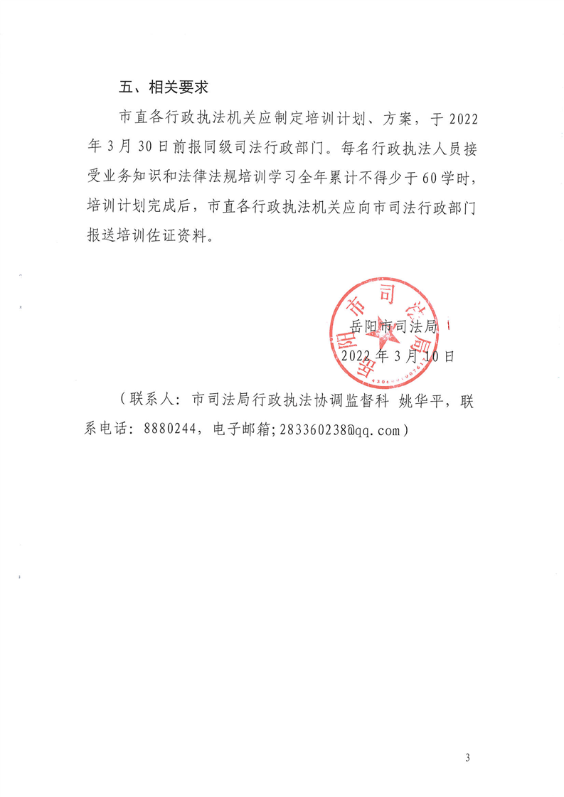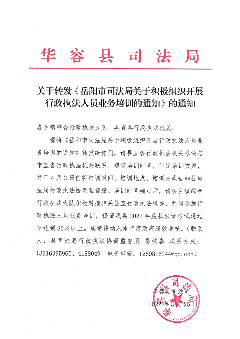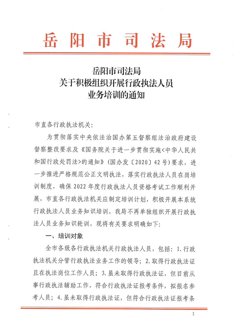 关于转发《岳阳市司法局关于积极组织开展行政执法人员培训的通知》的通知