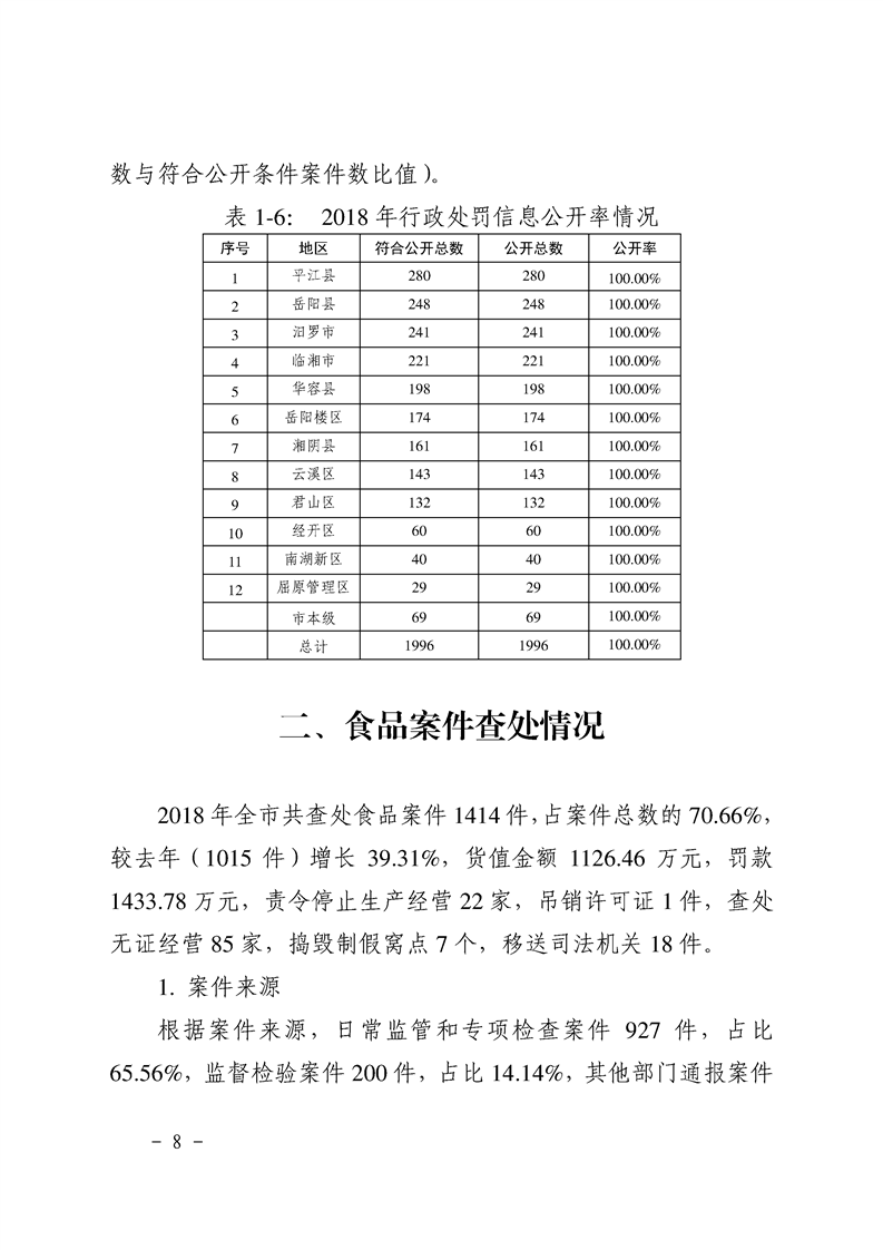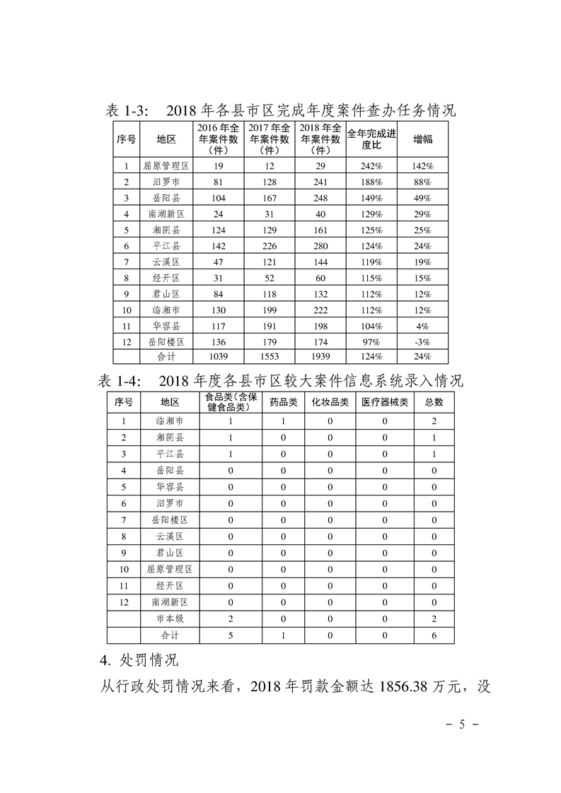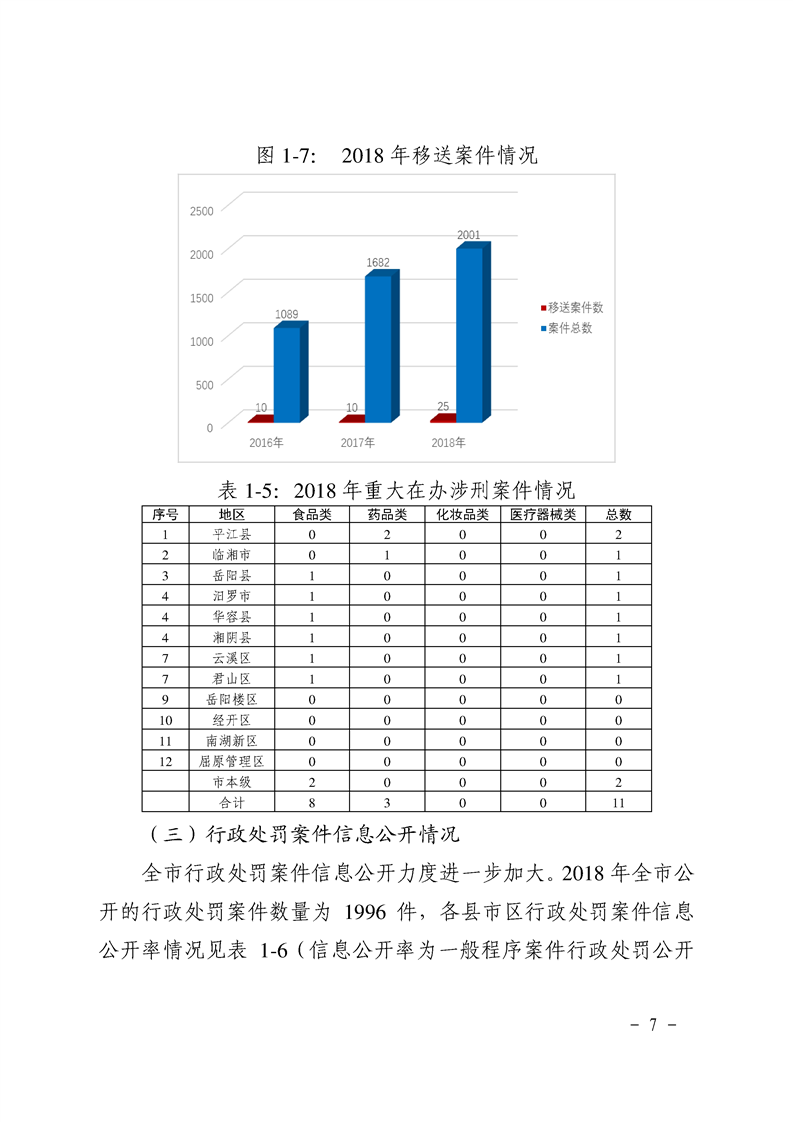 转发岳阳市2018年食品药品违法案件查处分析报告