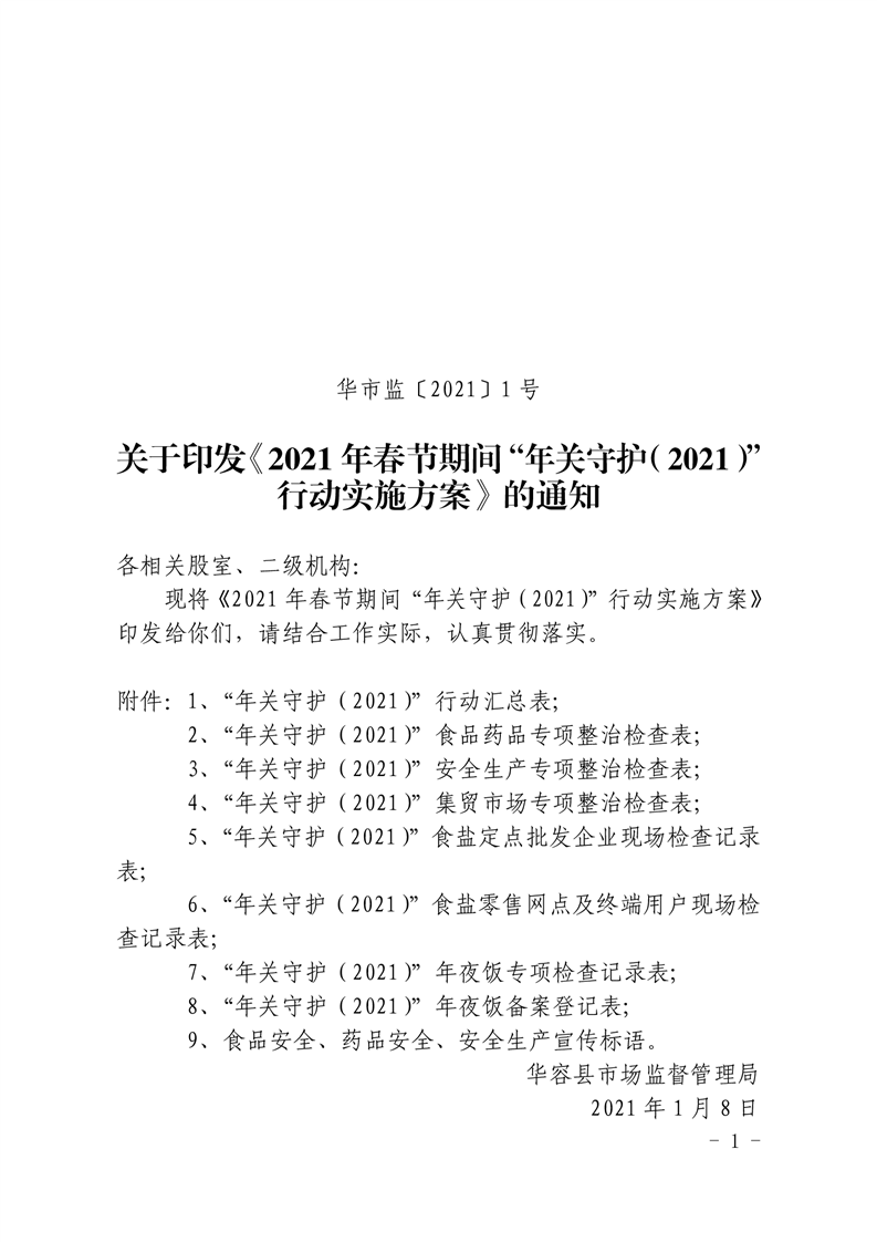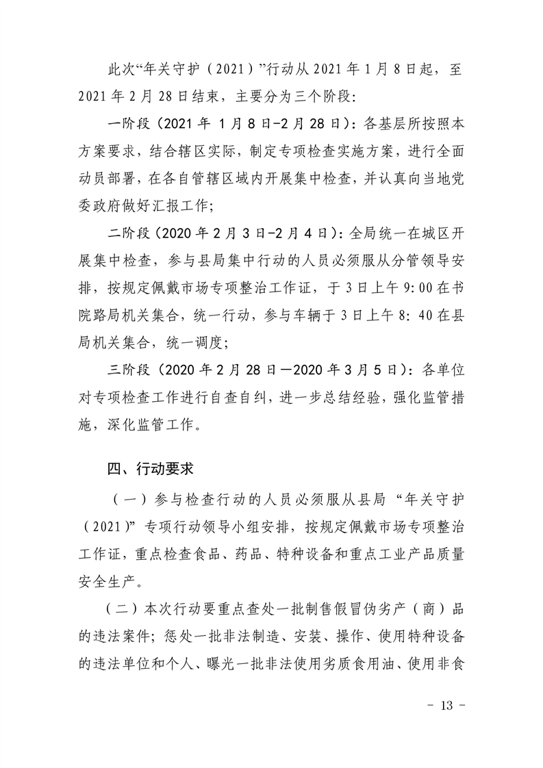关于印发《2021年春节期间“年关守护(2021)”行动实施方案》的通知