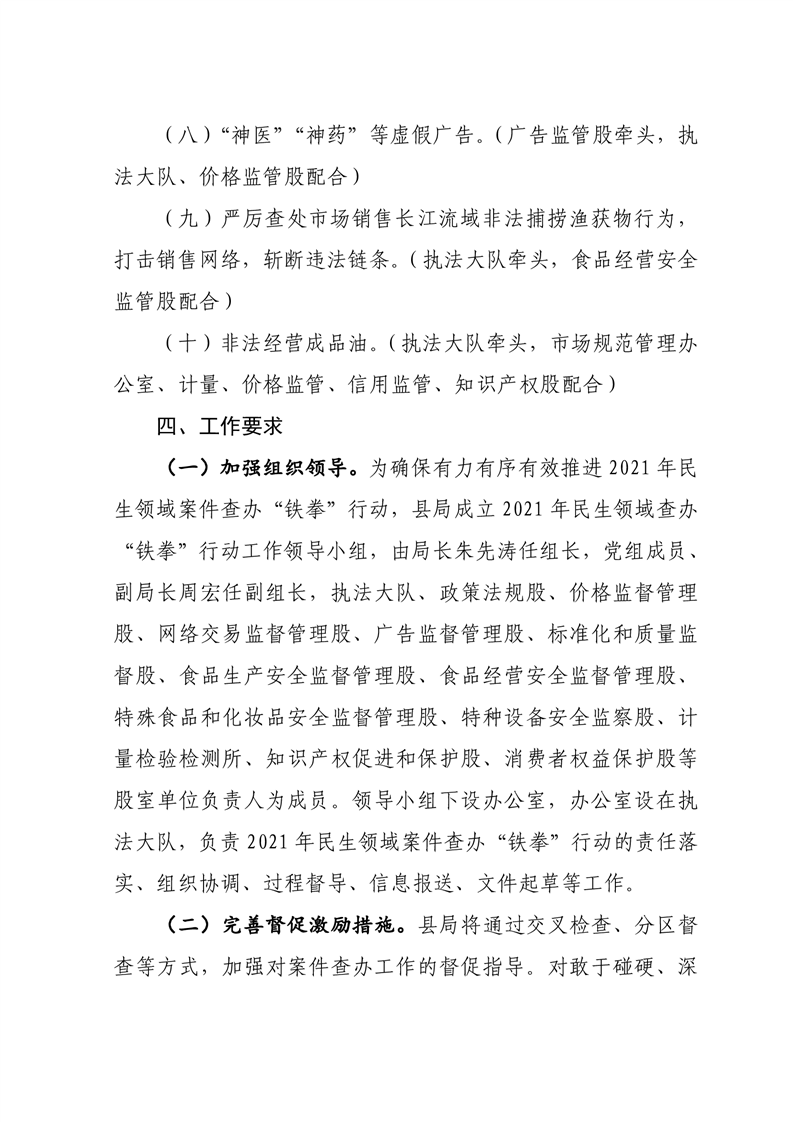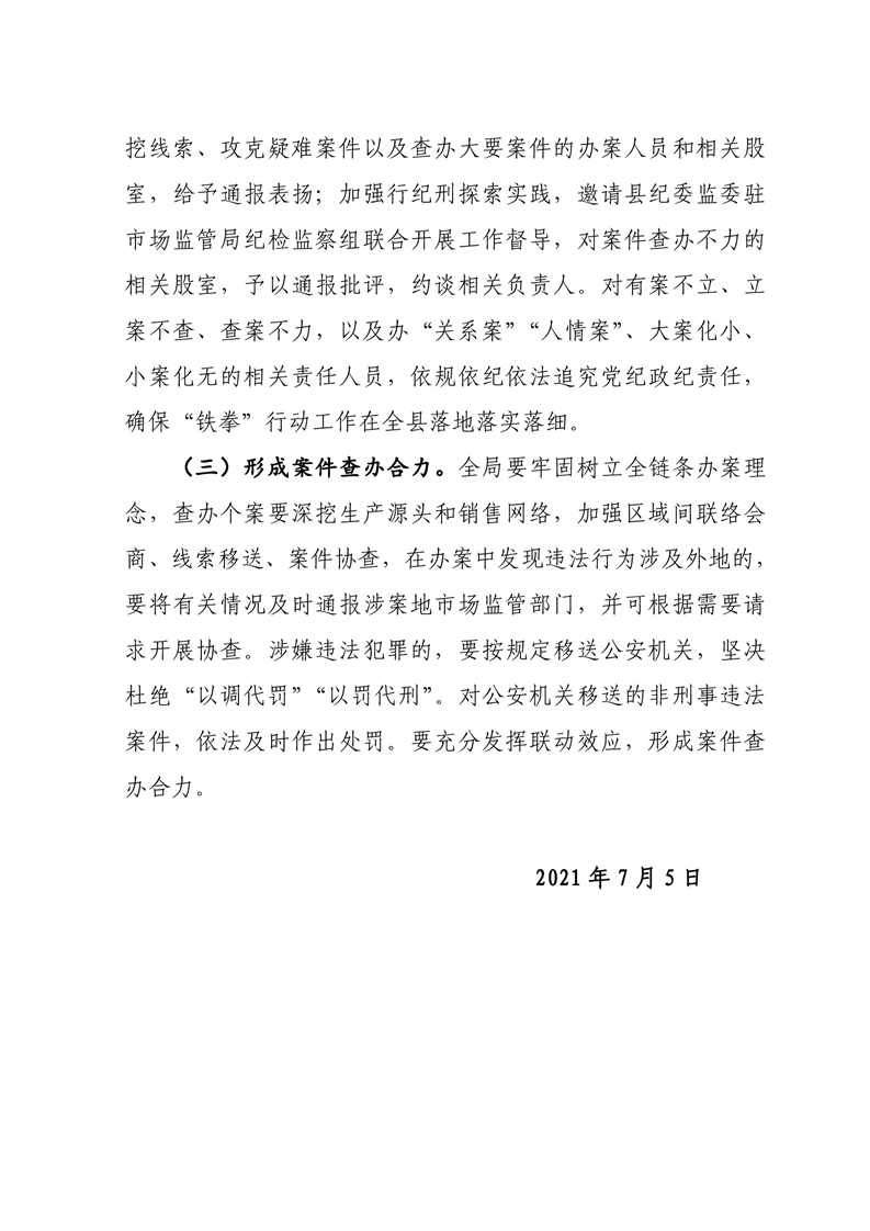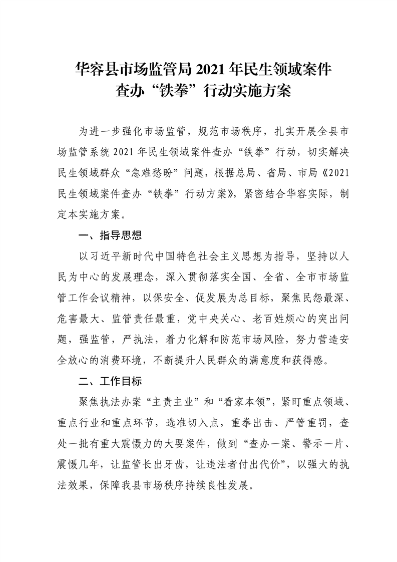 关于印发《华容县市监局2021年民生领域案件查办“铁拳”行动实施方案》的通知