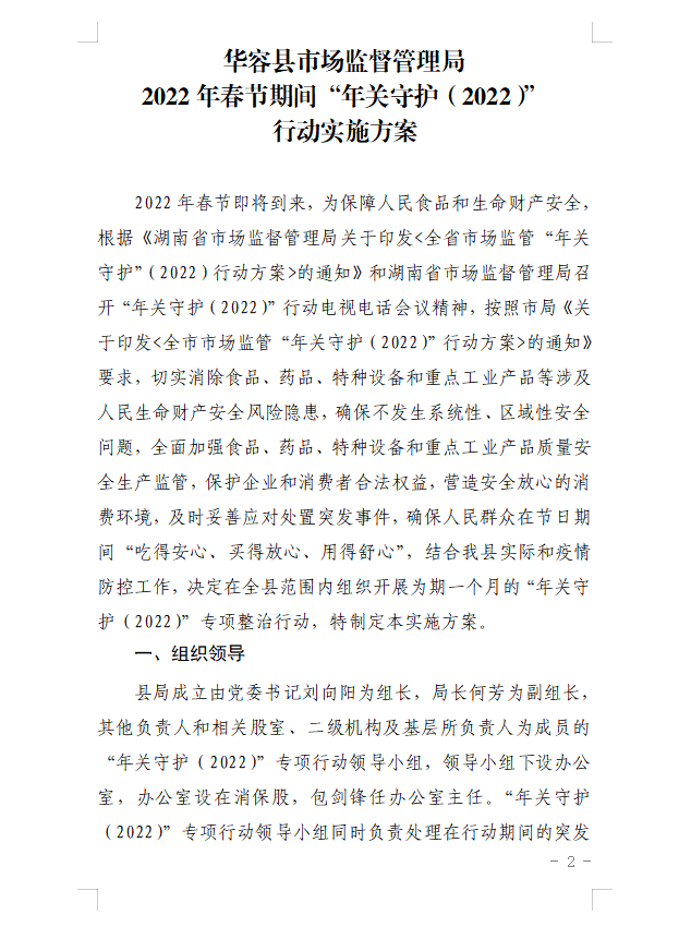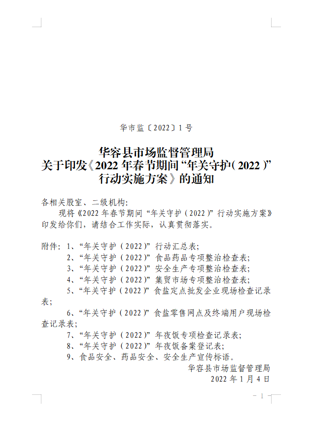 华容县市场监督管理局 关于印发《2022年春节期间“年关守护(2022)”行动实施方案》的通知