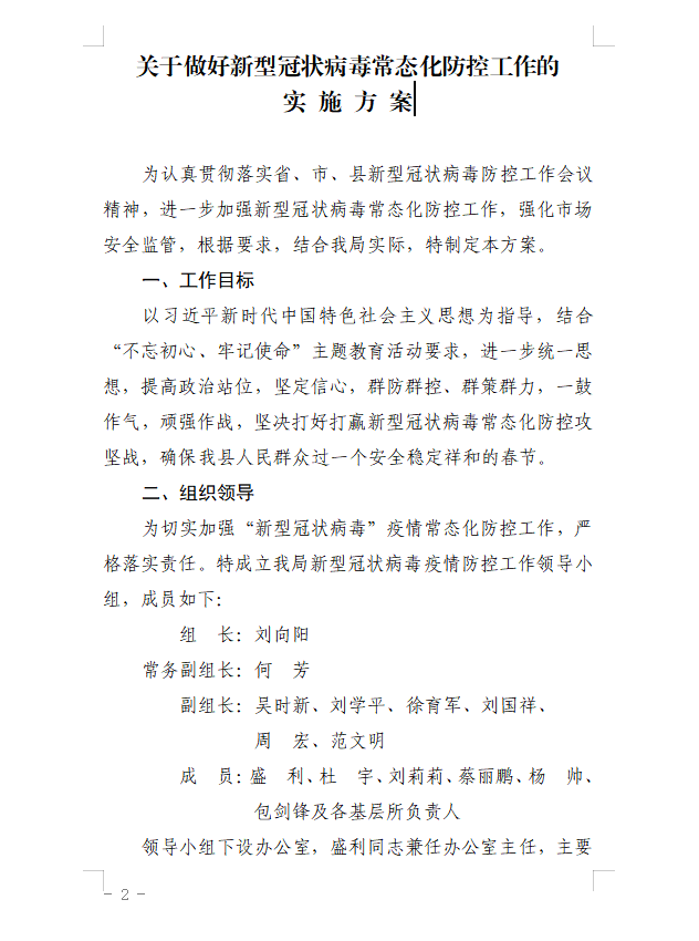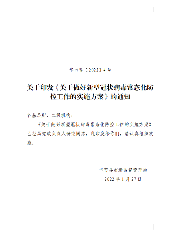 关于印发《关于做好新型冠状病毒常态化防控工作的实施方案》的通知