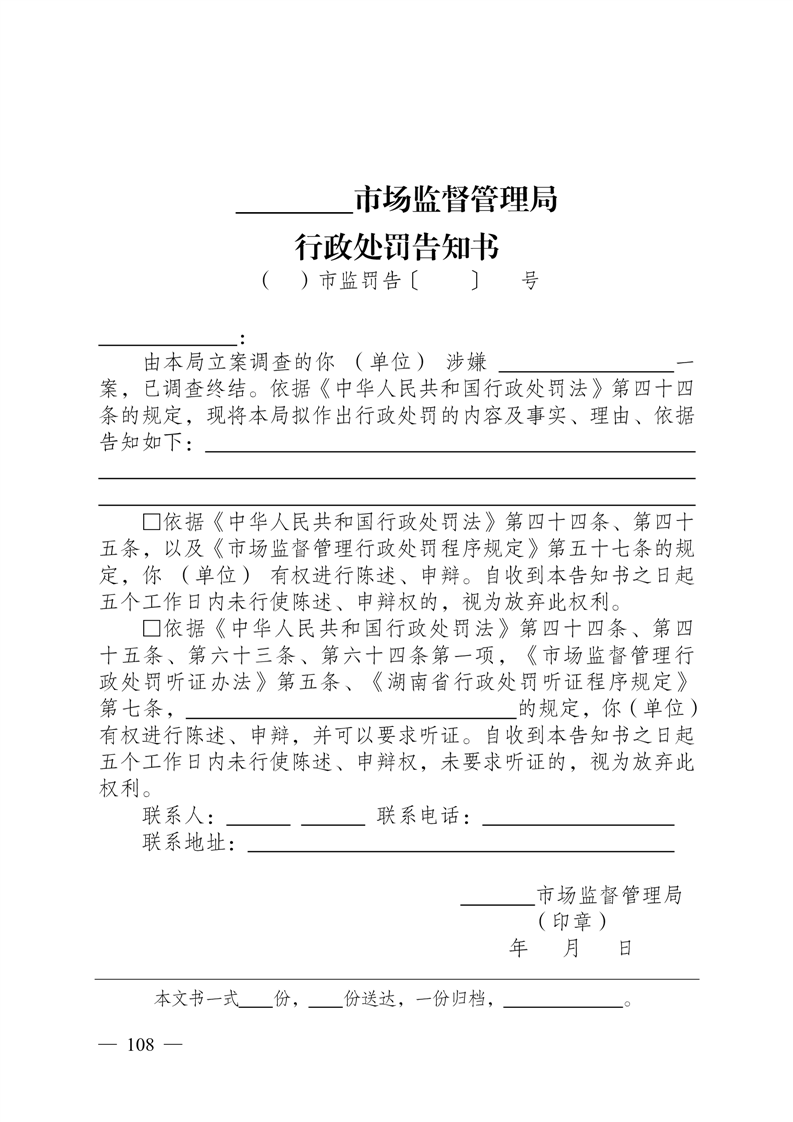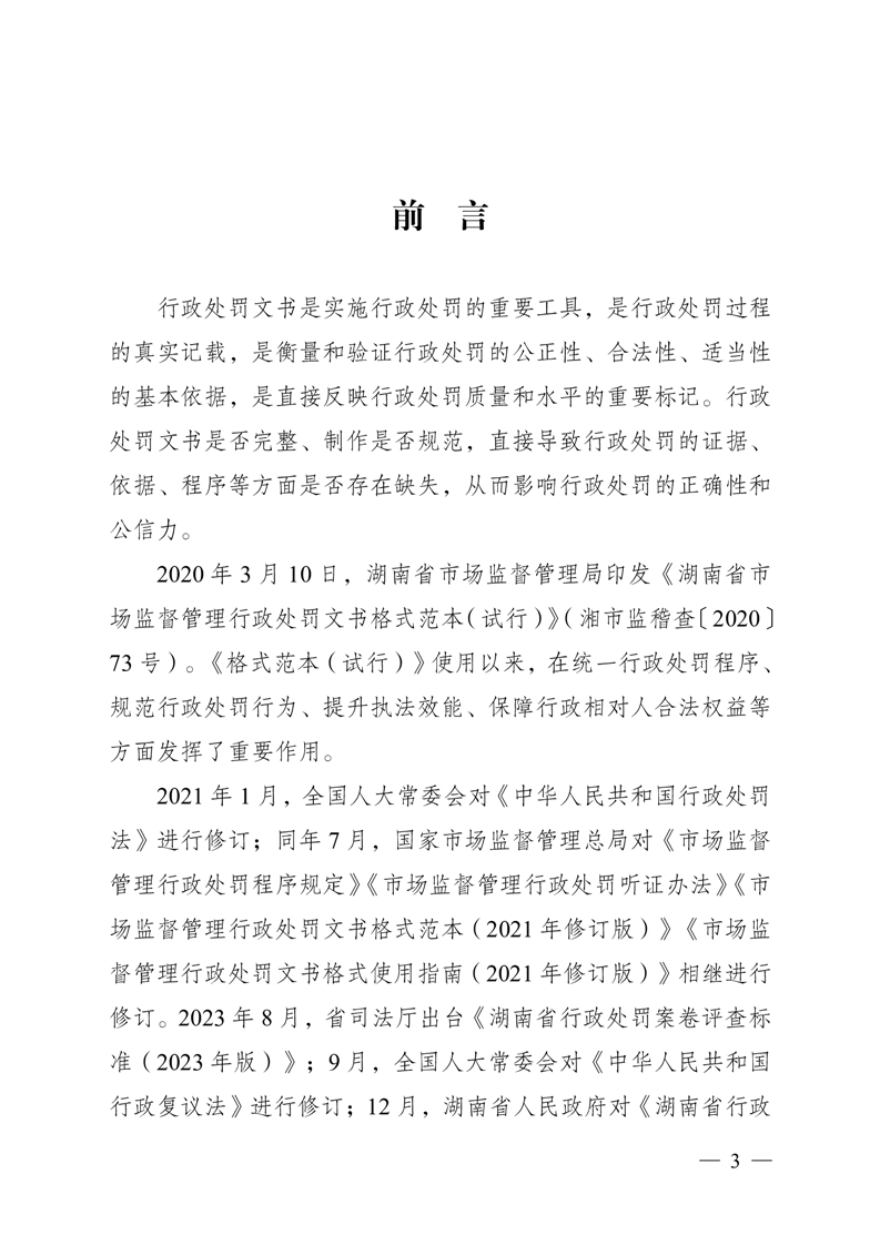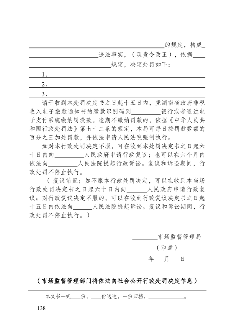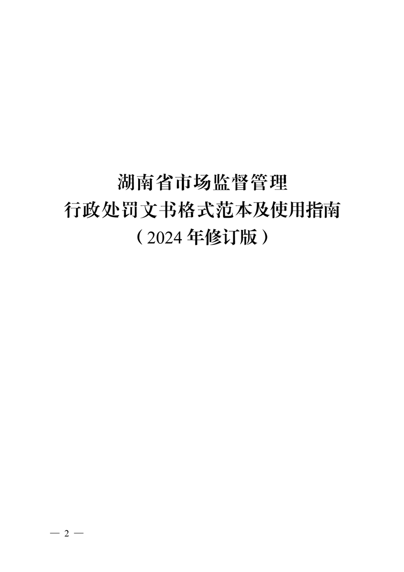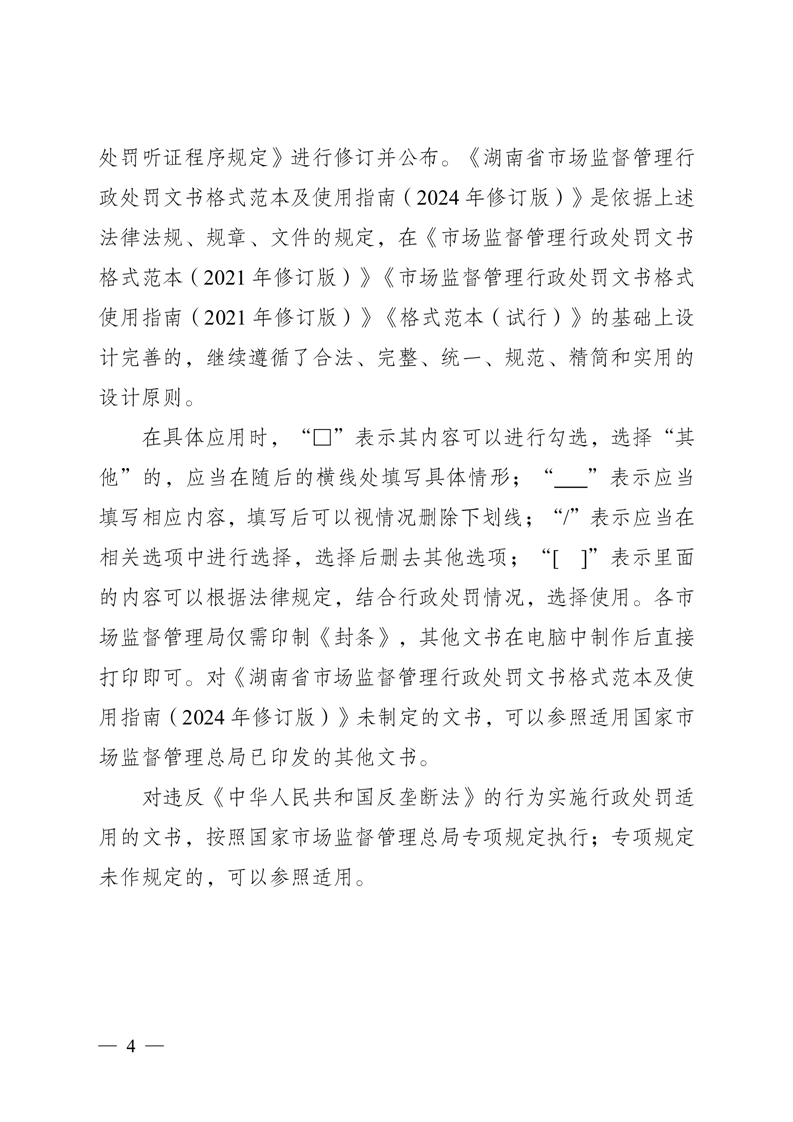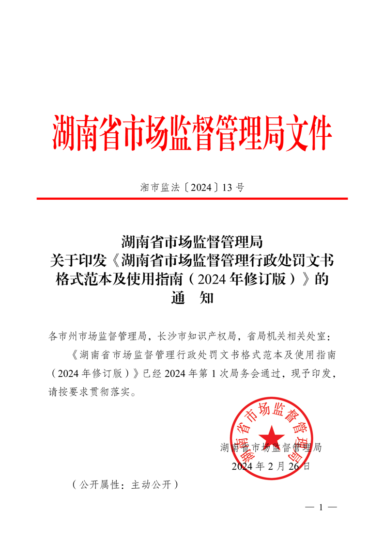湘市监法〔2024〕13号 关于印发《湖南省市场监督管理行政处罚文书格式范本及使用指南(2024年修订版)》的通知