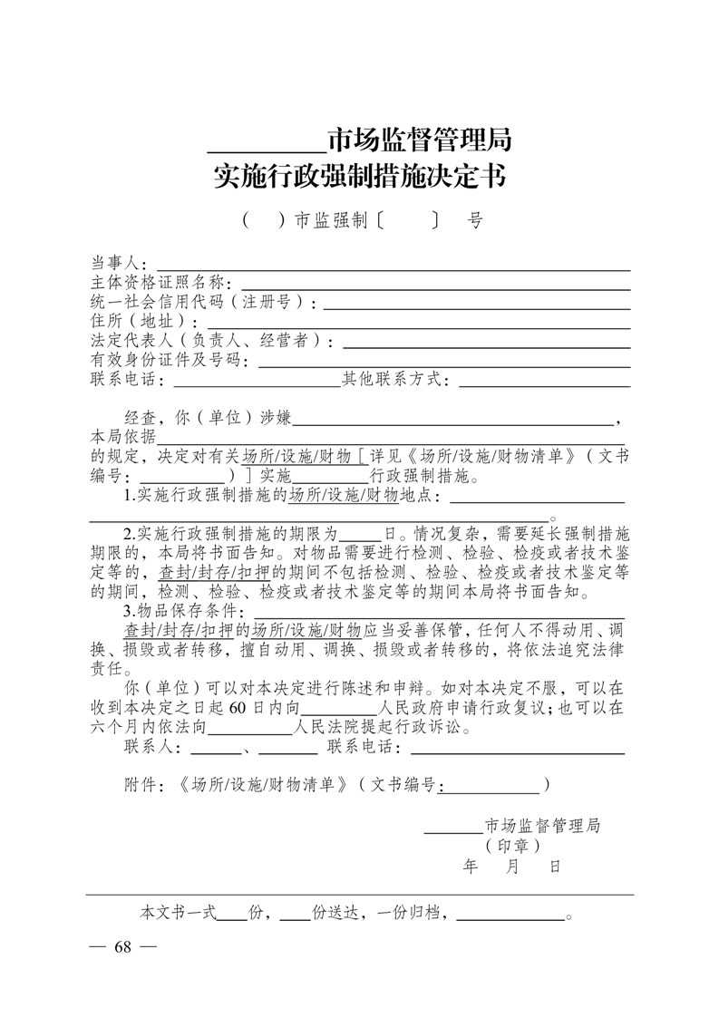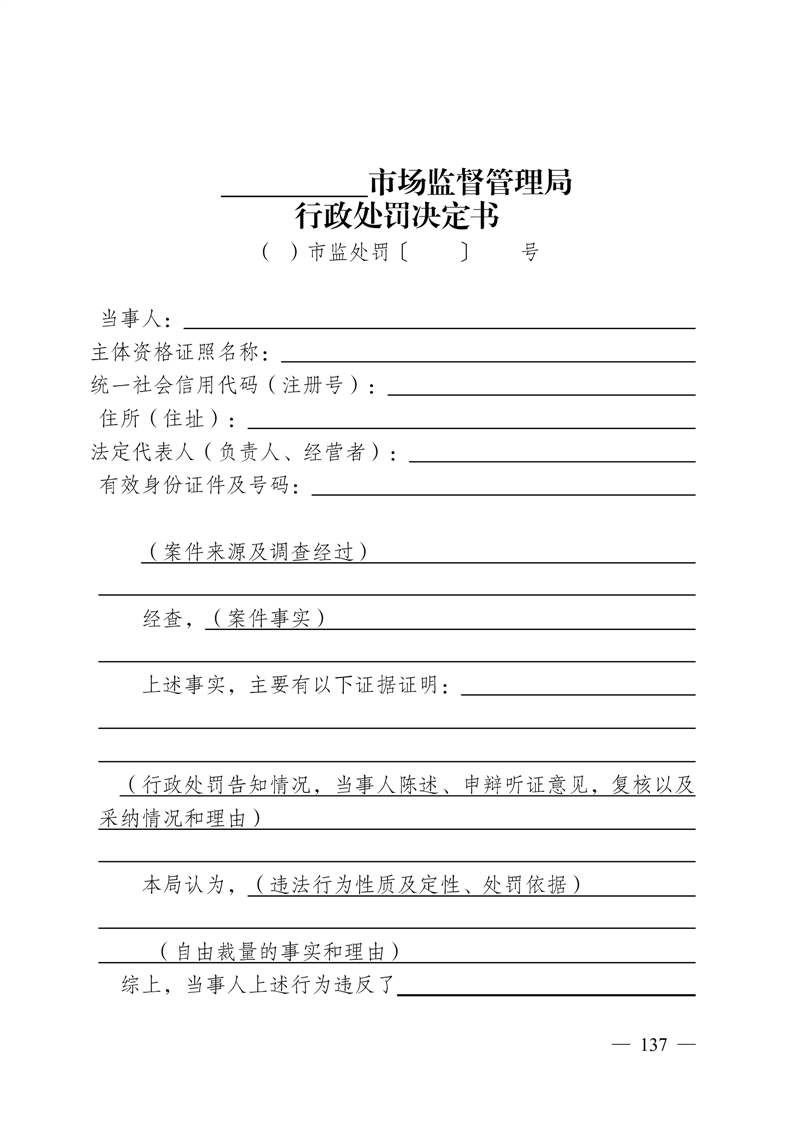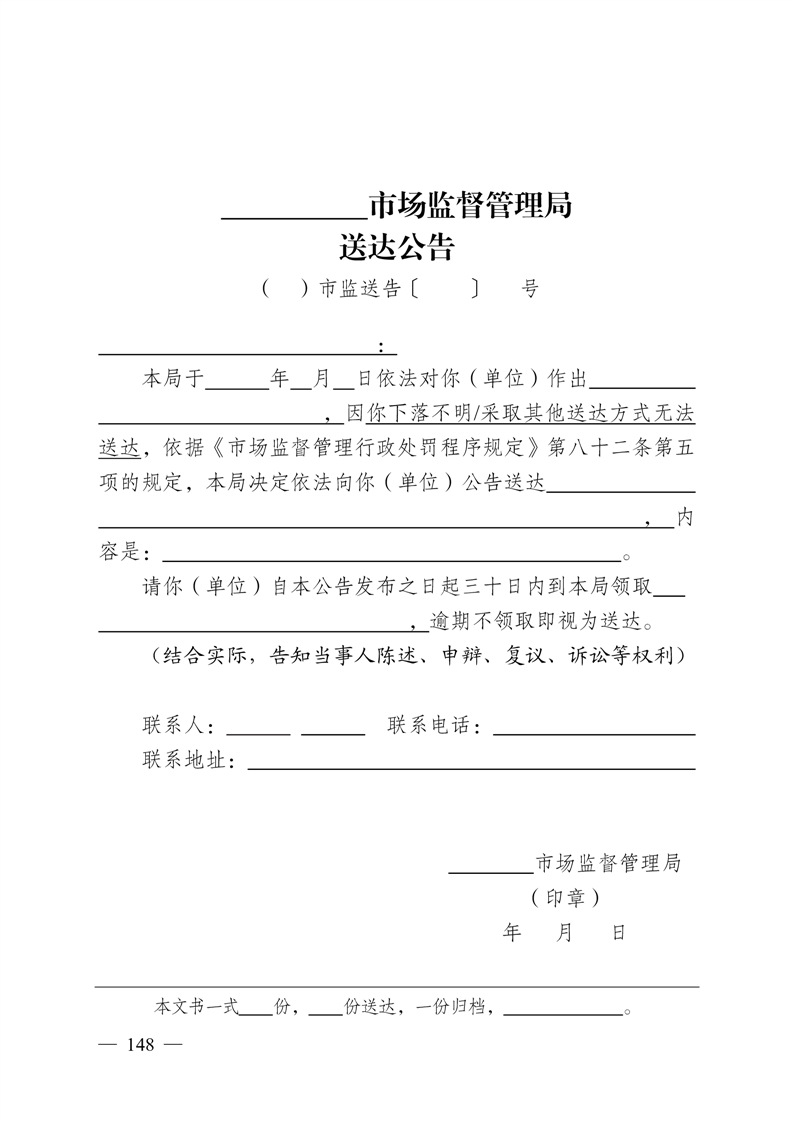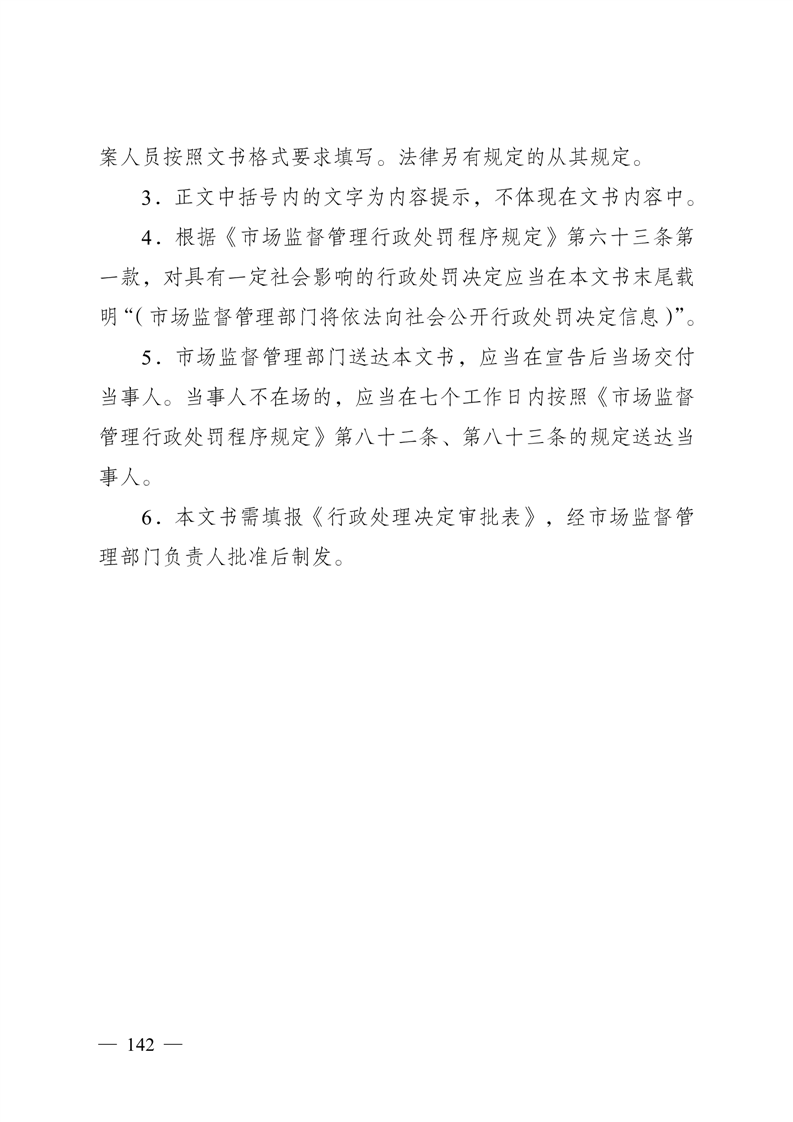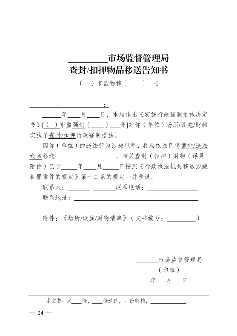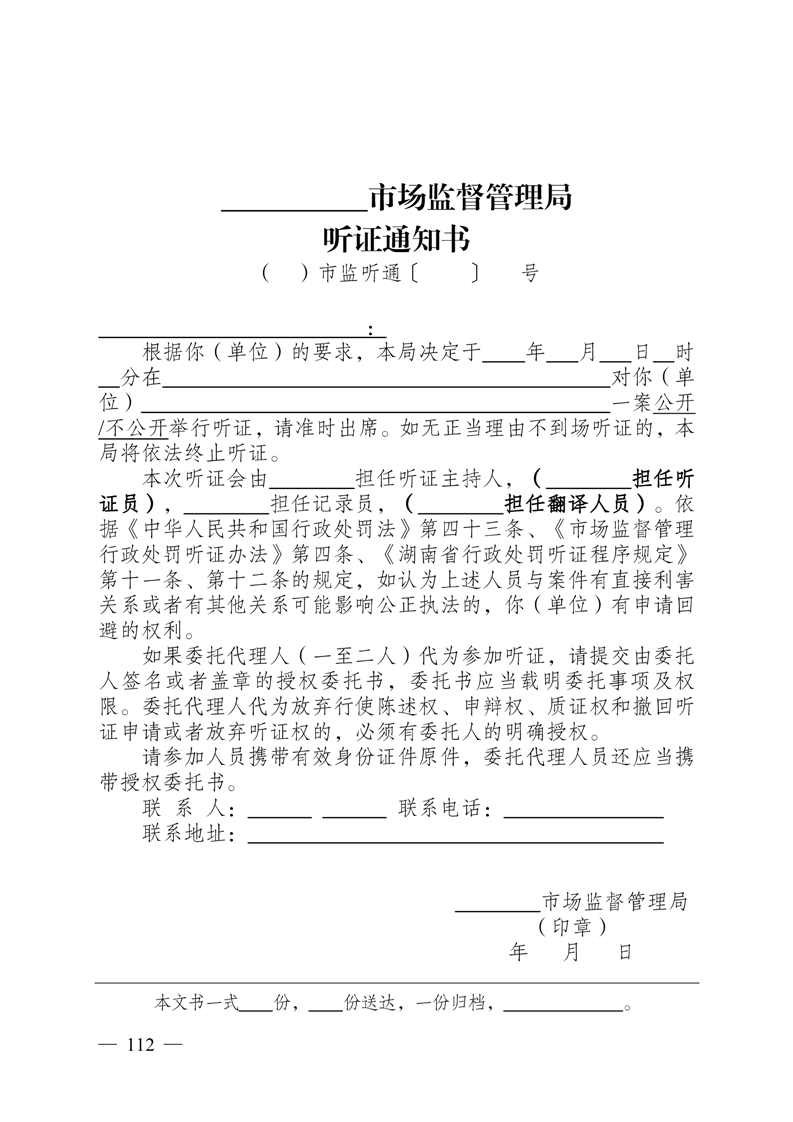 湘市监法〔2024〕13号 关于印发《湖南省市场监督管理行政处罚文书格式范本及使用指南(2024年修订版)》的通知