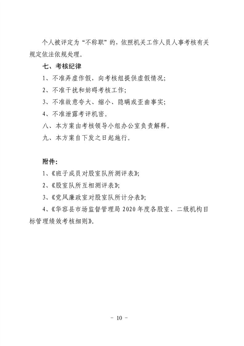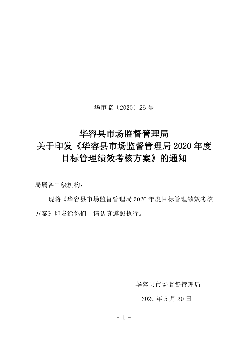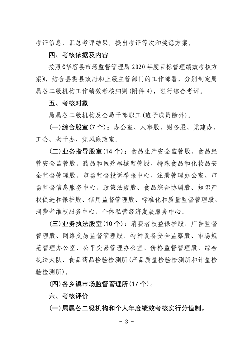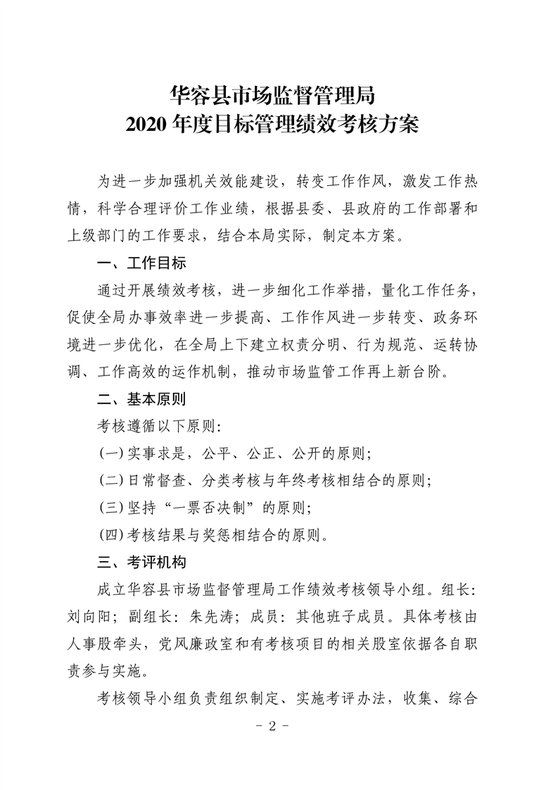 华容县市场监督管理局2020年度目标管理绩效考核方案