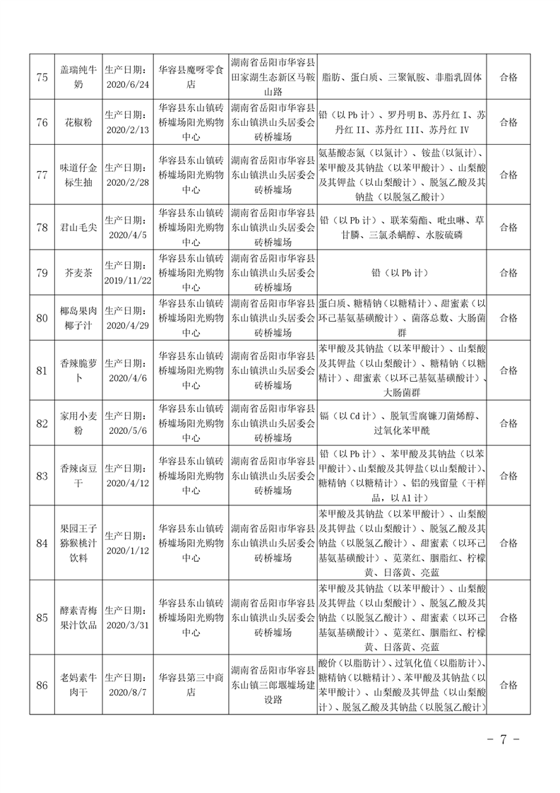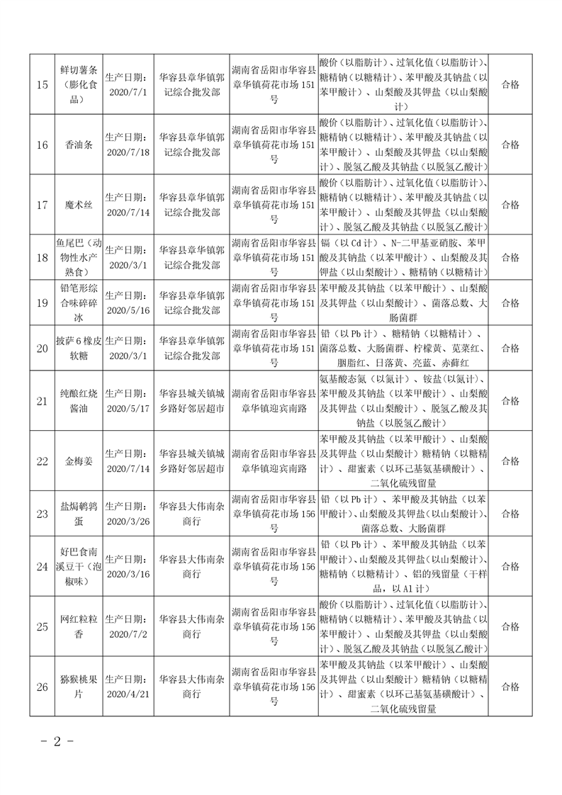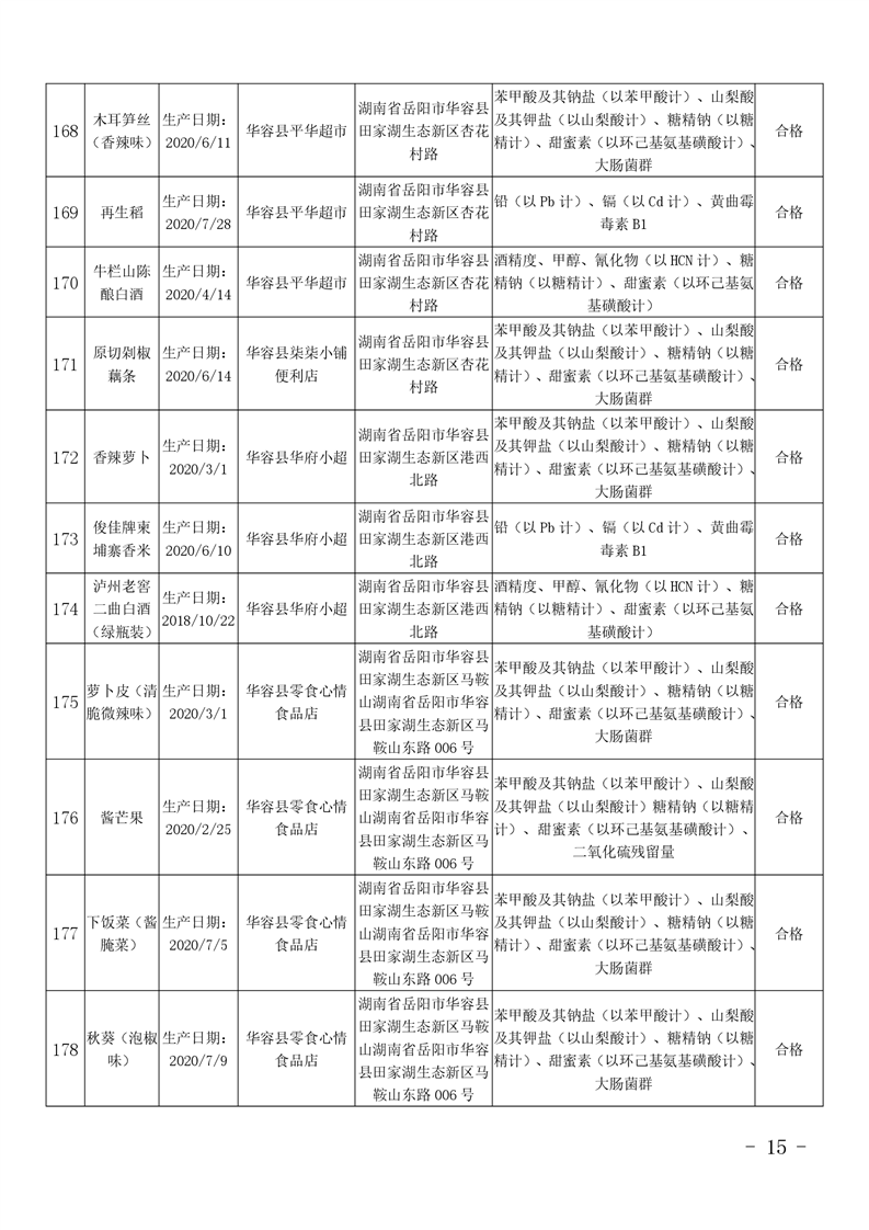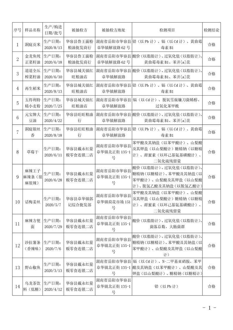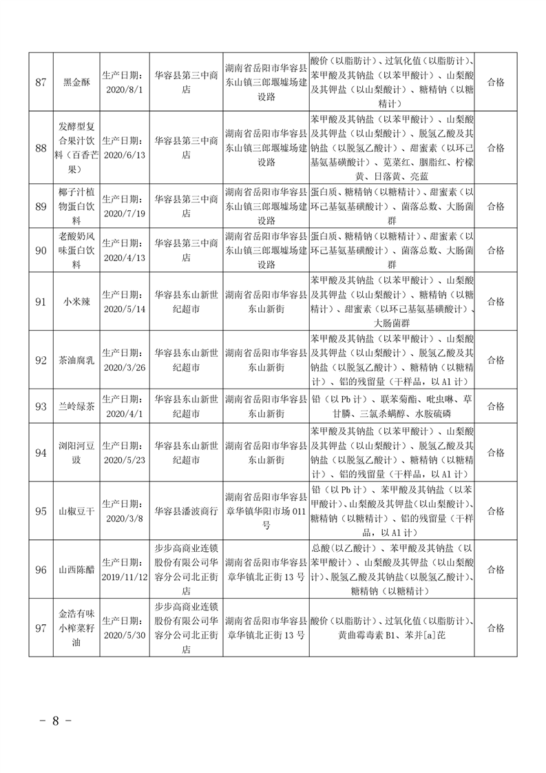 华容县市场监督管理局8月抽检情况汇总表(流通食品)