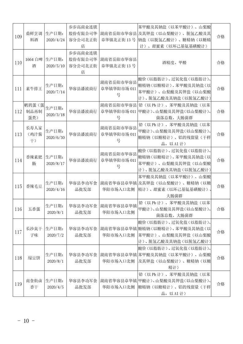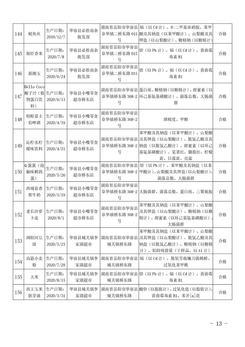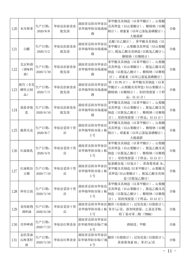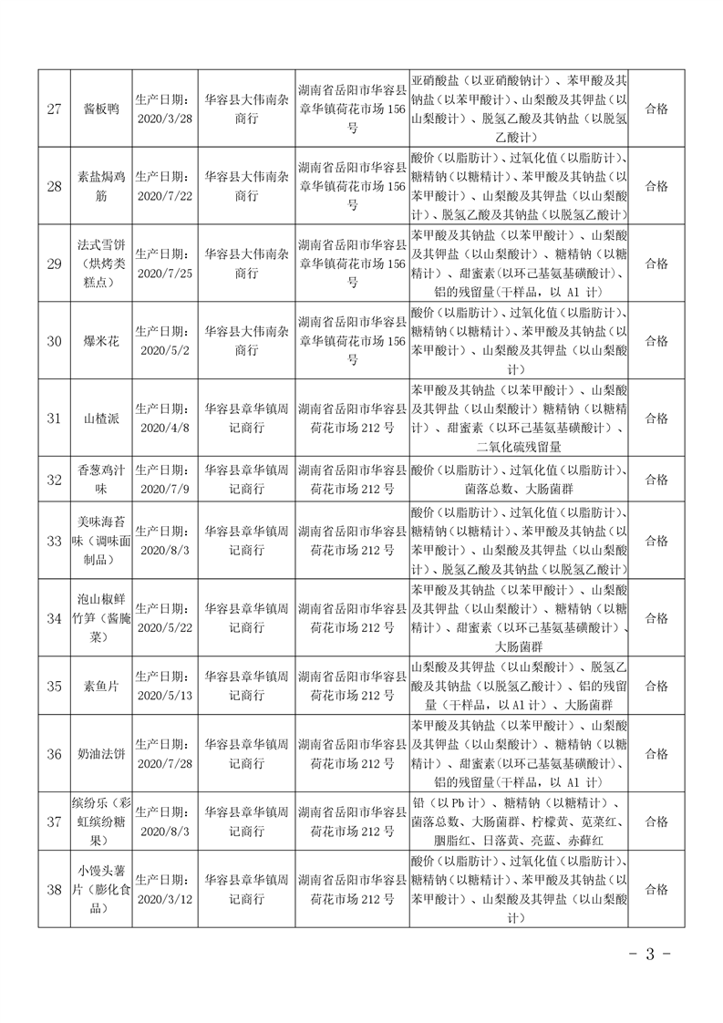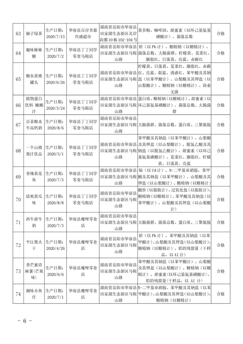 华容县市场监督管理局8月抽检情况汇总表(流通食品)
