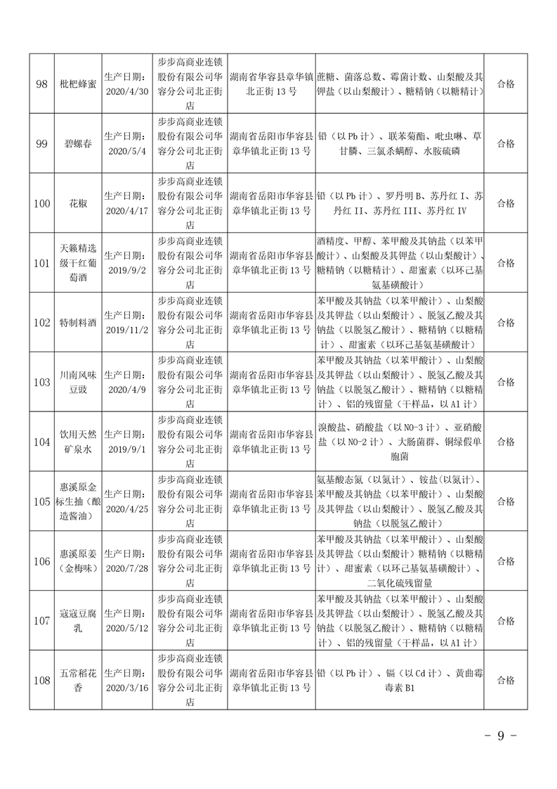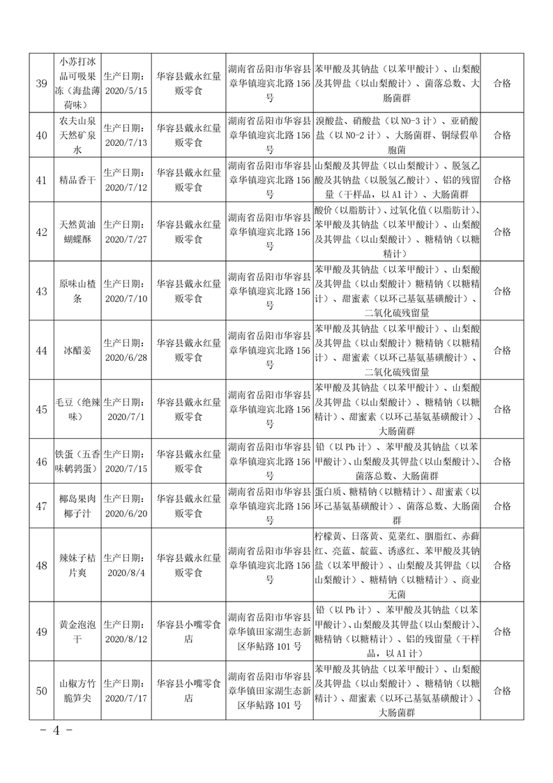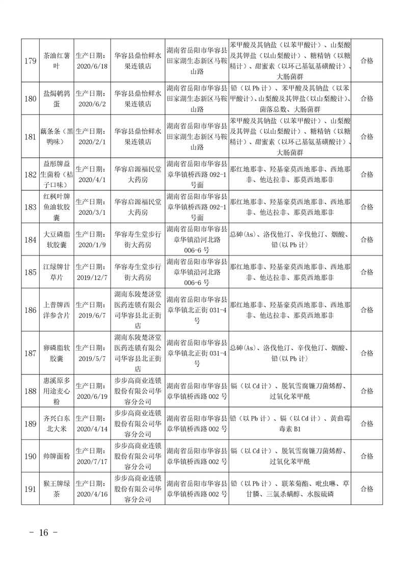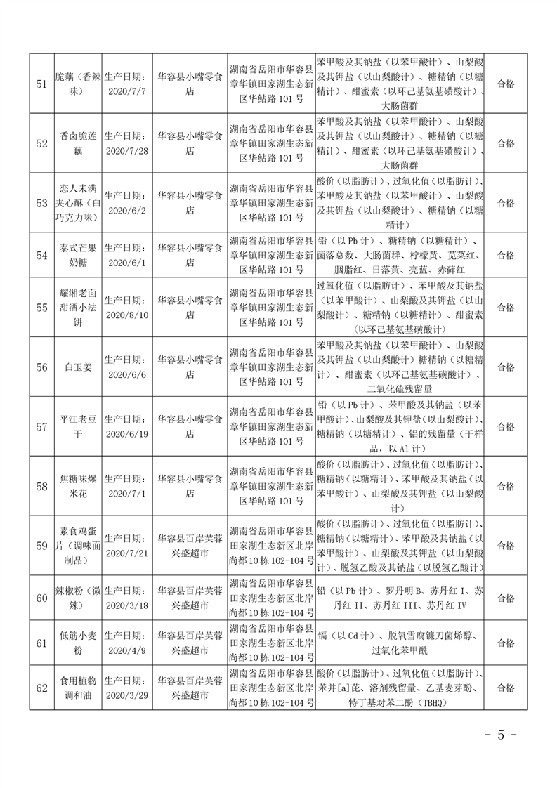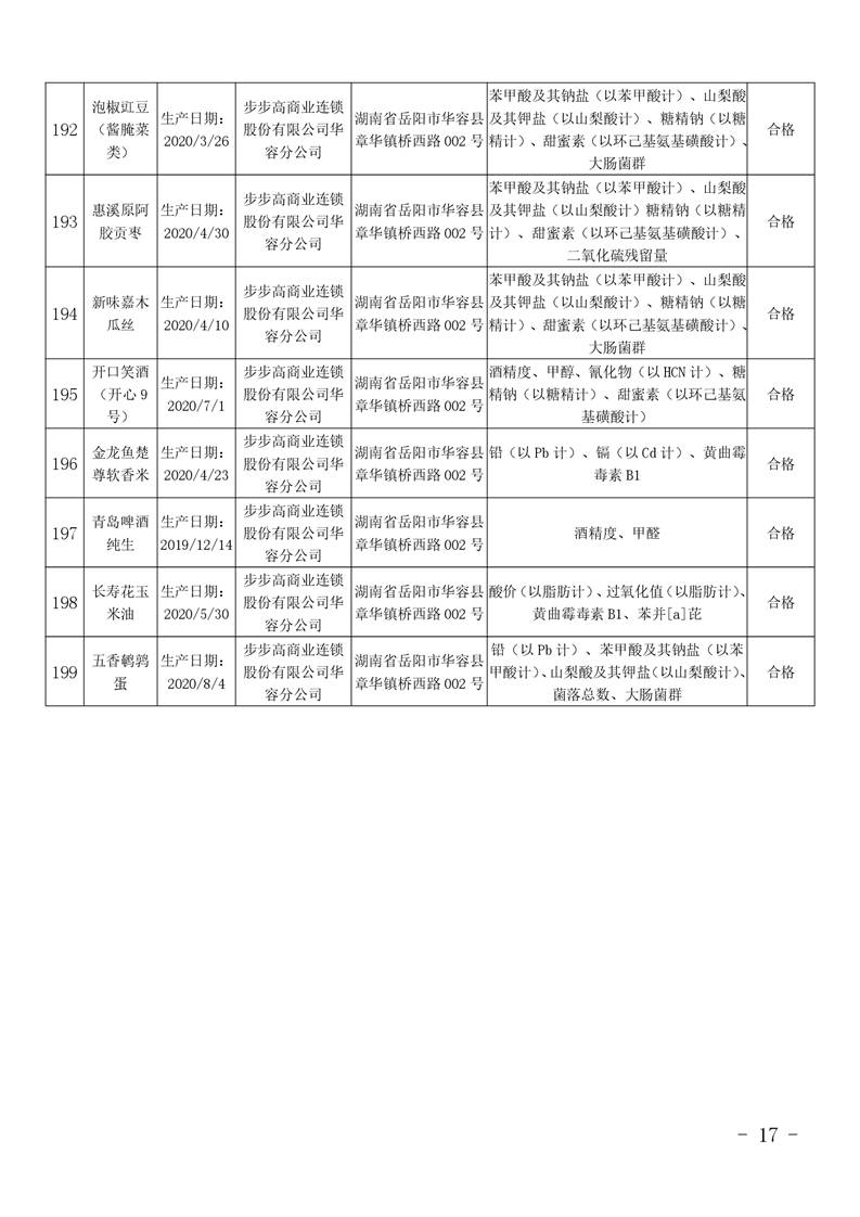 华容县市场监督管理局8月抽检情况汇总表(流通食品)