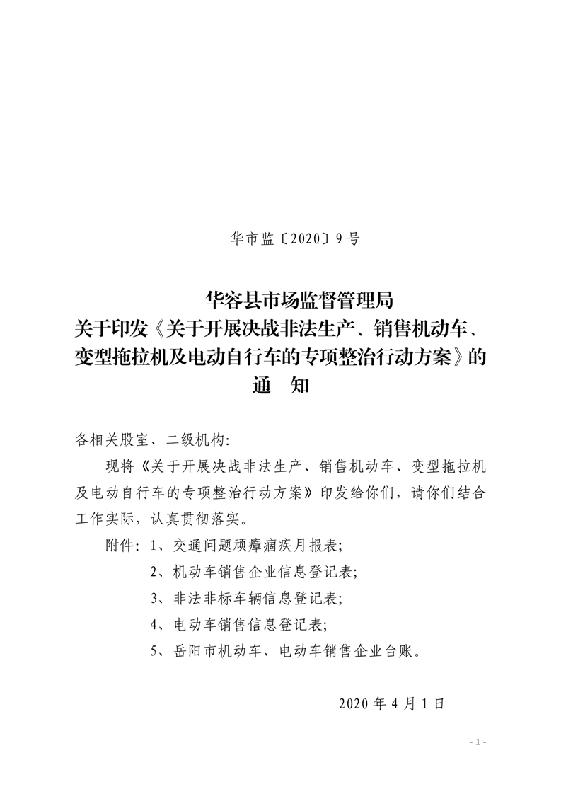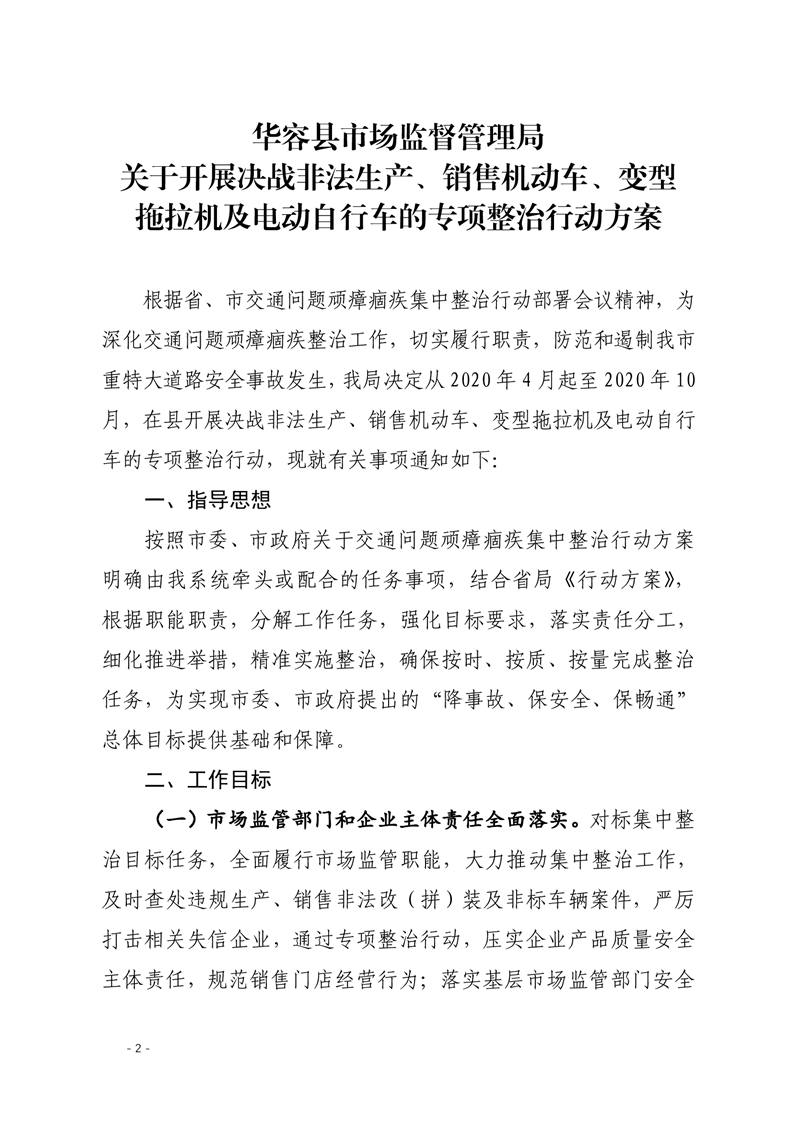 关于开展决战非法生产、销售机动车、变型拖拉机及电动自行车的专项整治行动方案