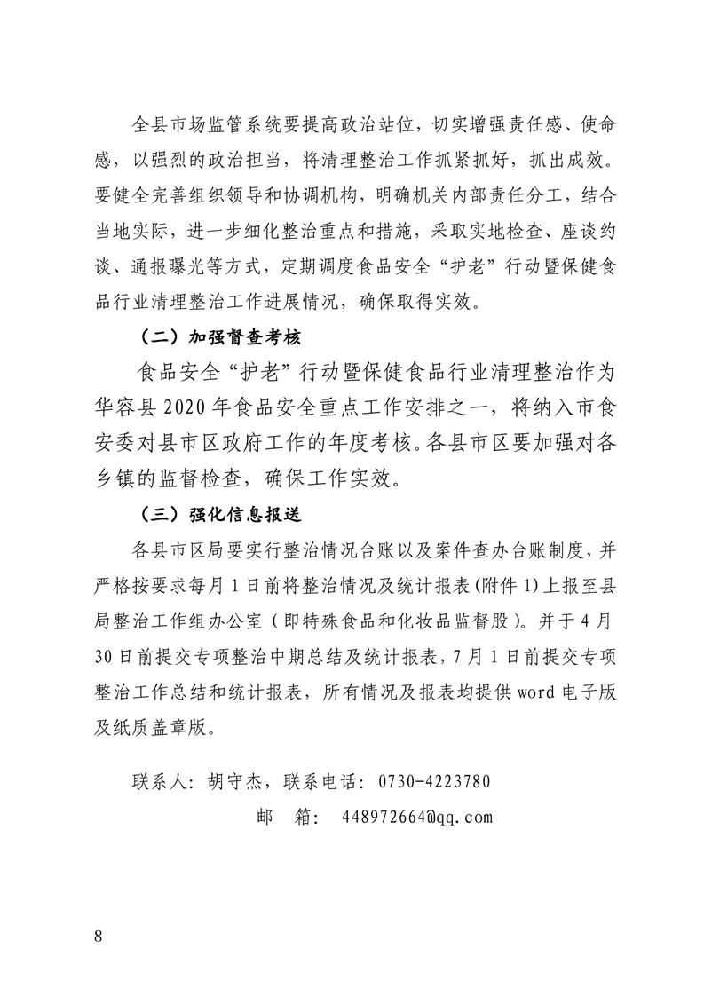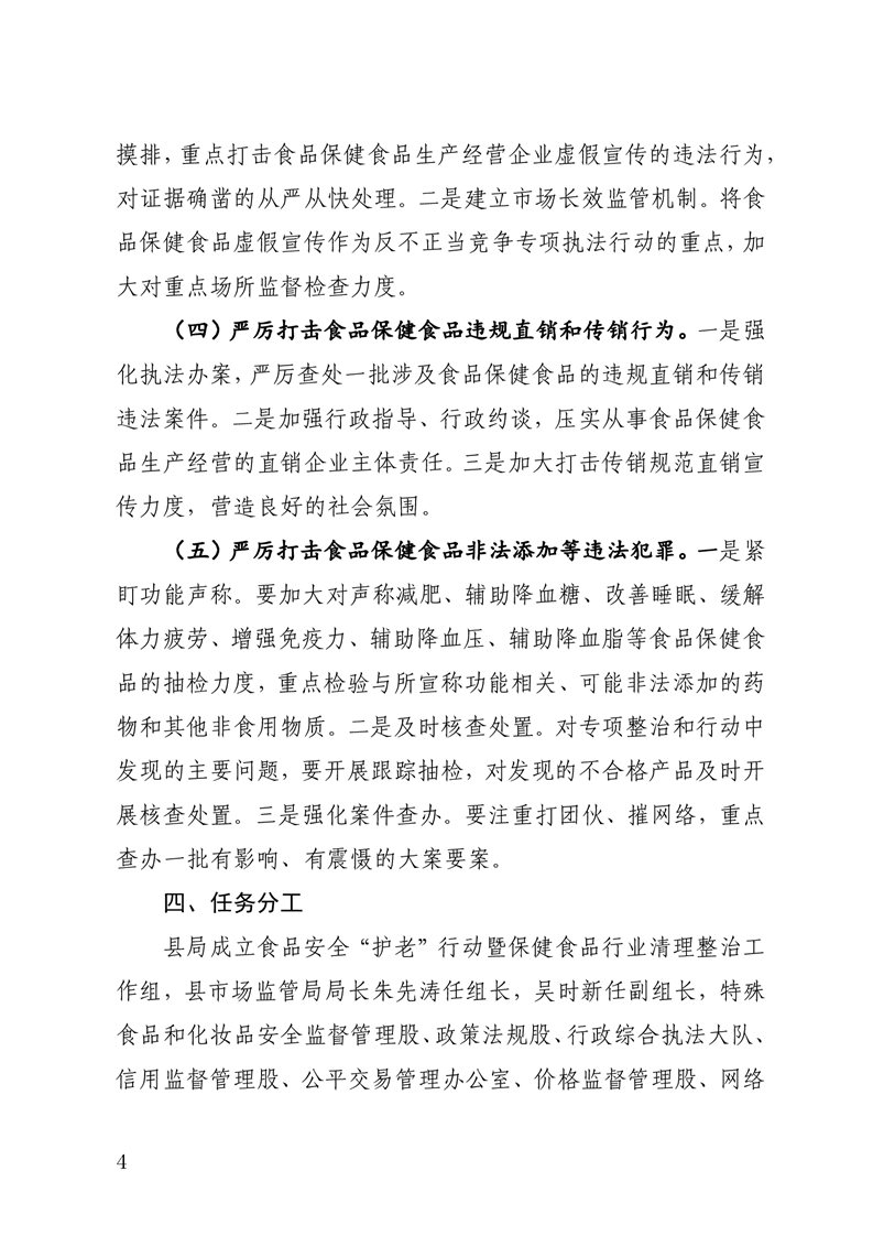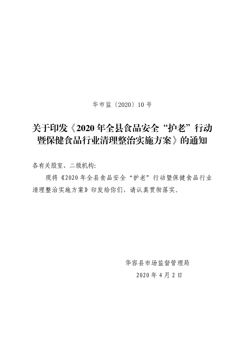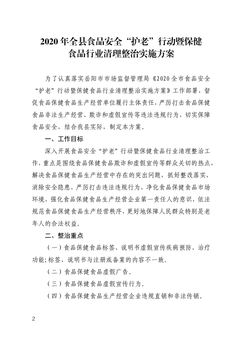 2020年全县食品安全“护老”行动暨保健食品行业清理整治实施方案