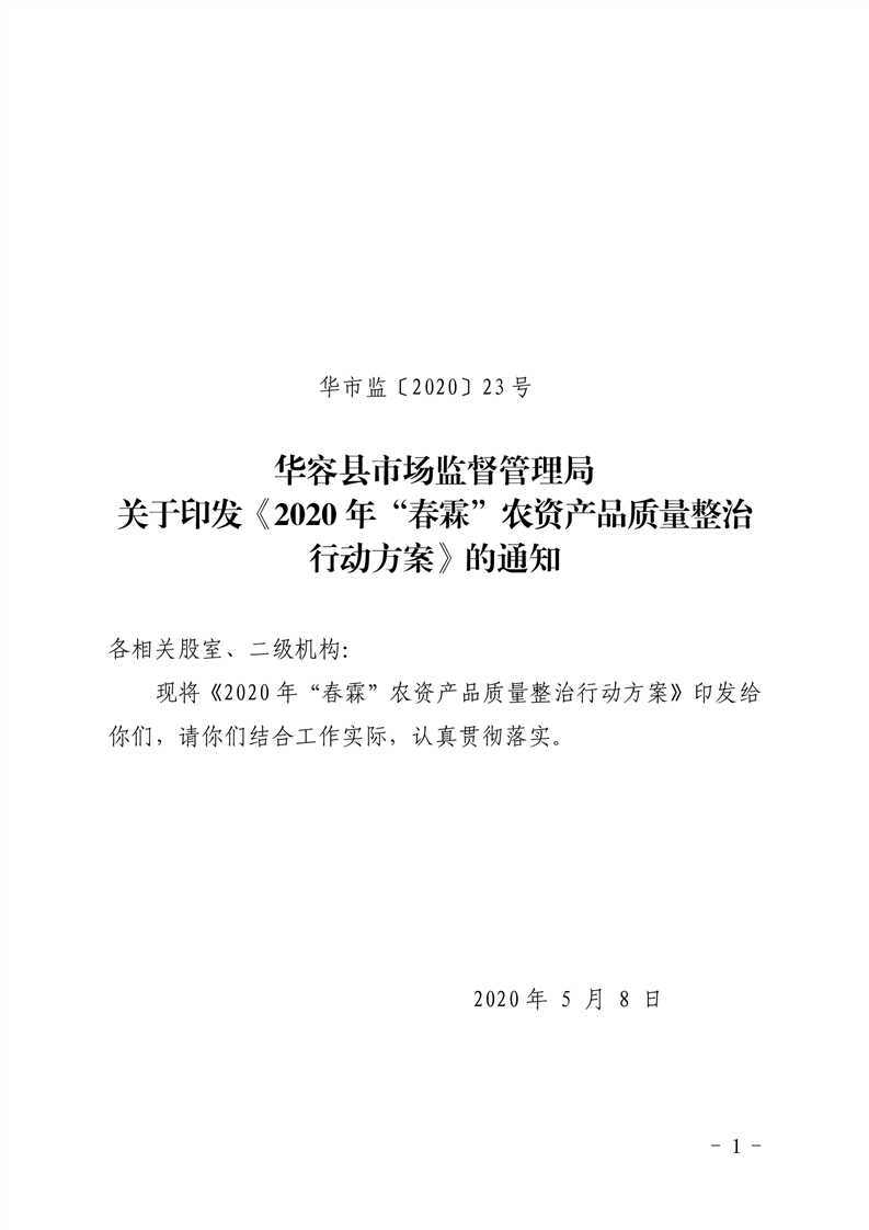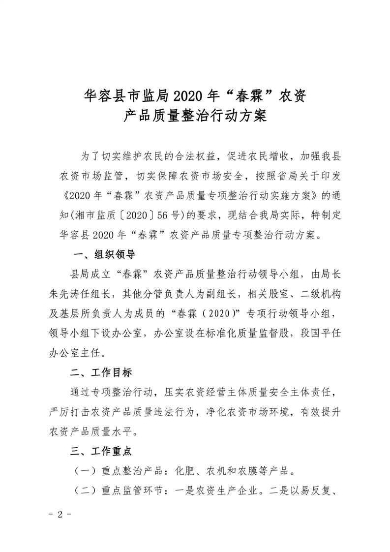 华容县市监局2020年“春霖”农资产品质量整治行动方案