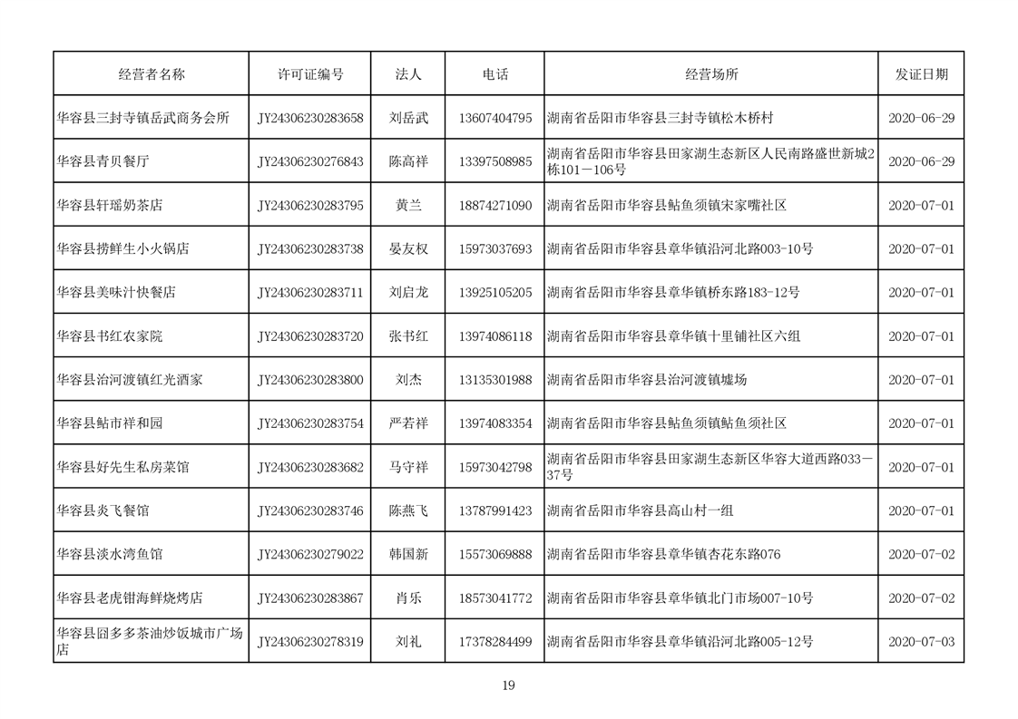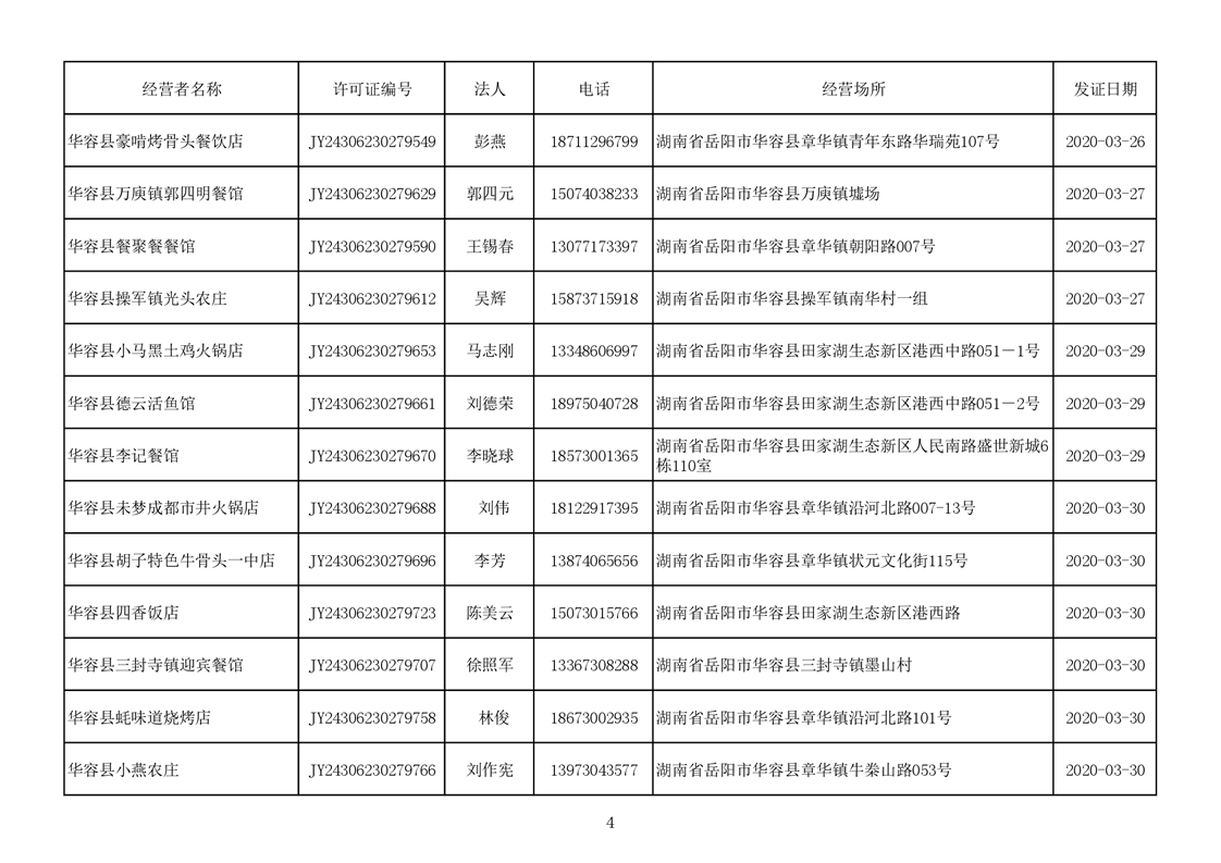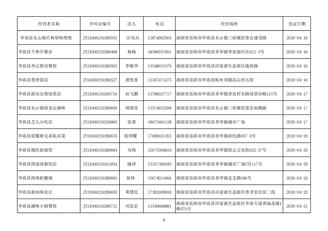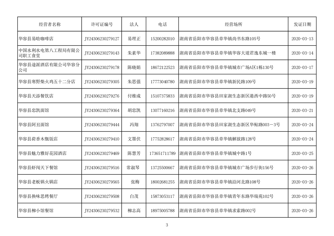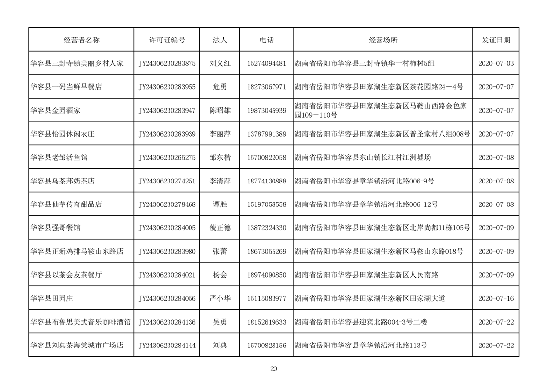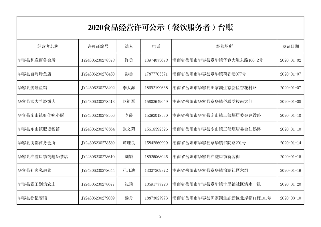 2020食品经营许可公示(餐饮服务者)台账