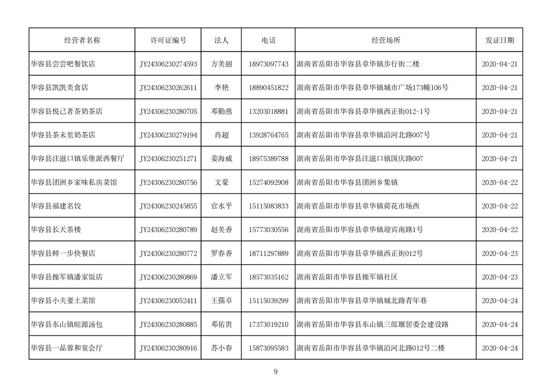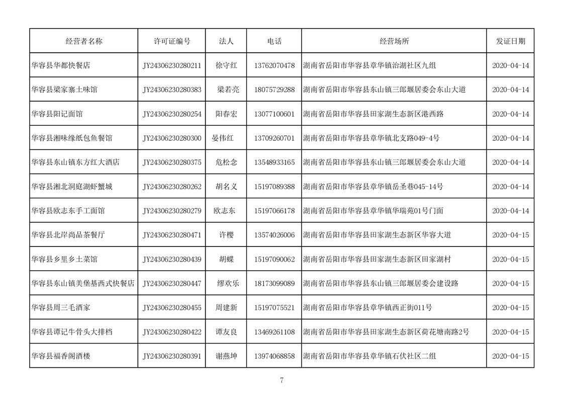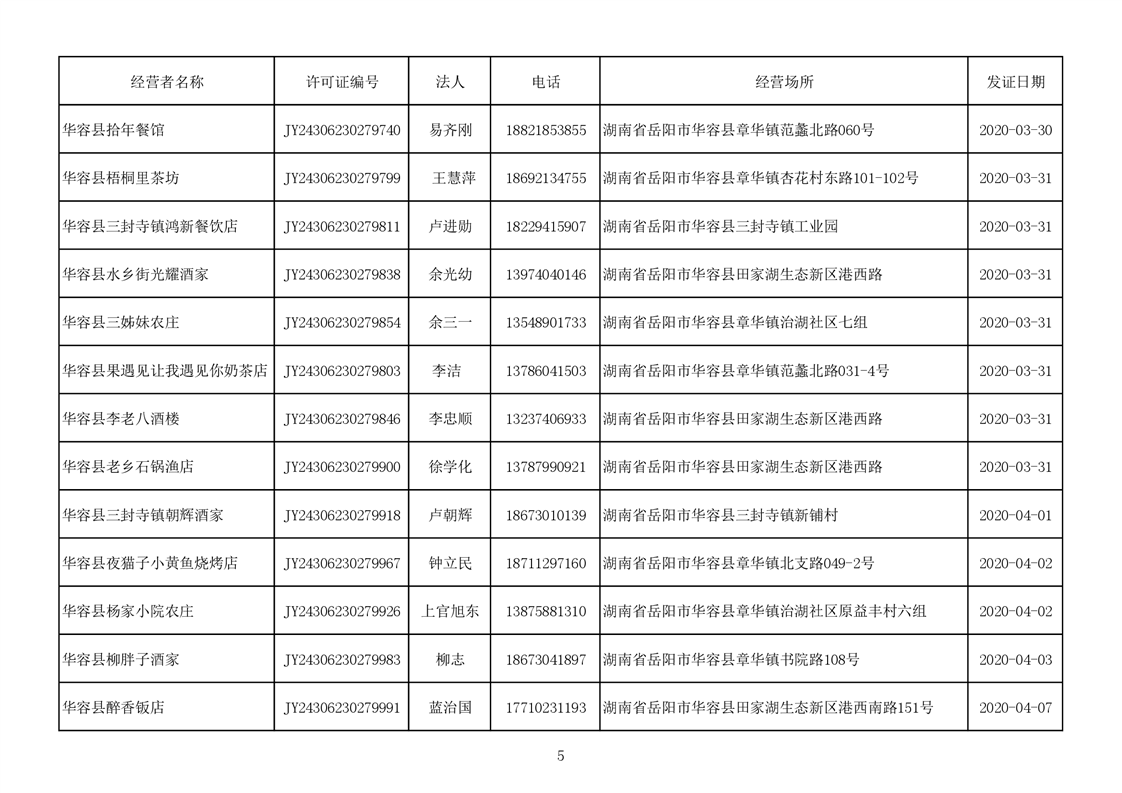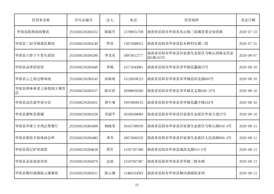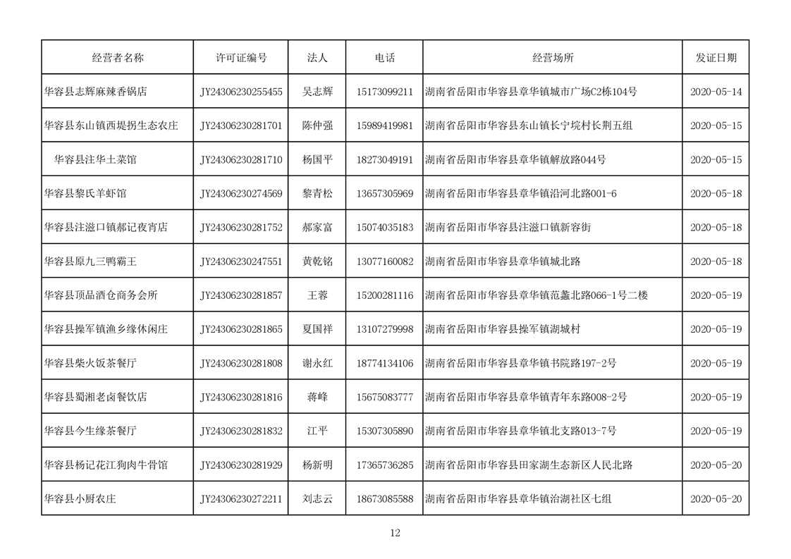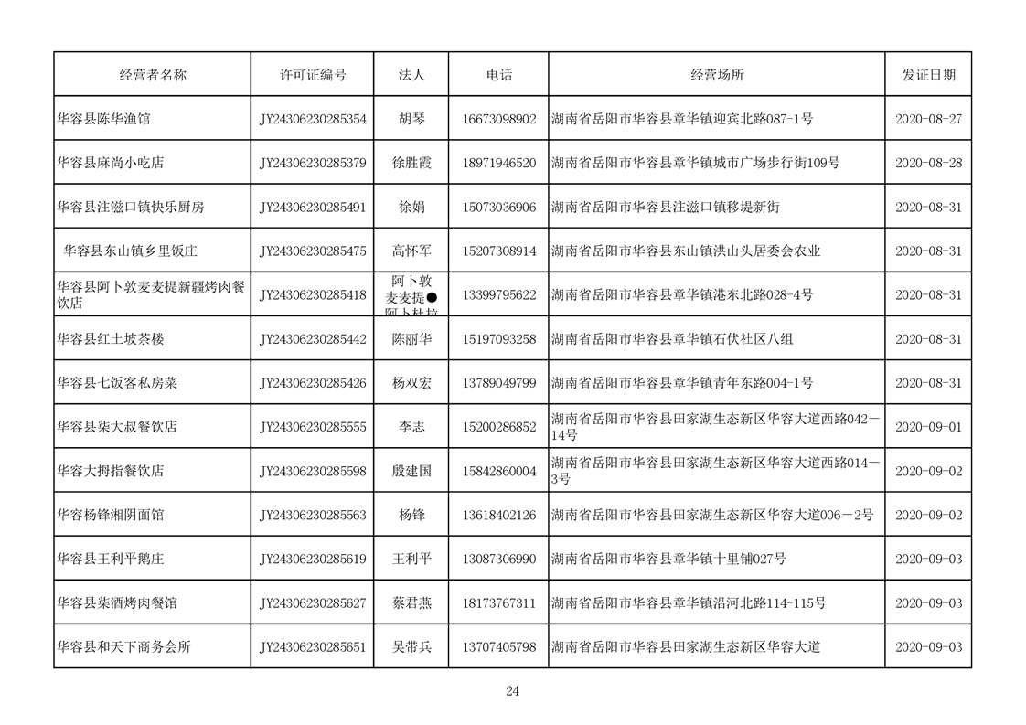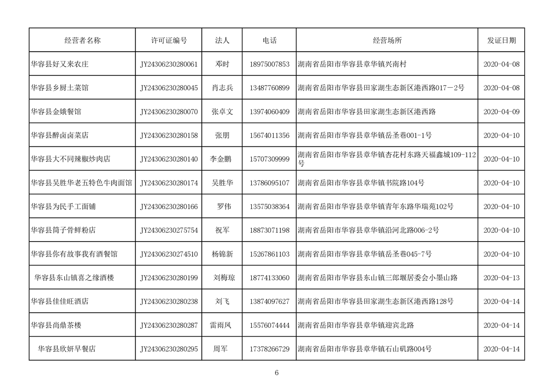 2020食品经营许可公示(餐饮服务者)台账
