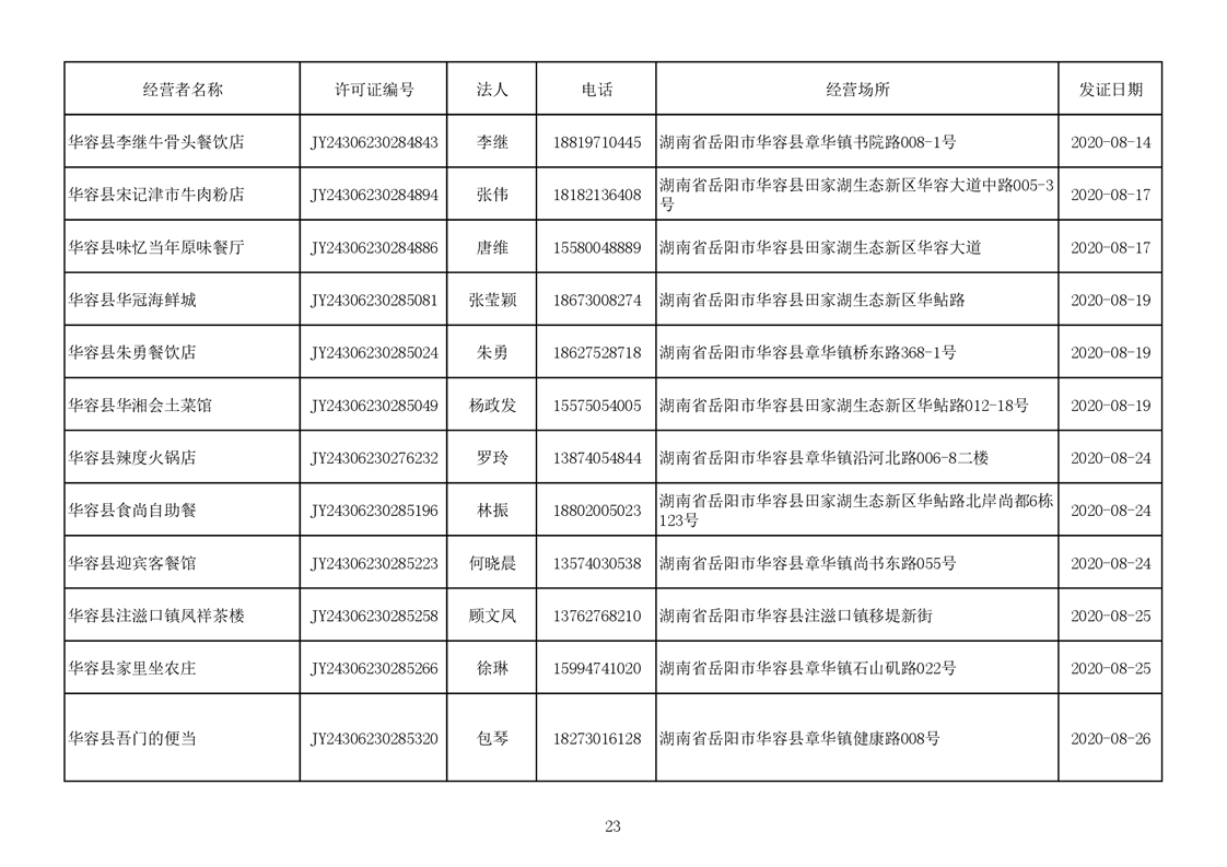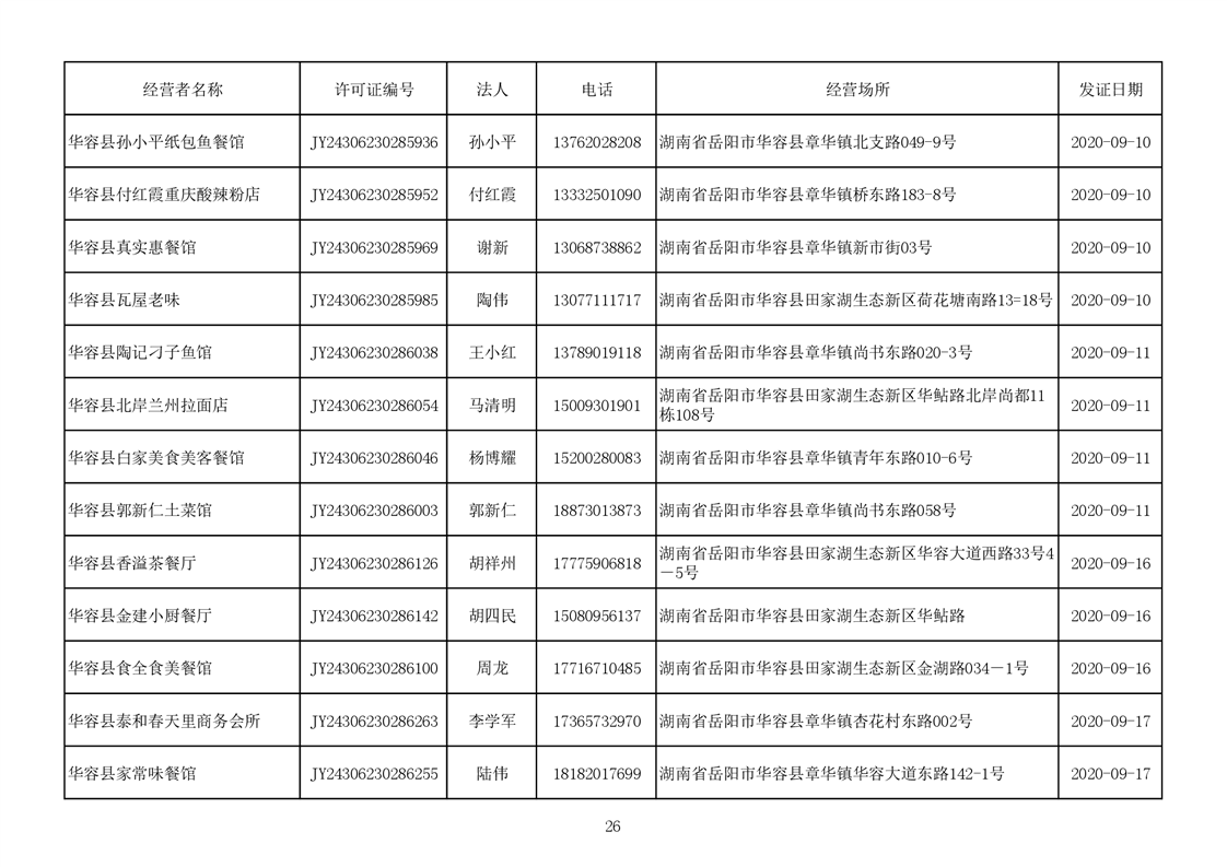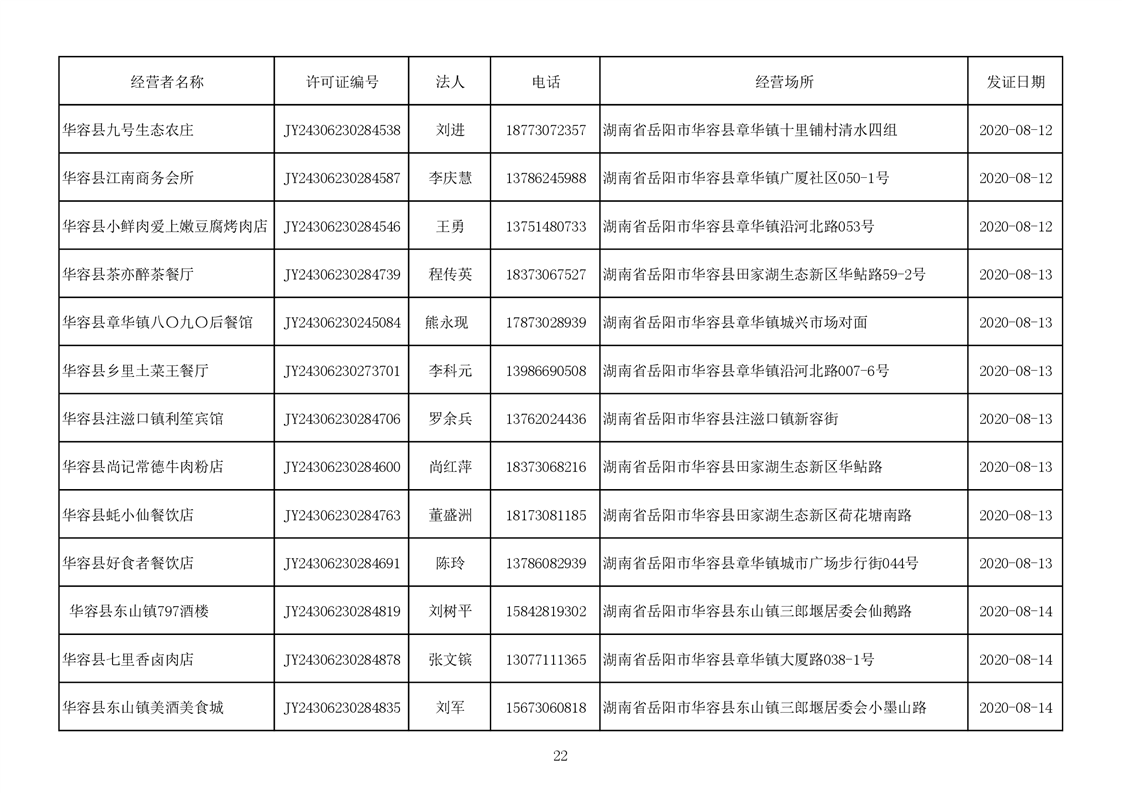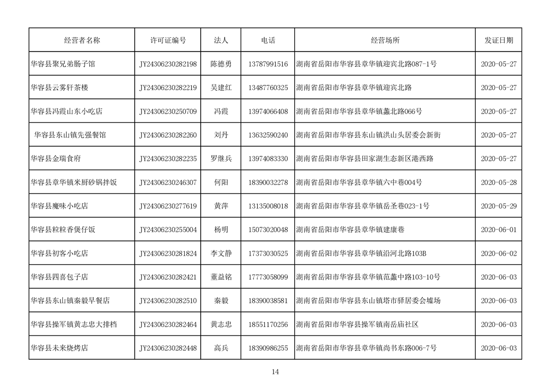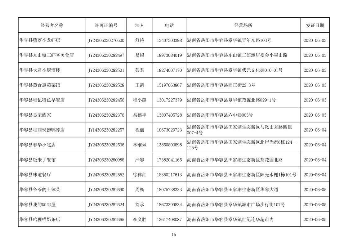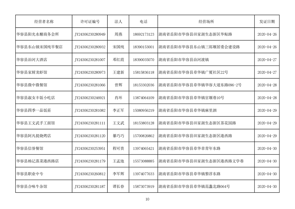 2020食品经营许可公示(餐饮服务者)台账