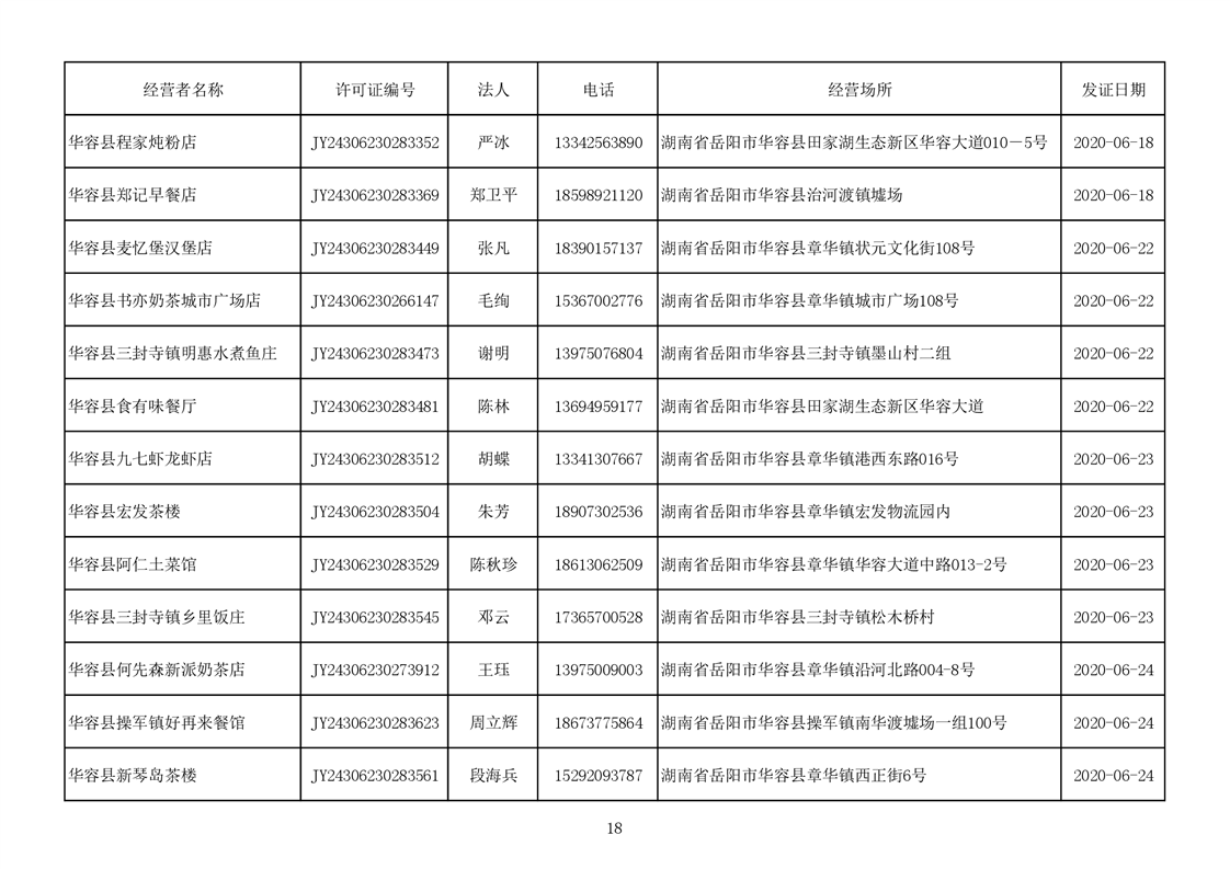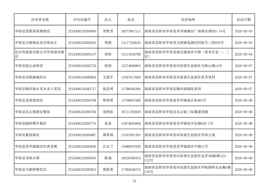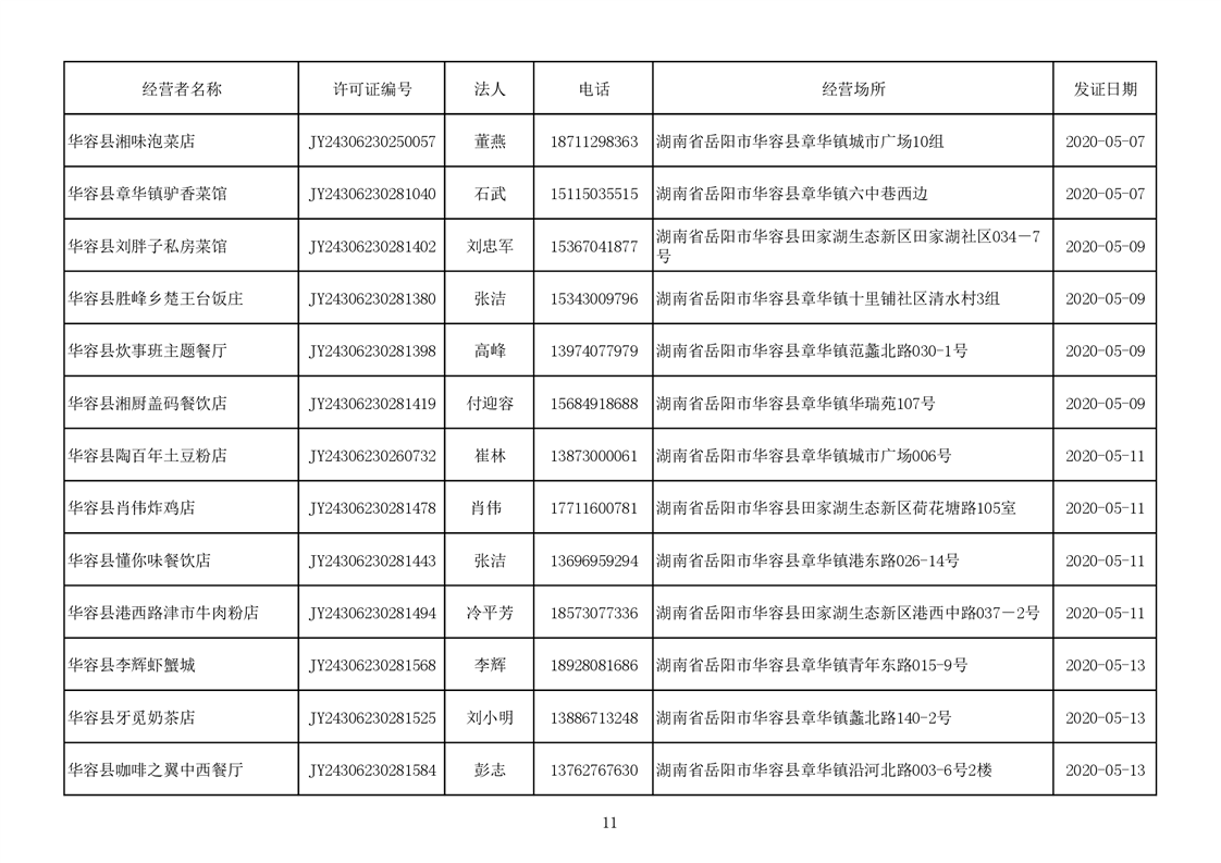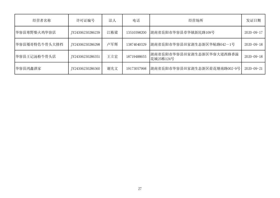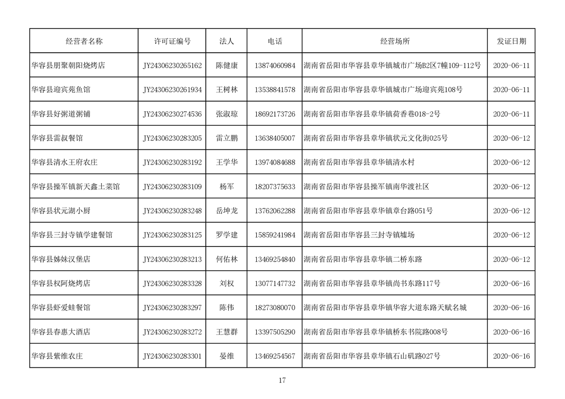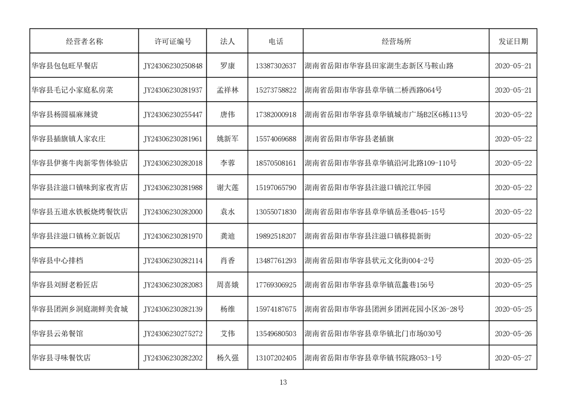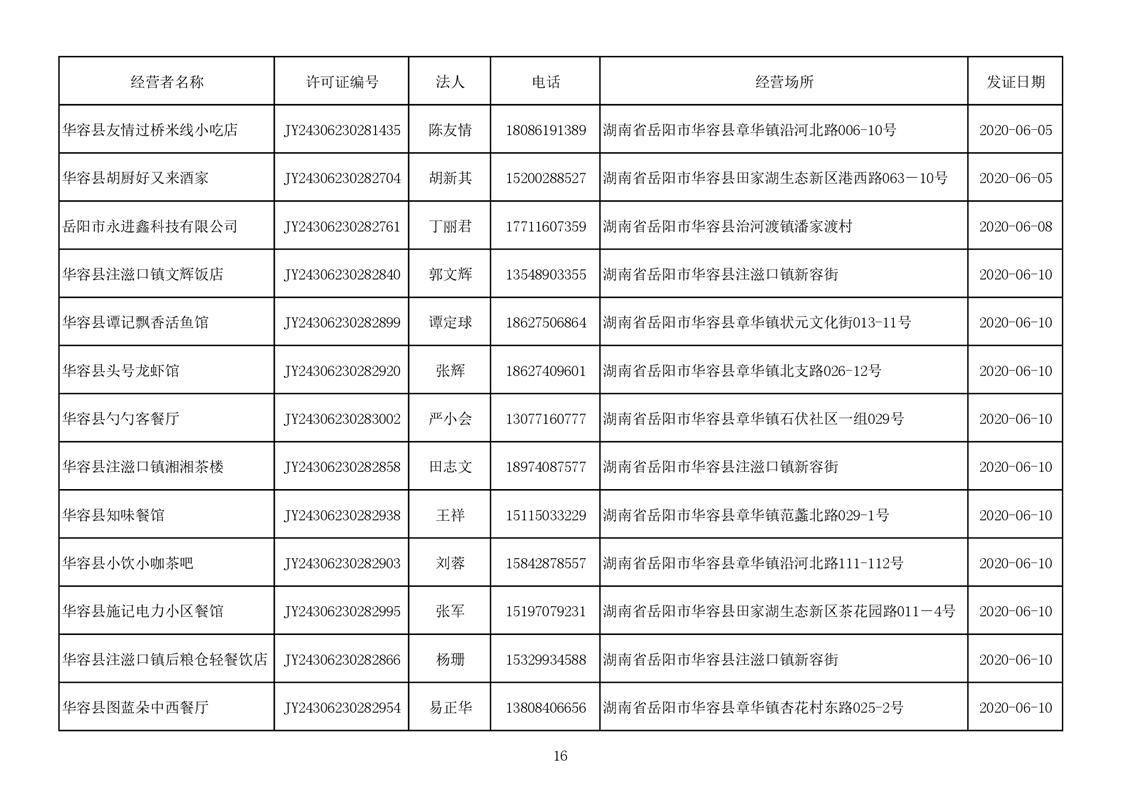 2020食品经营许可公示(餐饮服务者)台账