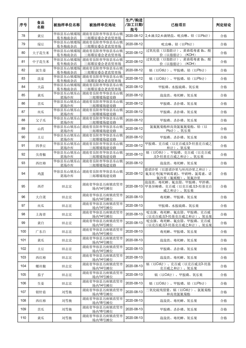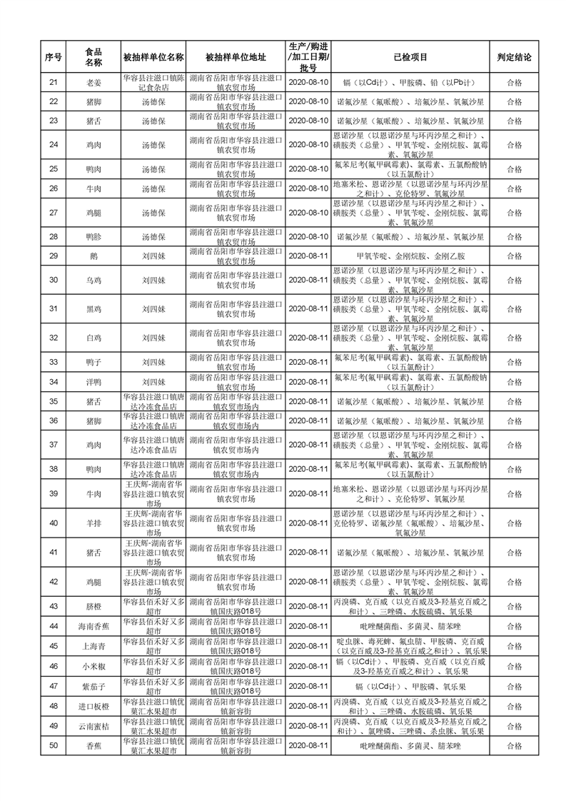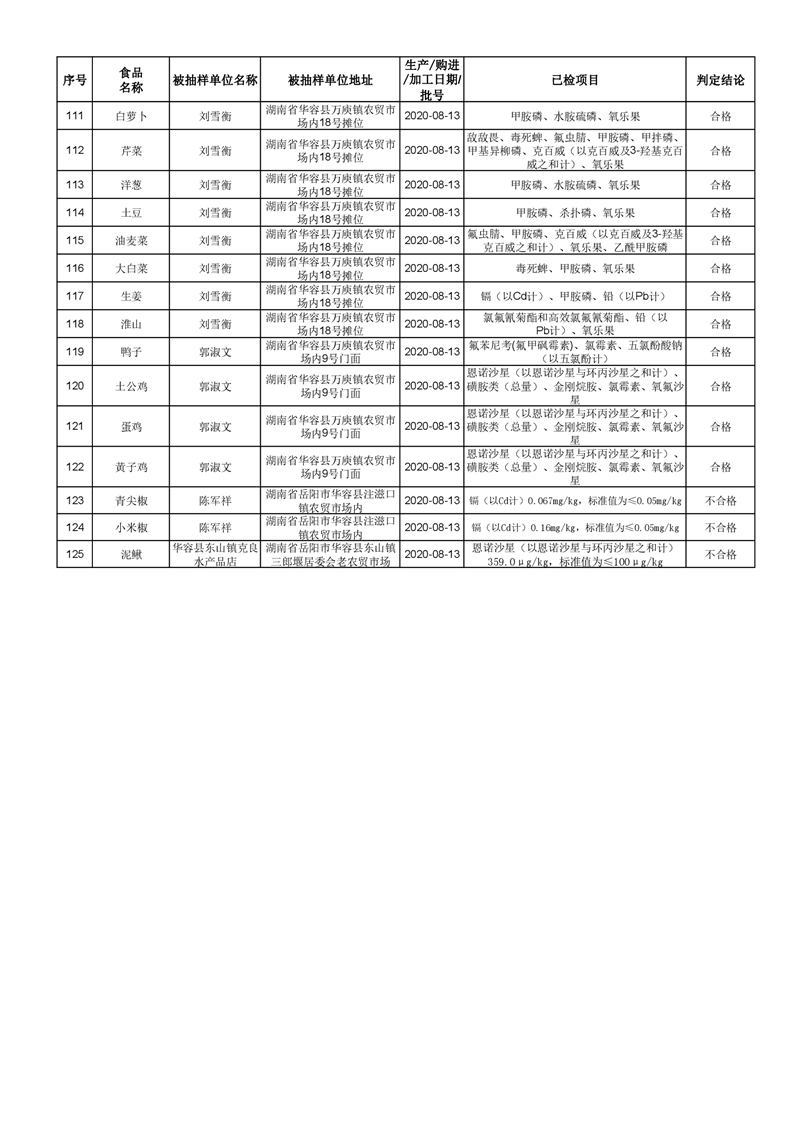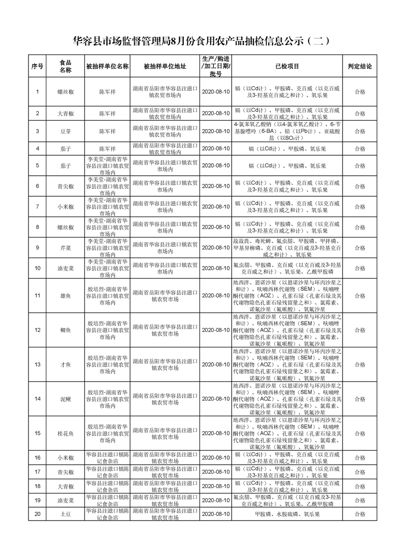 华容县市场监督管理局8月份食用农产品抽检信息公示(二)
