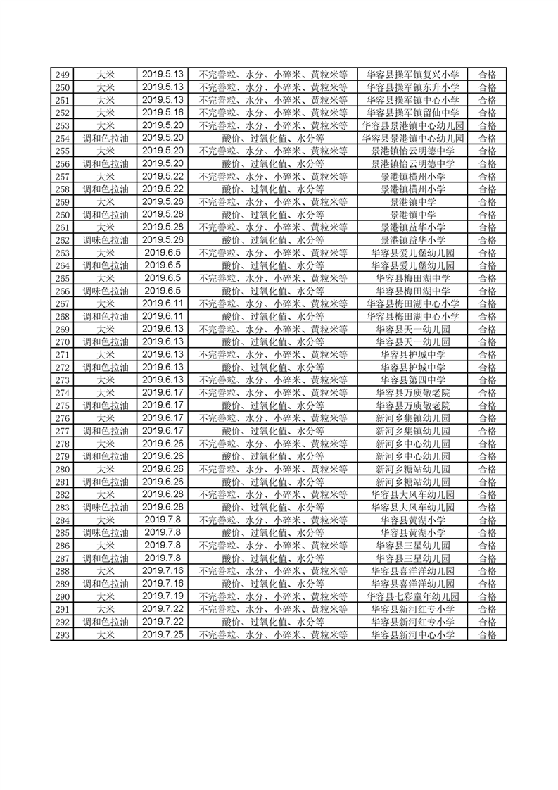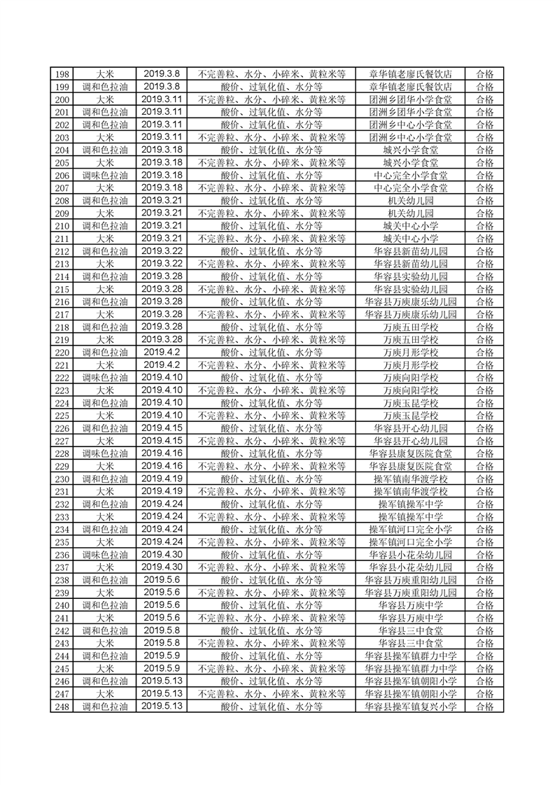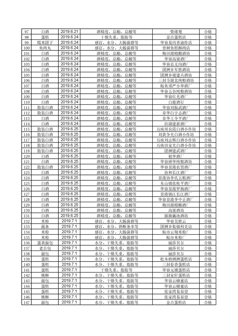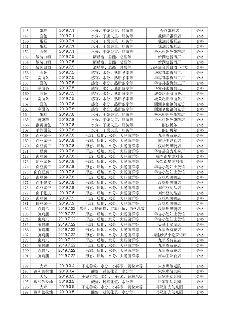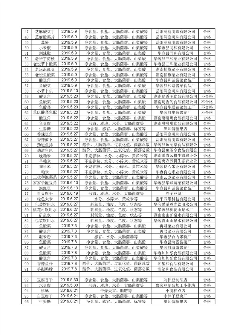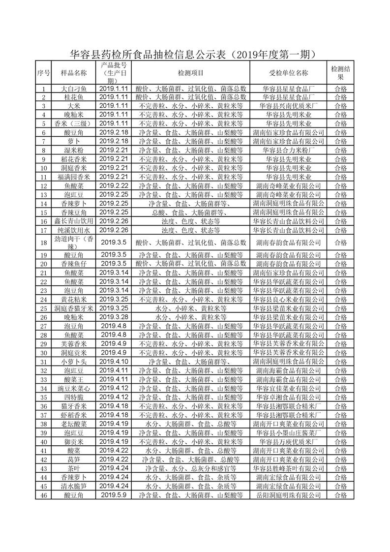 华容县药检所食品抽检信息公示表(2019年度第一期)