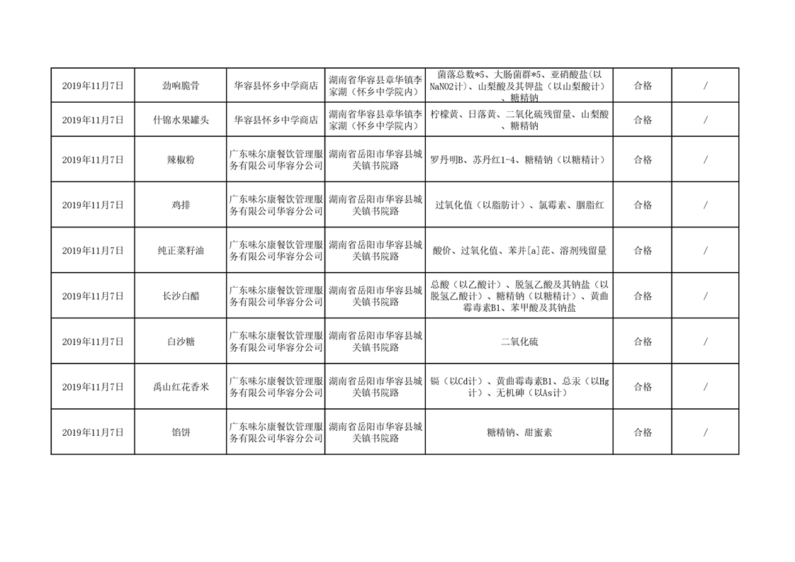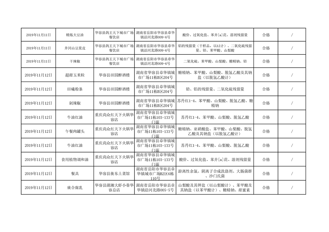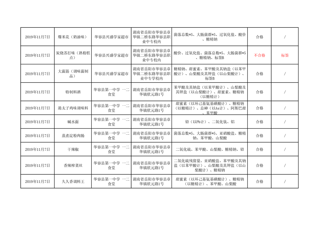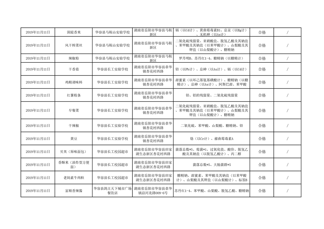 华容县市场监督管理局11月食品抽检信息汇总表