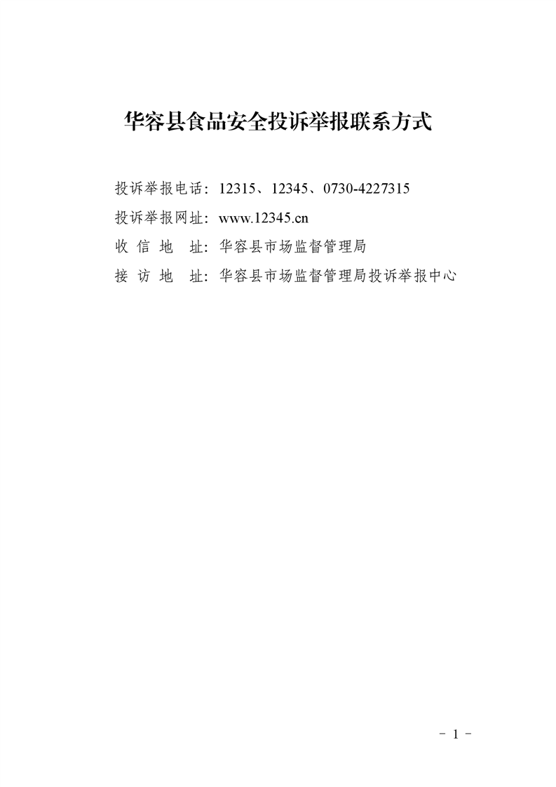 华容县食品安全投诉举报联系方式