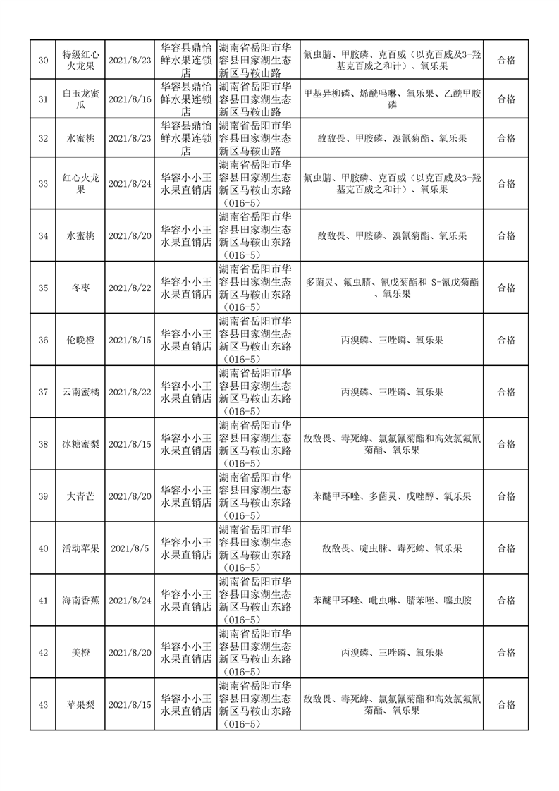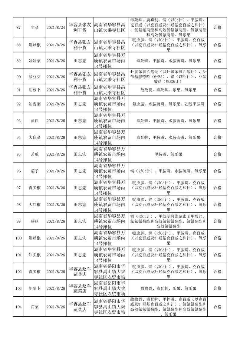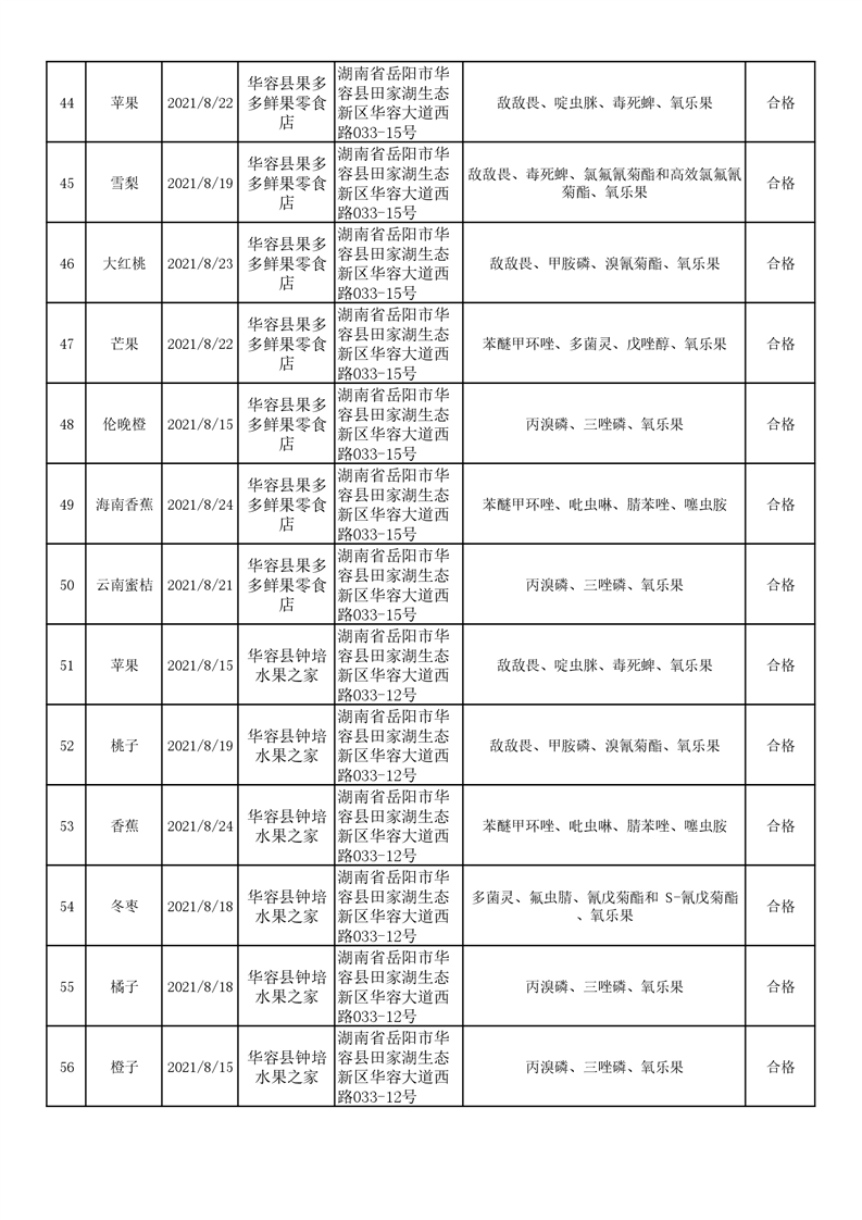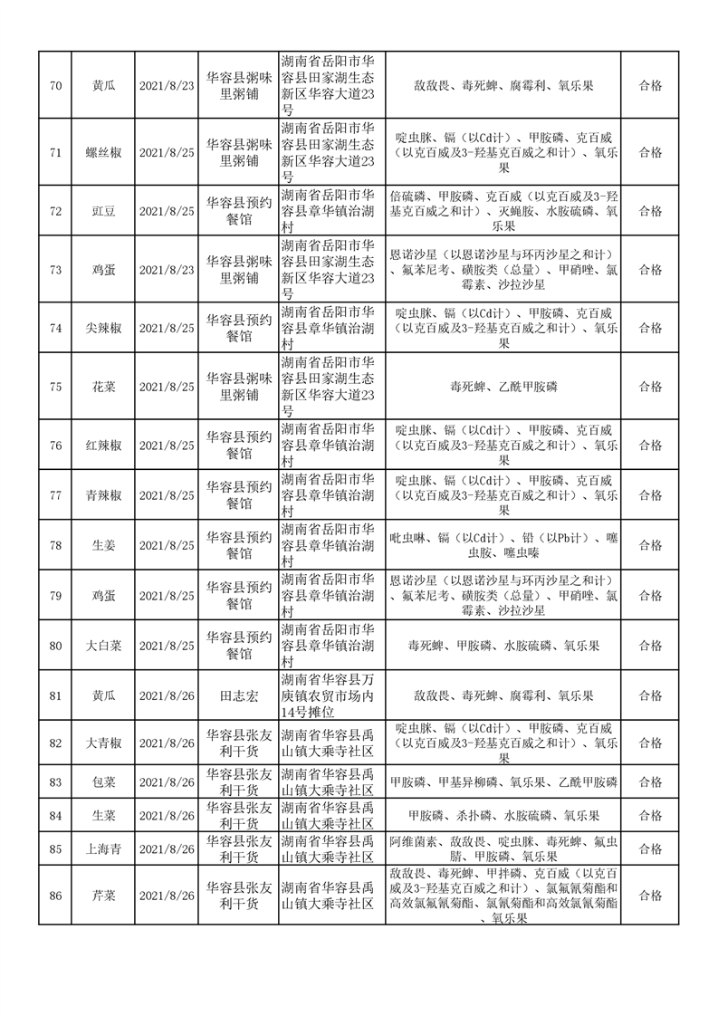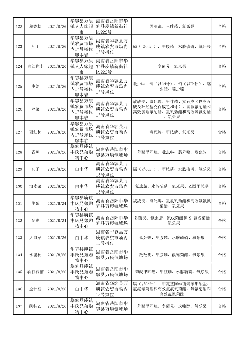 华容县市场监督管理局2021年8月食用农产品抽检信息汇总(一)