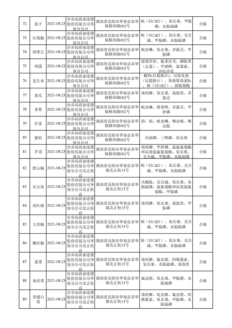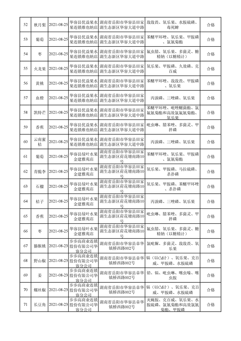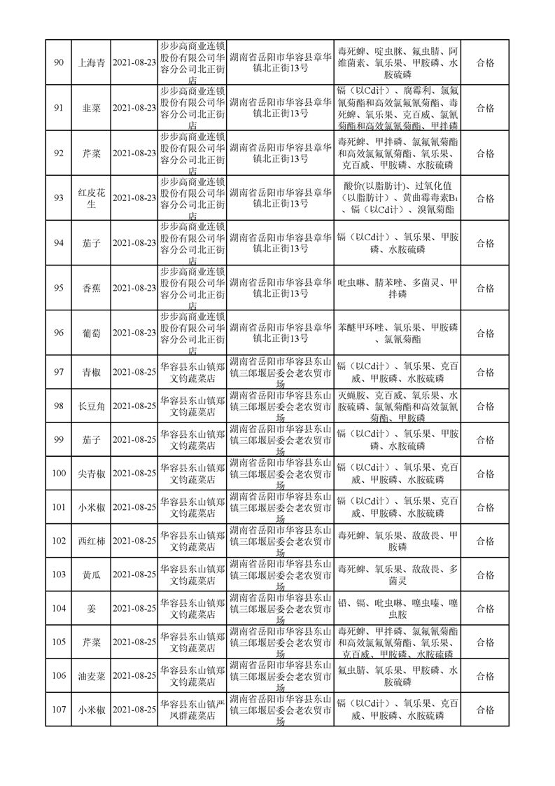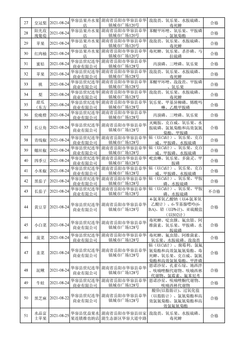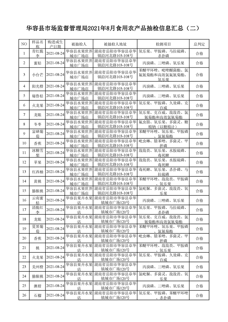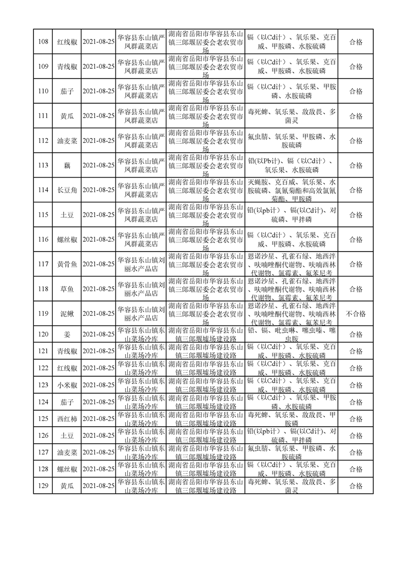 华容县市场监督管理局2021年8月食用农产品抽检信息汇总(二)