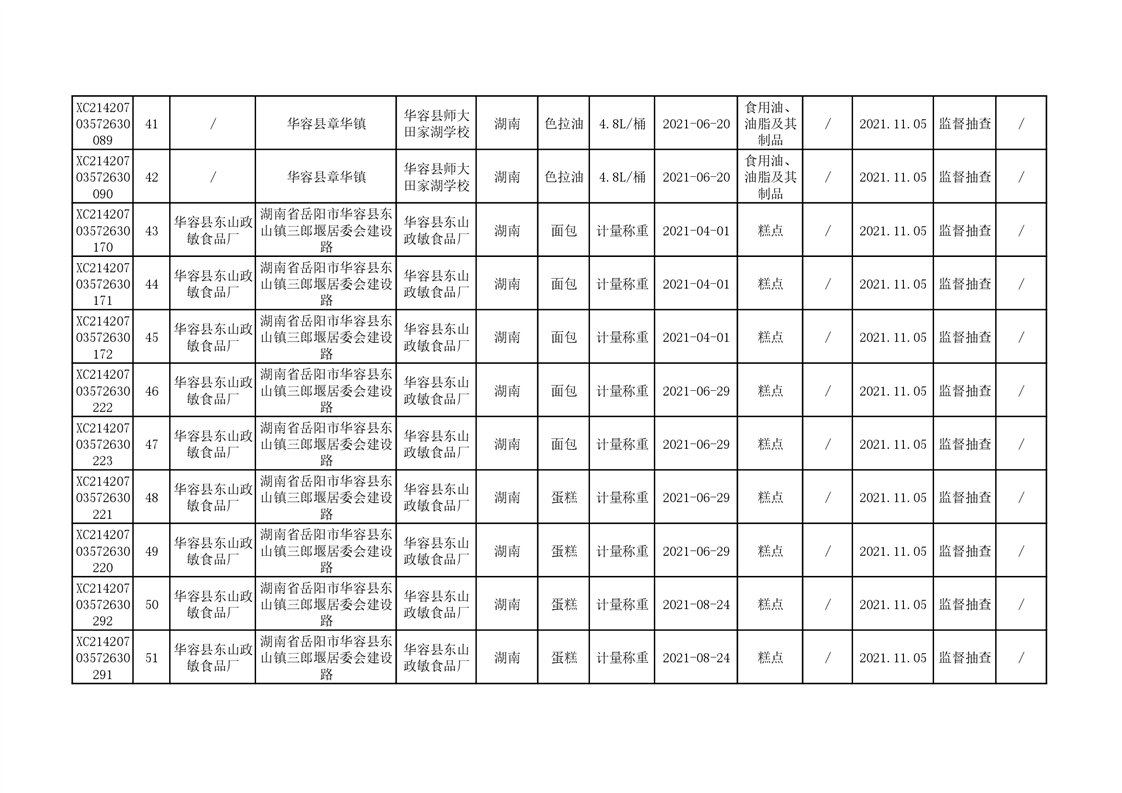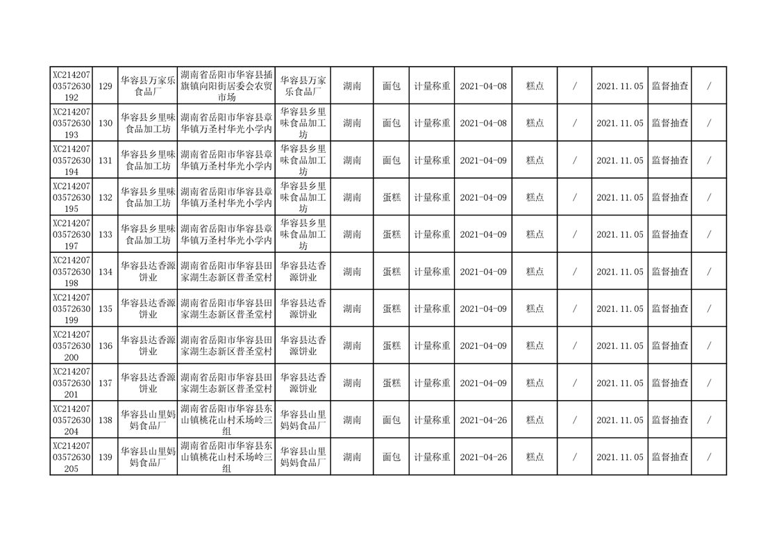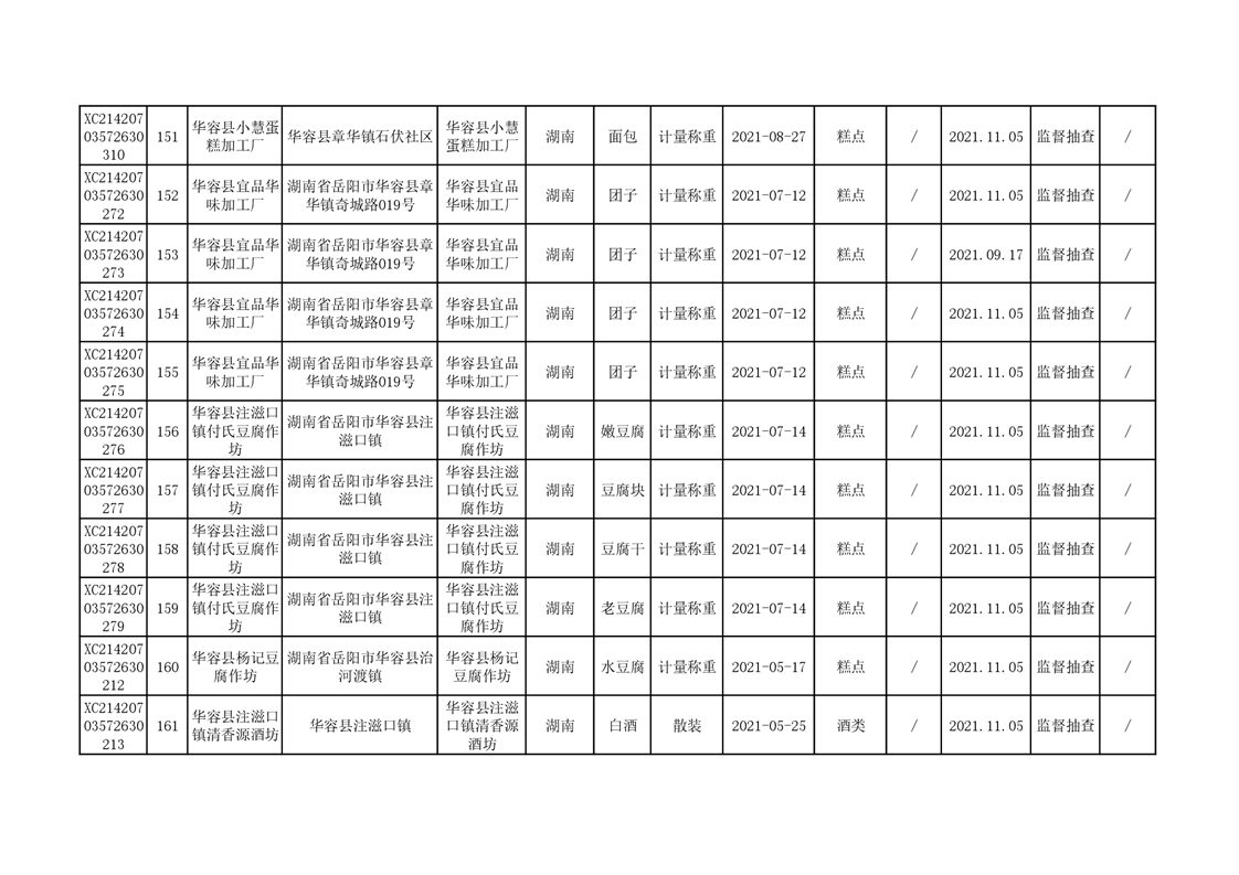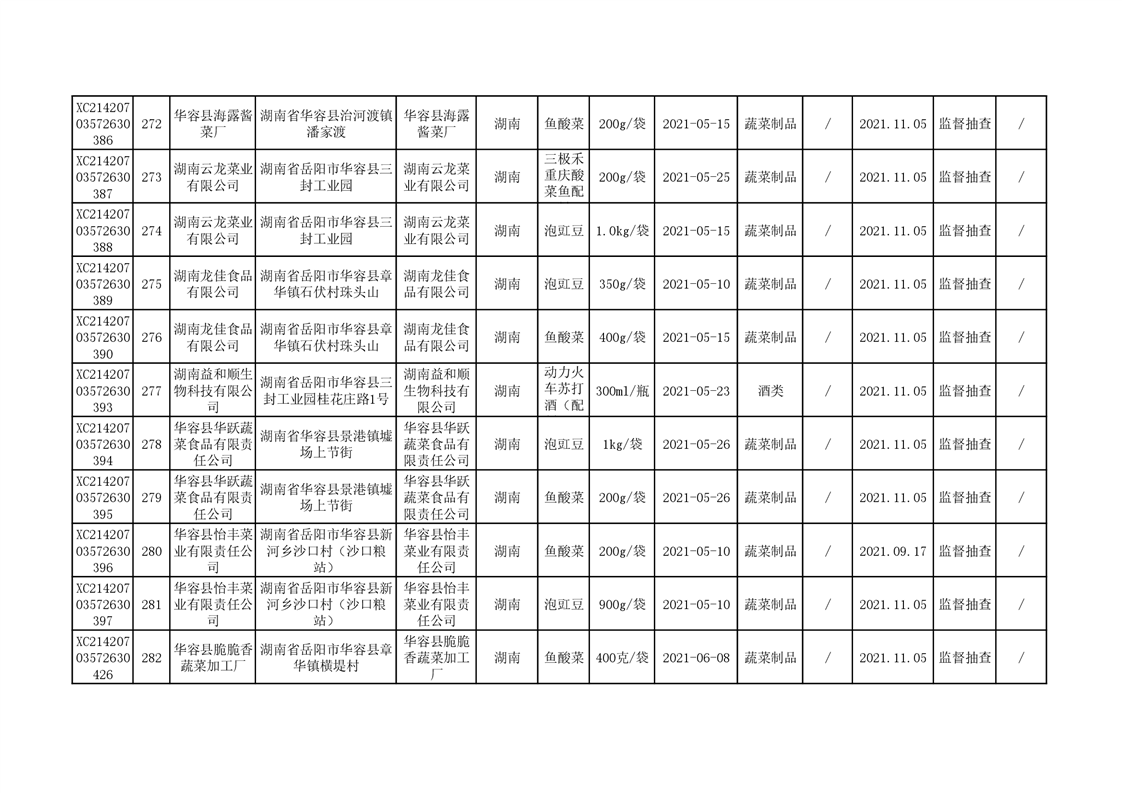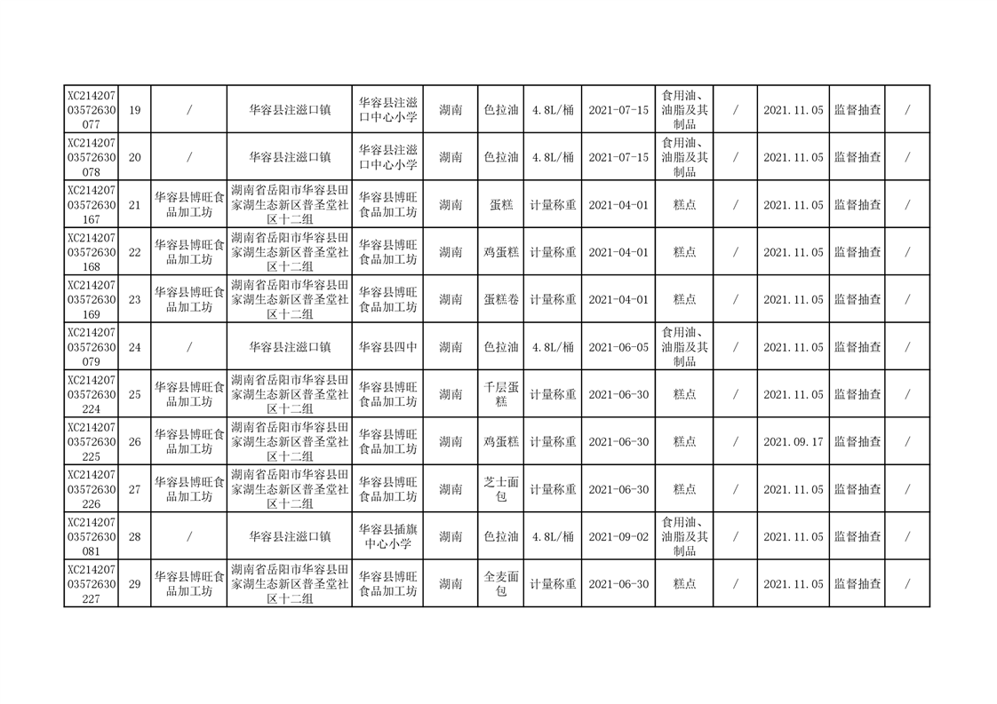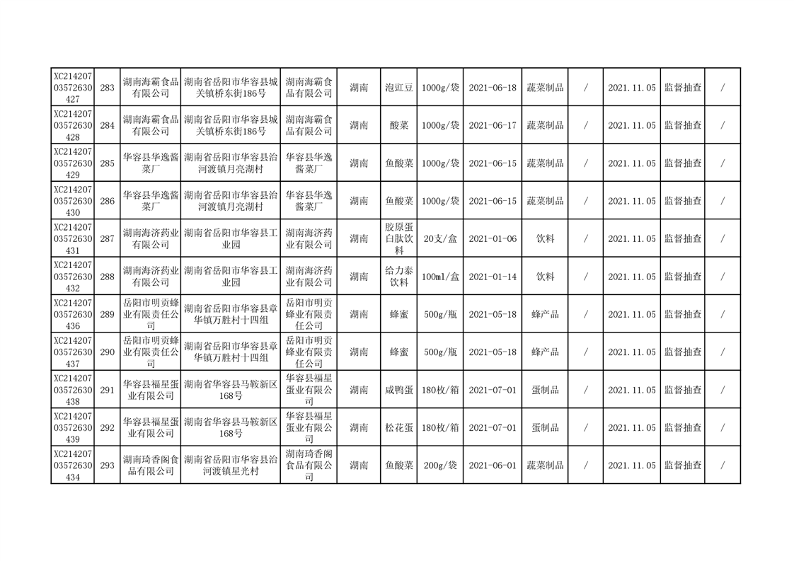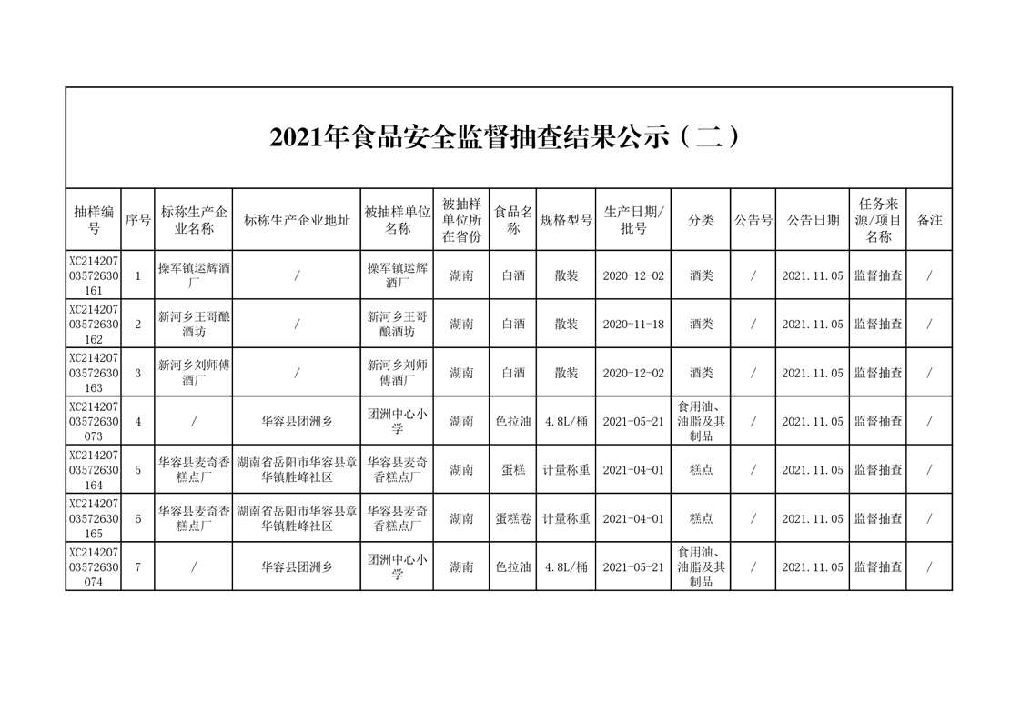 2021年食品安全监督抽查结果公示(二)