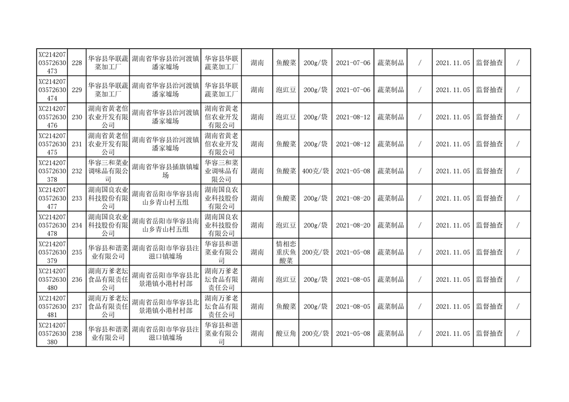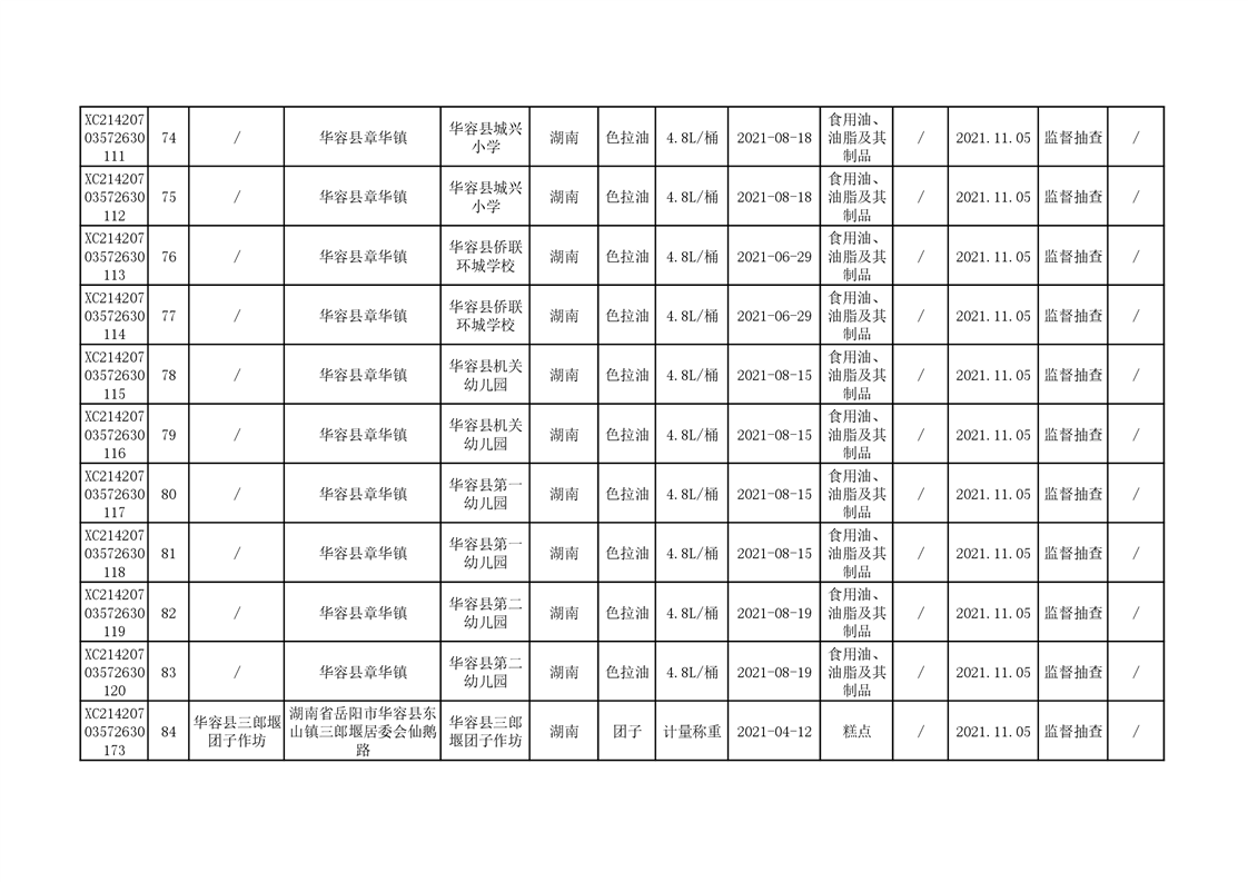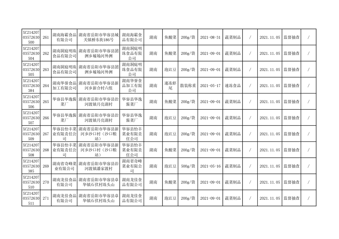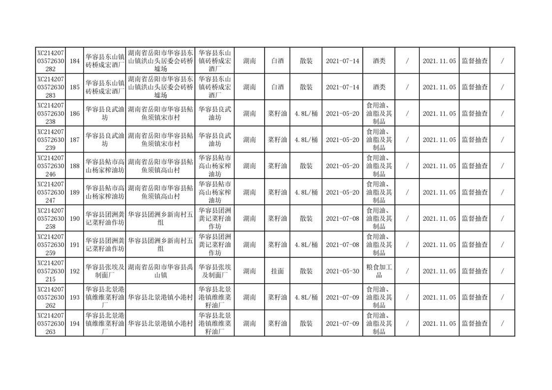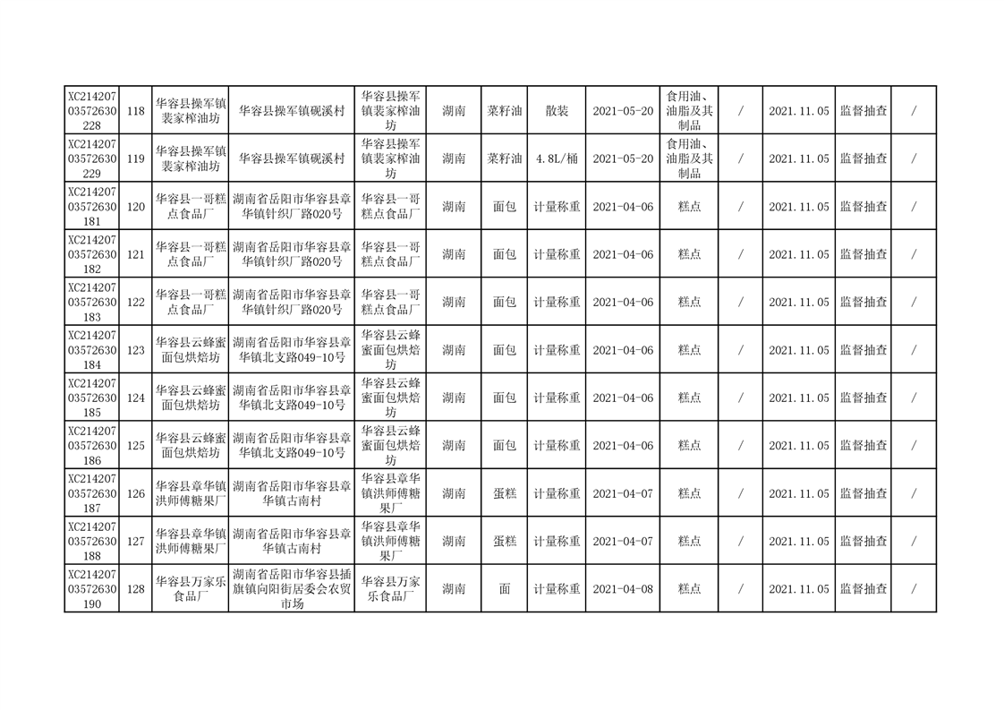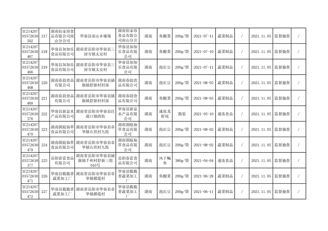 2021年食品安全监督抽查结果公示(二)