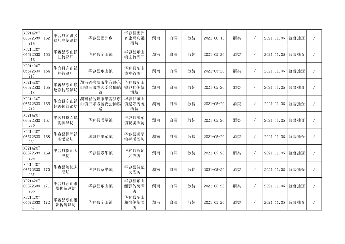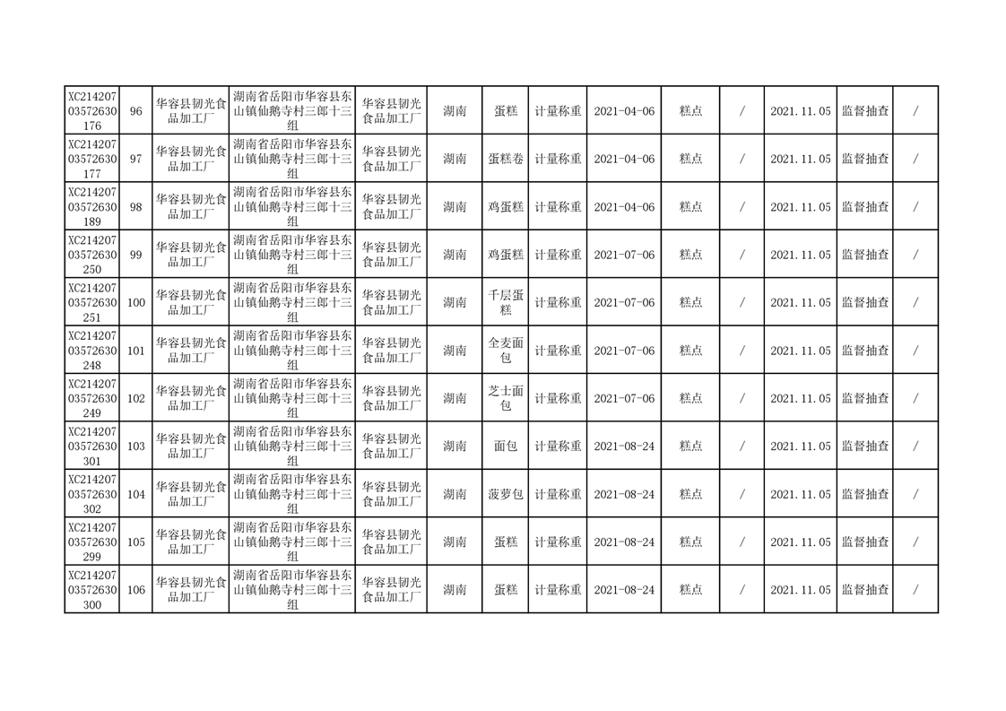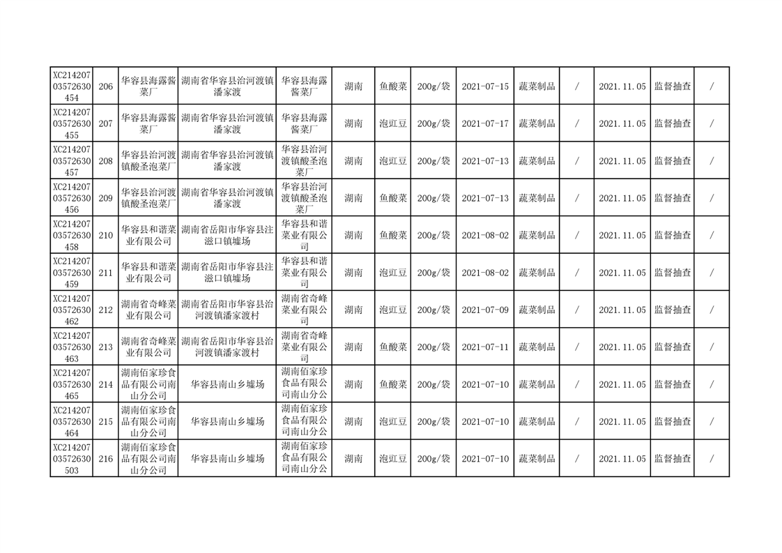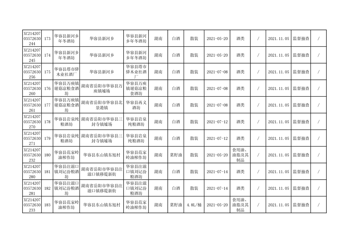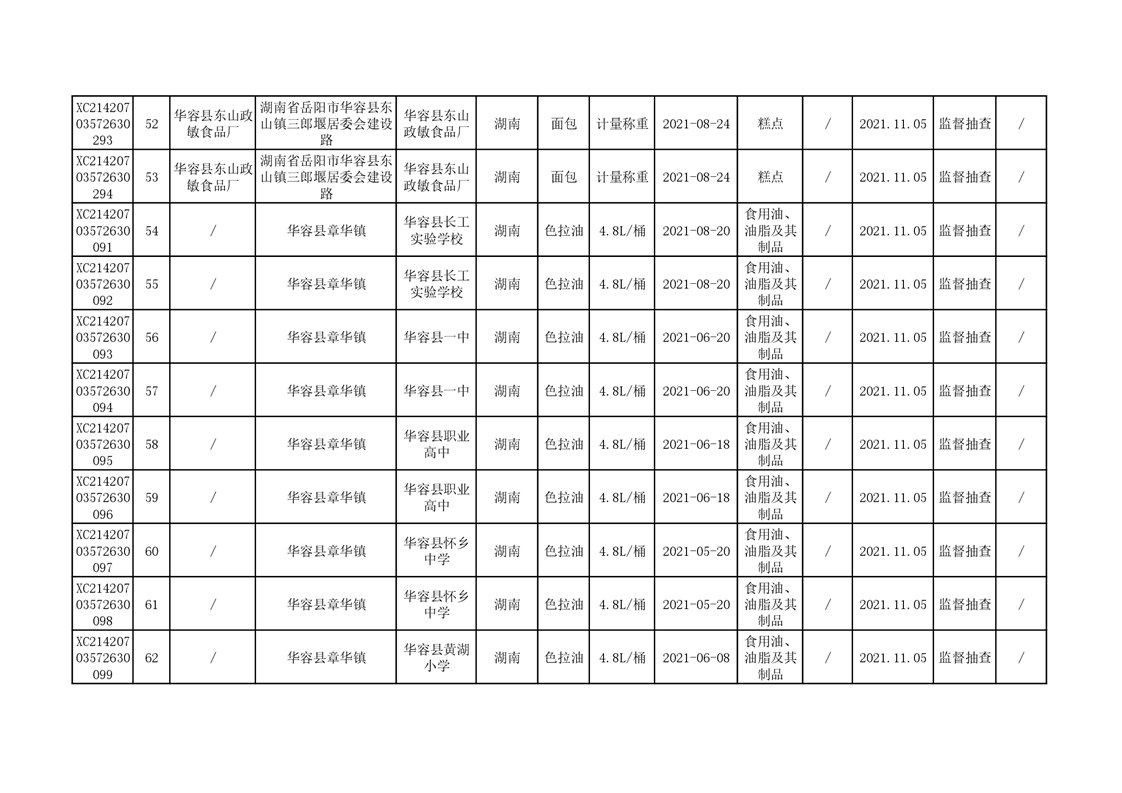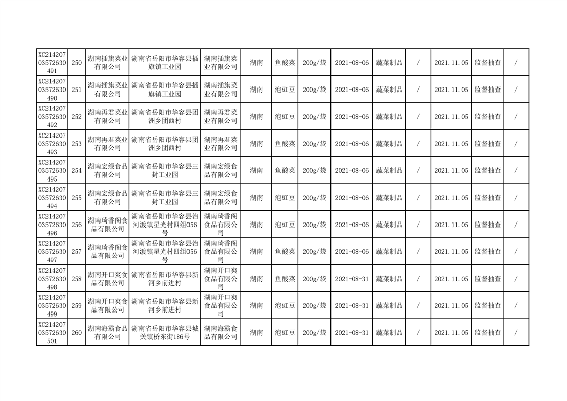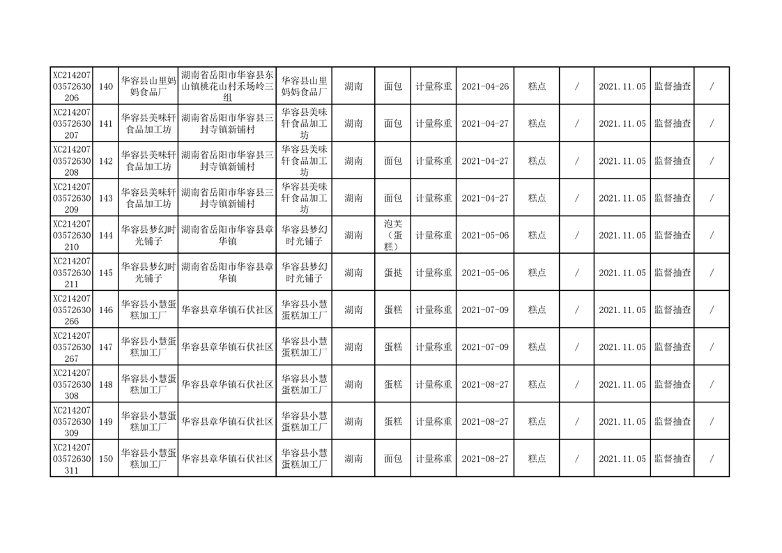 2021年食品安全监督抽查结果公示(二)