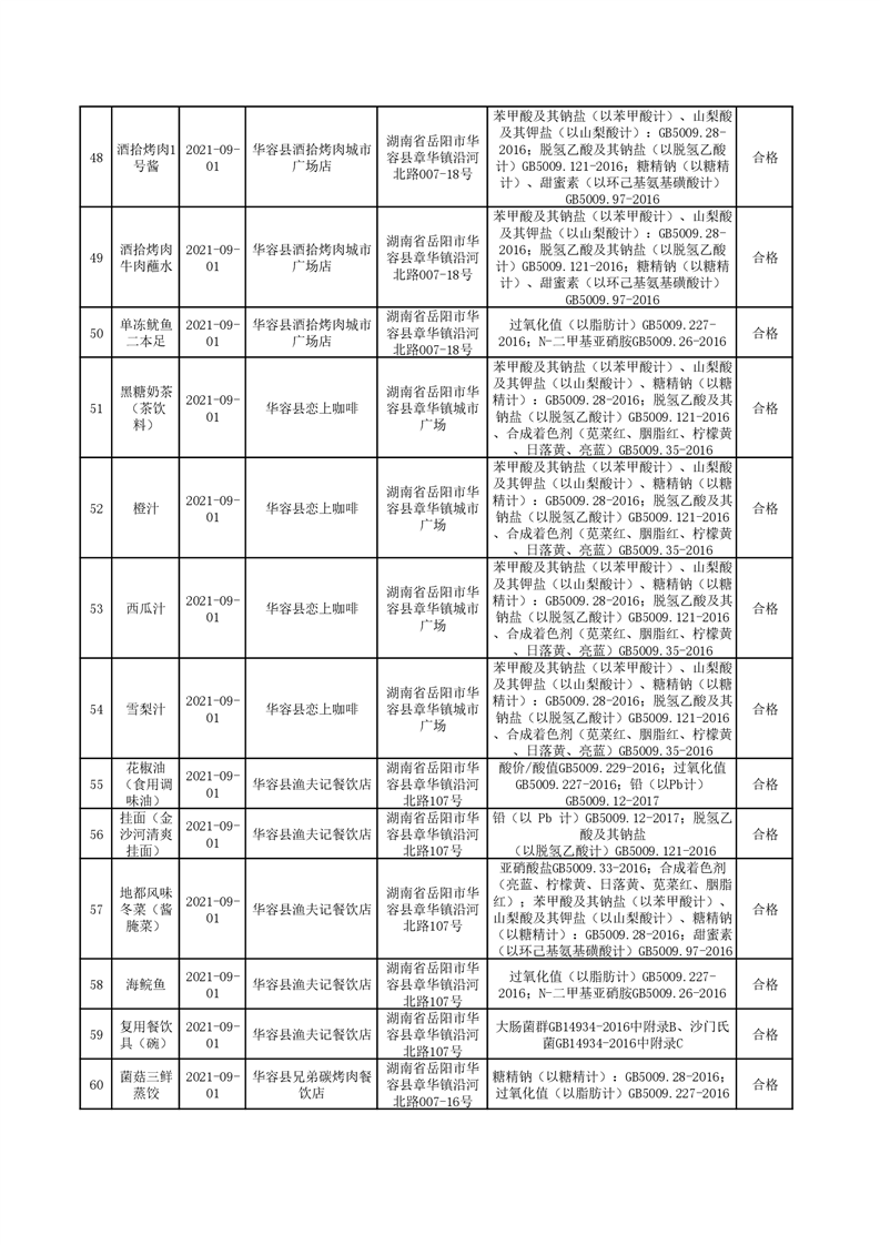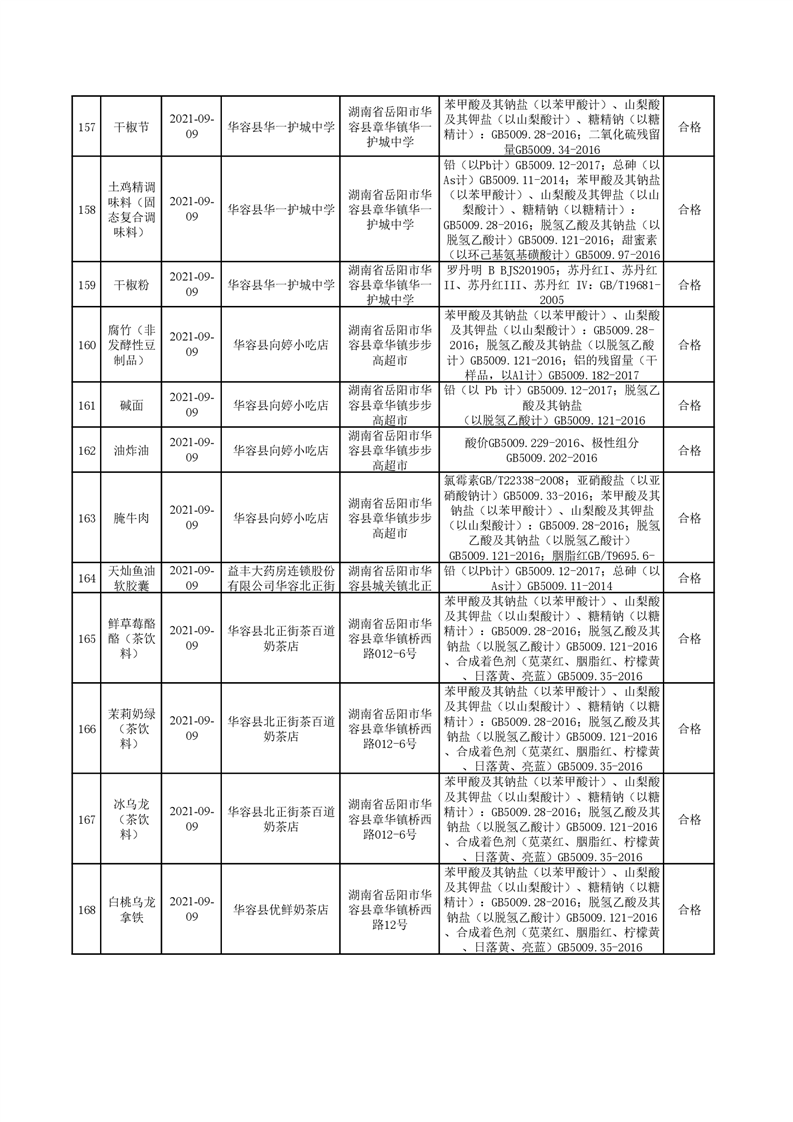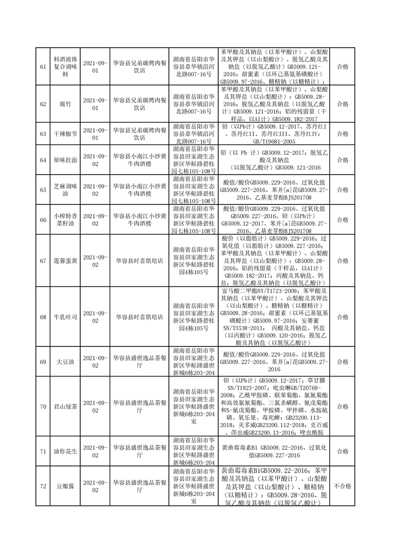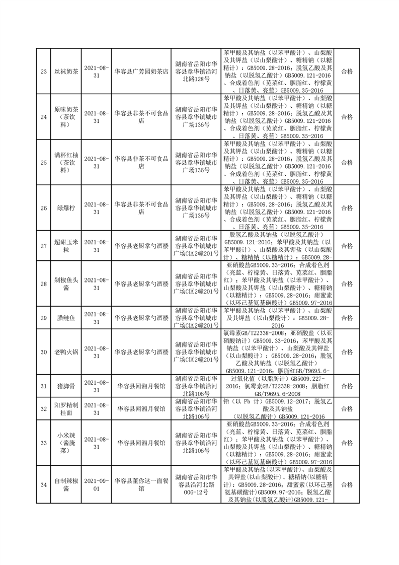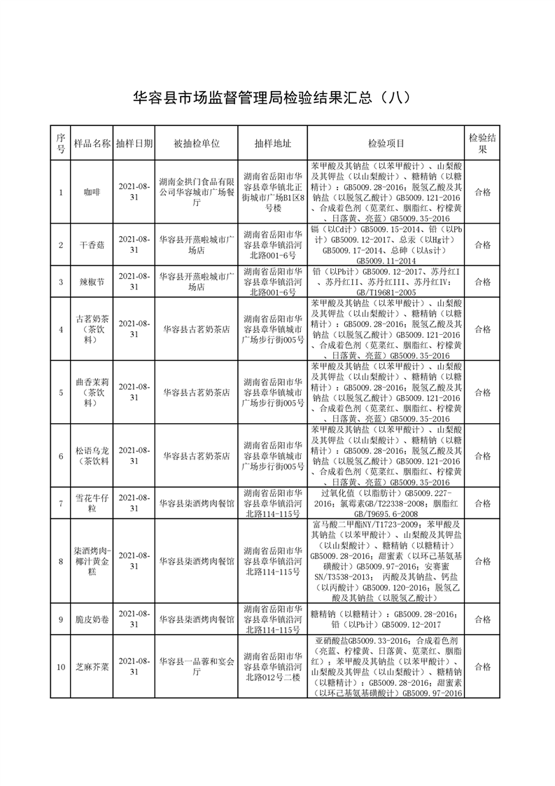 华容县市场监督管理局检验结果汇总(八)