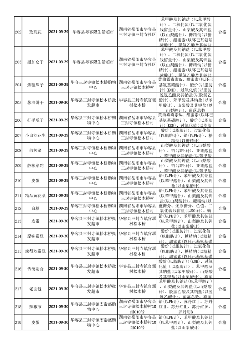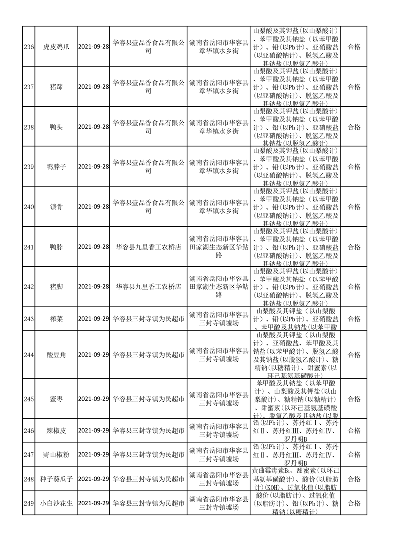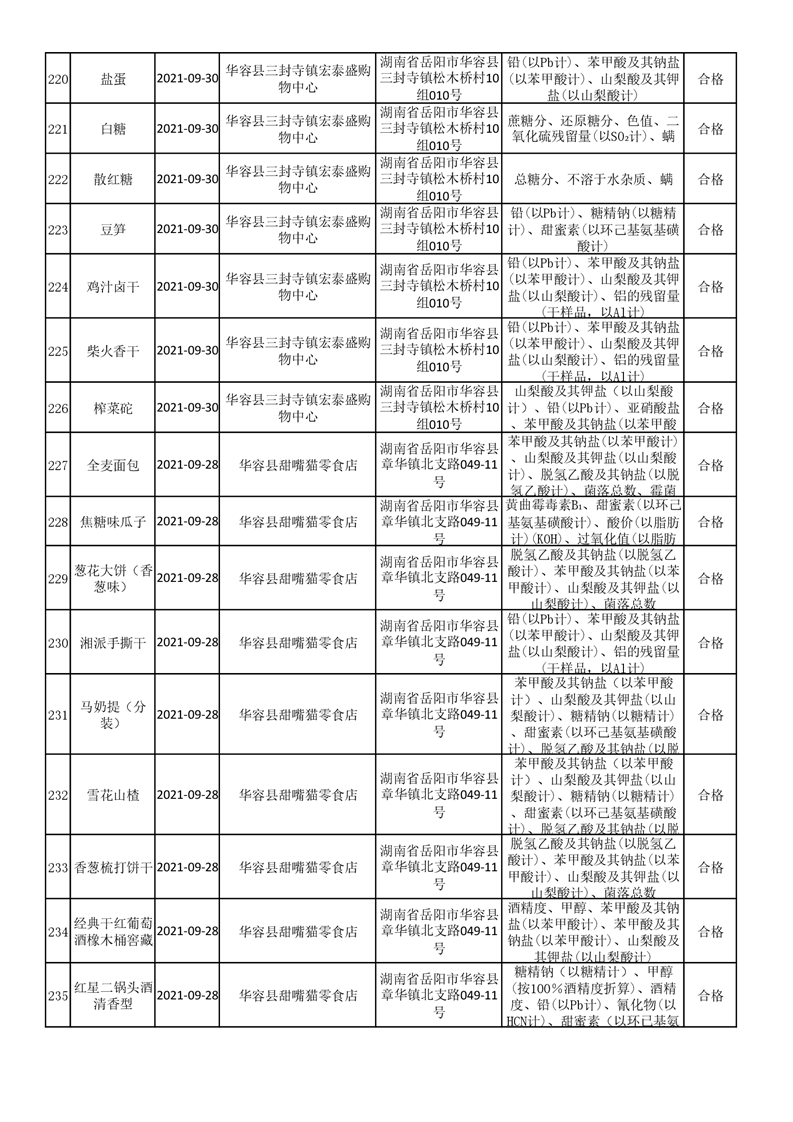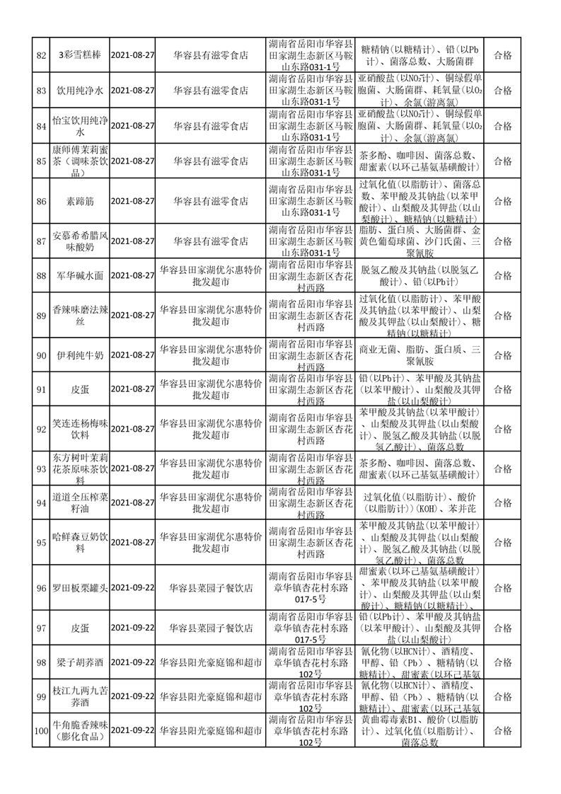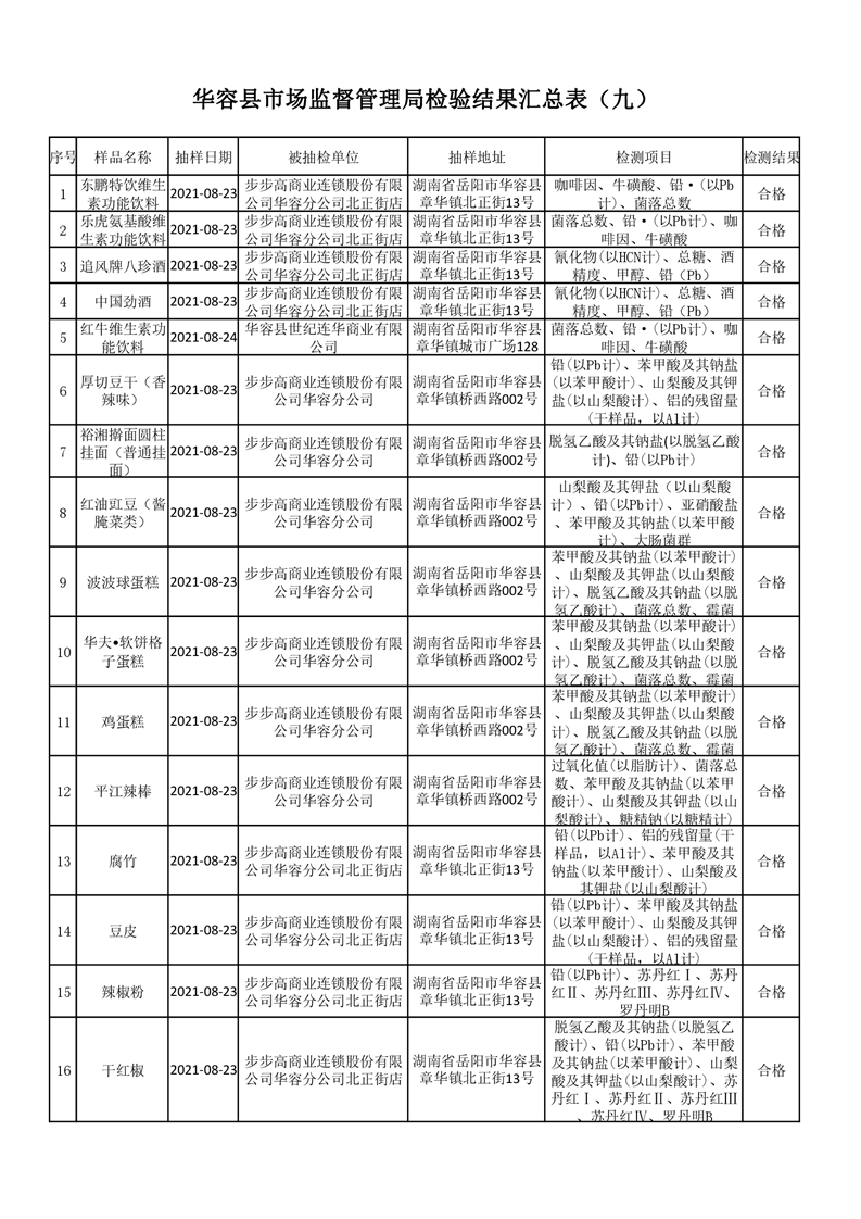 华容县市场监督管理局检验结果汇总表(九)